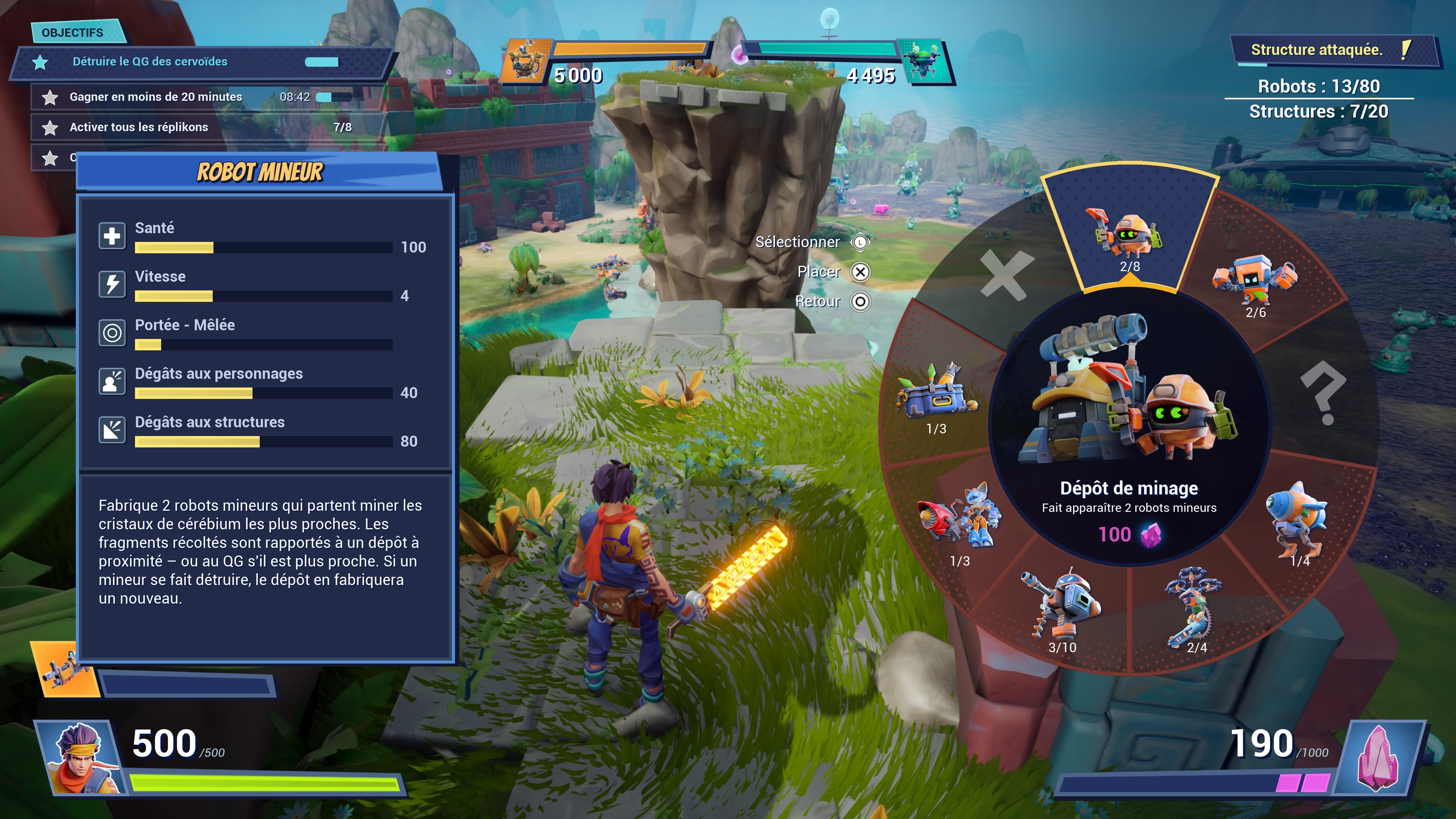 Dans les différents niveaux, vous trouverez des plans vous permettant de créer de petites usines. Ces dernières produiront à la chaîne des robots aux rôles bien distincts. Des mineurs, des tireurs, des drones, des tourelles, des lance-missiles… Mais avant de pouvoir vous diriger vers le vaisseau-mère alien se trouvant en bout de carte, vous devrez mettre à profit le talent de vos robots mineurs. Ces derniers iront miner les gisements de cérébium présents ici et là dans les niveaux, la ressource rose vous permettant de créer les usines. Et suite à cette phase de récolte, vous aurez tout le loisir de construire vos armées et de les placer stratégiquement dans les niveaux pour atteindre le combat final.