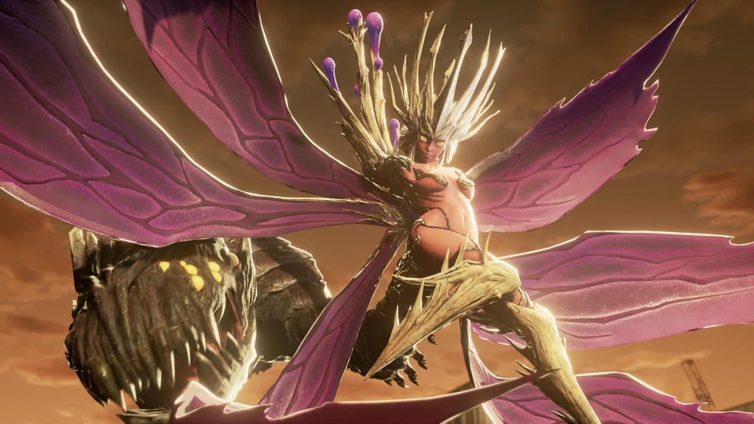Cependant, ce style tranche un peu avec les décors, parfois très photoréalistes. Un côté Darksiders, que nous évoquions déjà plus haut, avec ces paysages désertiques déchirés, faits de crêtes et de précipices, pleins de saillies de cristaux qui viennent signifier la corruption qui règne. À d’autres moments, plus anime, on pense au dernier jeu Sword Art Online en date, Fatal Bullet. Et on s’accordera que du point de vue de la réussite graphique, ce n’est pas la meilleure des sources d’inspiration. Et cet entre-deux nous donne un sentiment mitigé. On trouve parfois le soft superbe, comme on va le trouver complètement loupé à d’autres moments, avant encore une fois, de se raviser…
