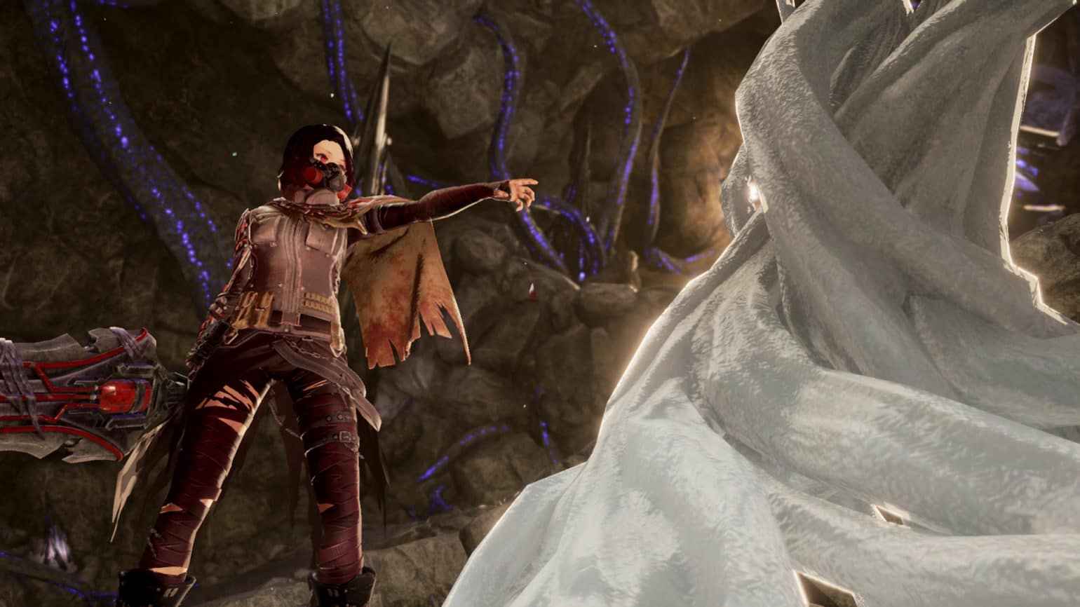 Le système de combat, classique dans ses fondamentaux (frappe rapide, frappe lourde, esquive, garde et parade) se démarque par l’utilisation de manière dynamique de la classe de personnage. Dans Code Vein, la classe est dénommée Code Sanguin, et l’un des pouvoirs de notre personnage est de pouvoir « aspirer » les Codes Sanguins des autres Revenants. Ce dernier aura une incidence directe sur les stats, mais aussi sur les pouvoirs spéciaux, qu’il s’agisse d’attaques magiques ou de capacités passives (force augmentée, résistance à tel ou tel élément…). Les Voiles de Sang (autrement dit, les armures), fonctionnent à peu près de la même façon, distribuant leur lot de bonus et de malus.