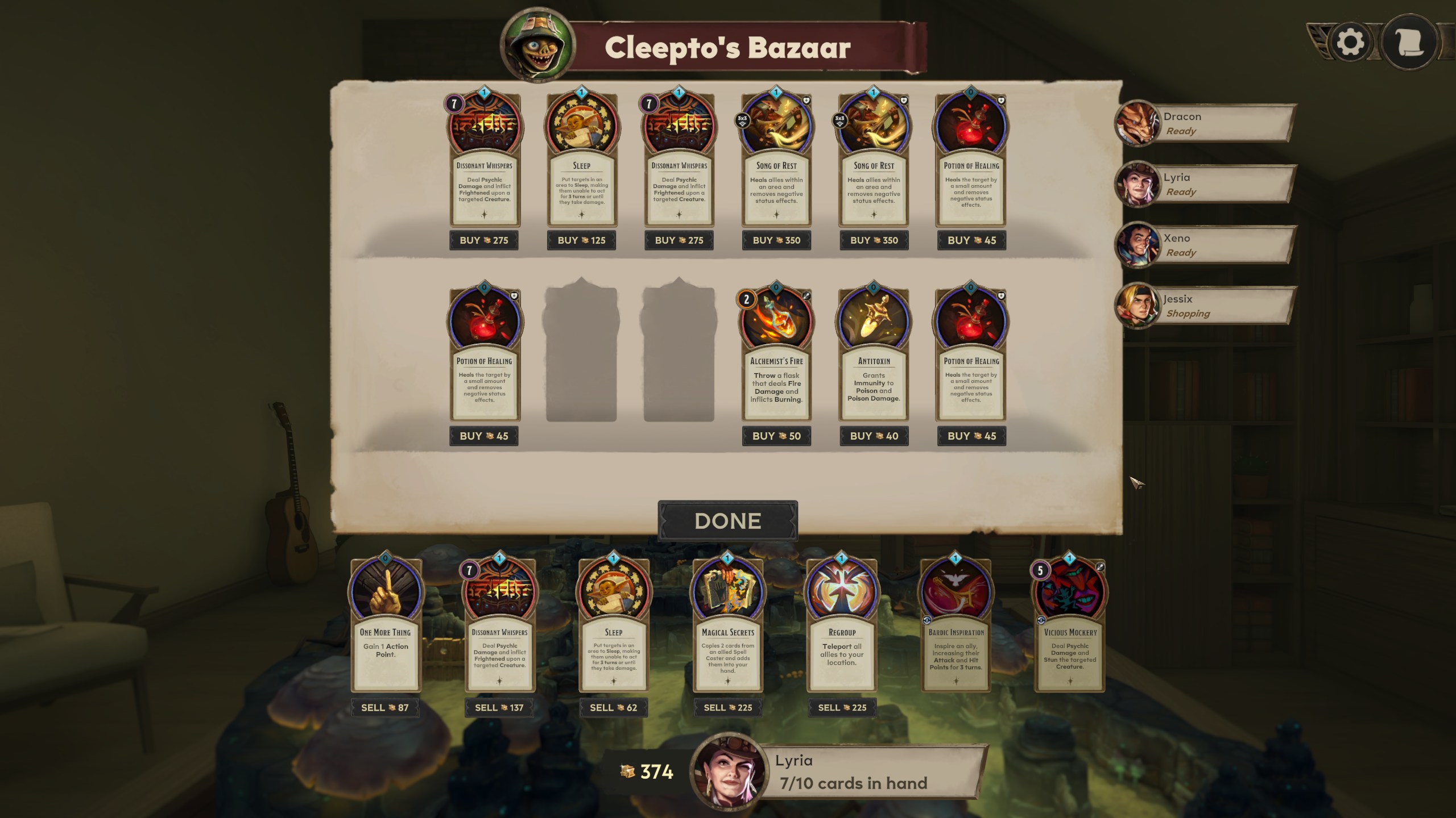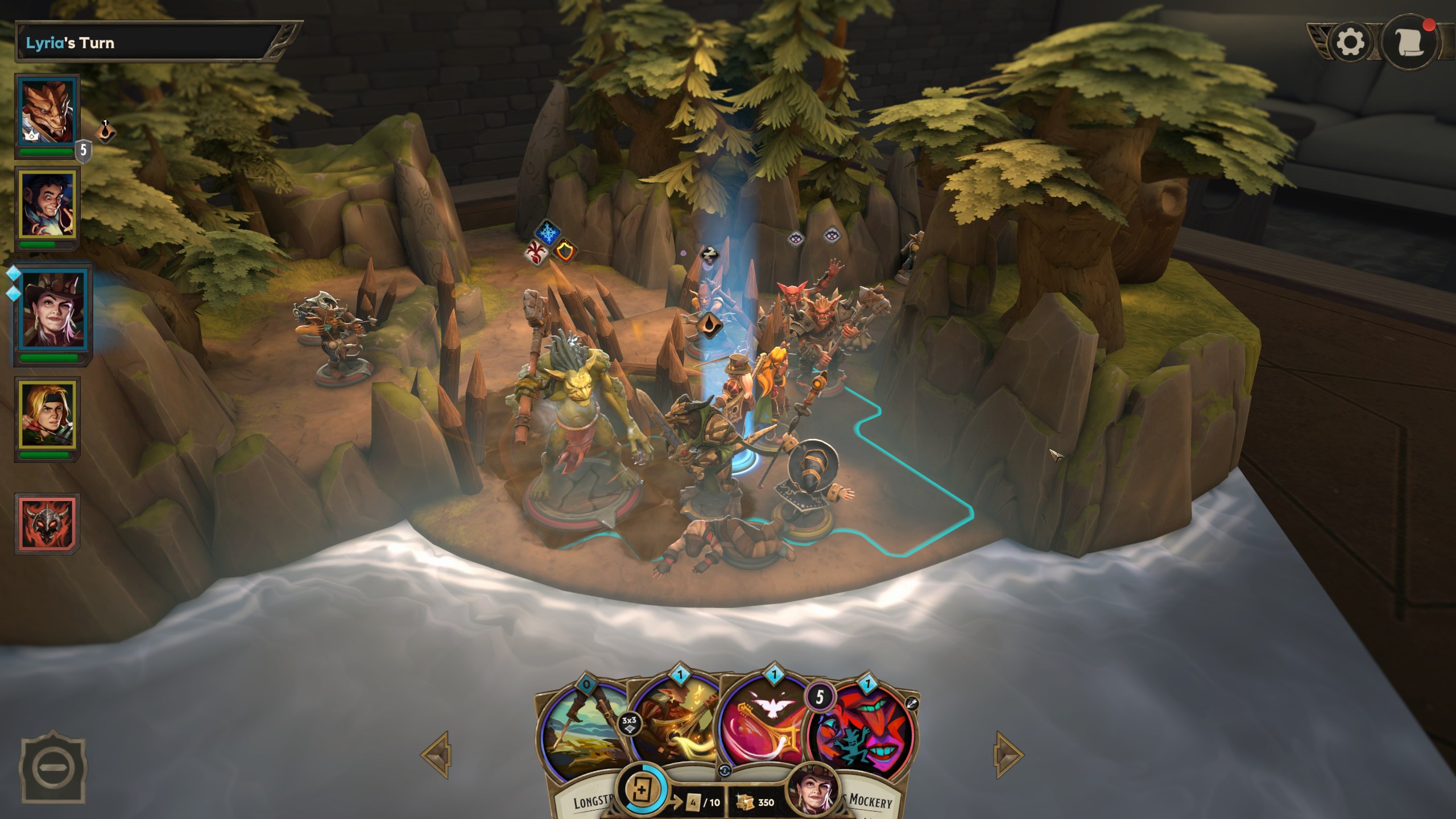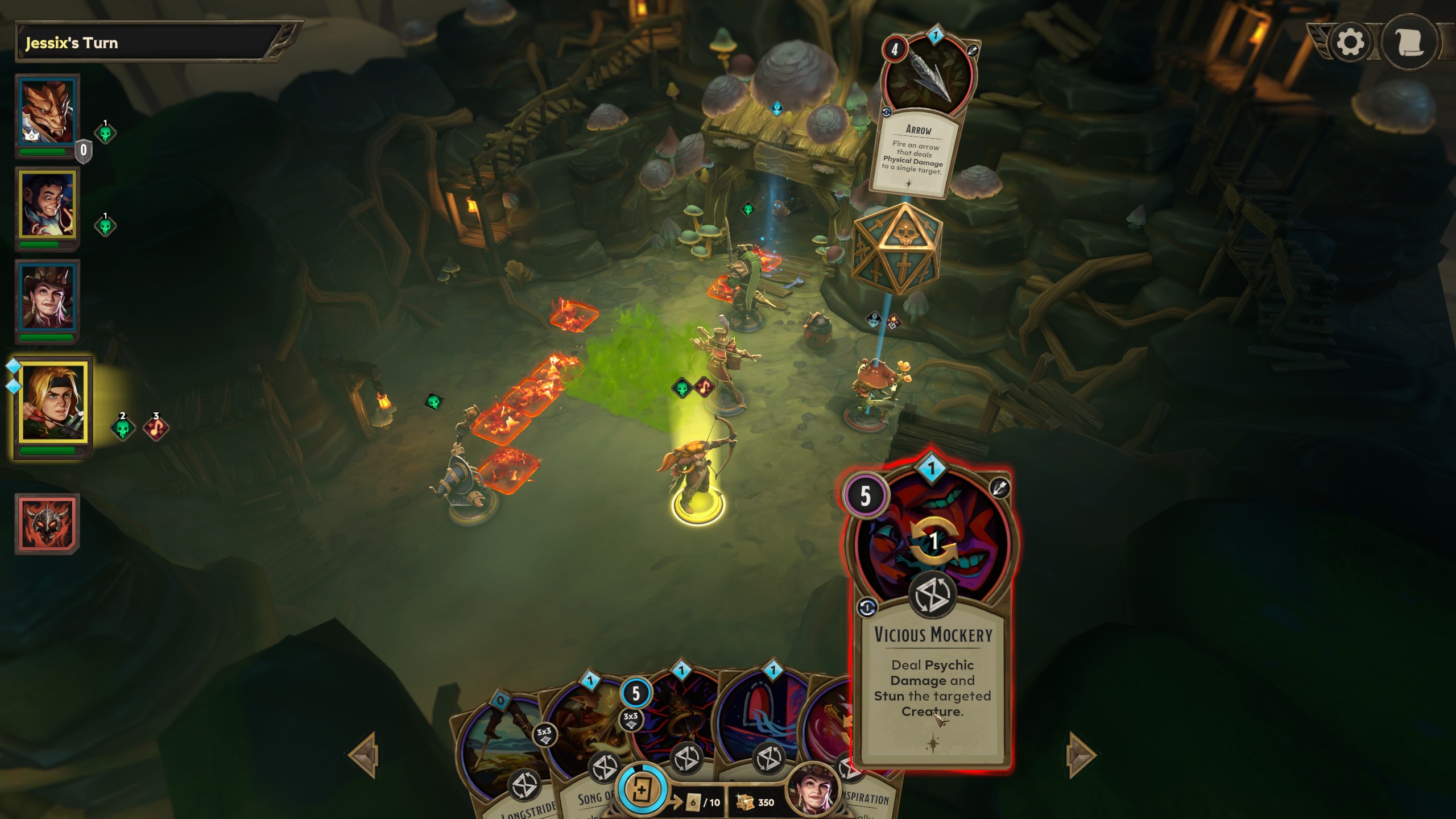 Le principe de base de Demeo est simple, on dirige un groupe de personnages possédant un ensemble de cartes et deux actions par tour pour arriver au fin fond du donjon et abattre le boss. Une action permet de se déplacer de tant de cases ou bien d’utiliser une de nos cartes représentant généralement un sort ou un objet.