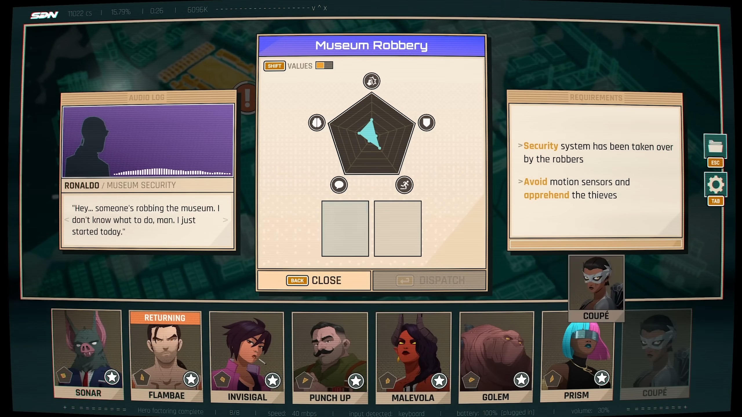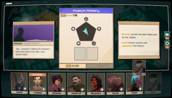 Ainsi, on approche du premier point intéressant du jeu : le Dispatching. Des missions apparaissent sur une carte, on clique pour en savoir plus, puis on attribue différents membres de notre équipe à l’aide d d’un simple glisser-déposer. C’est basique, mais le tout se complexifie au fur et à mesure par la notion de niveaux de héros, d’événements aléatoires et surtout d’événements orchestrés. C’est dans ces derniers que Dispatch excelle : le gameplay sert le scénario, et le scénario influence le gameplay.