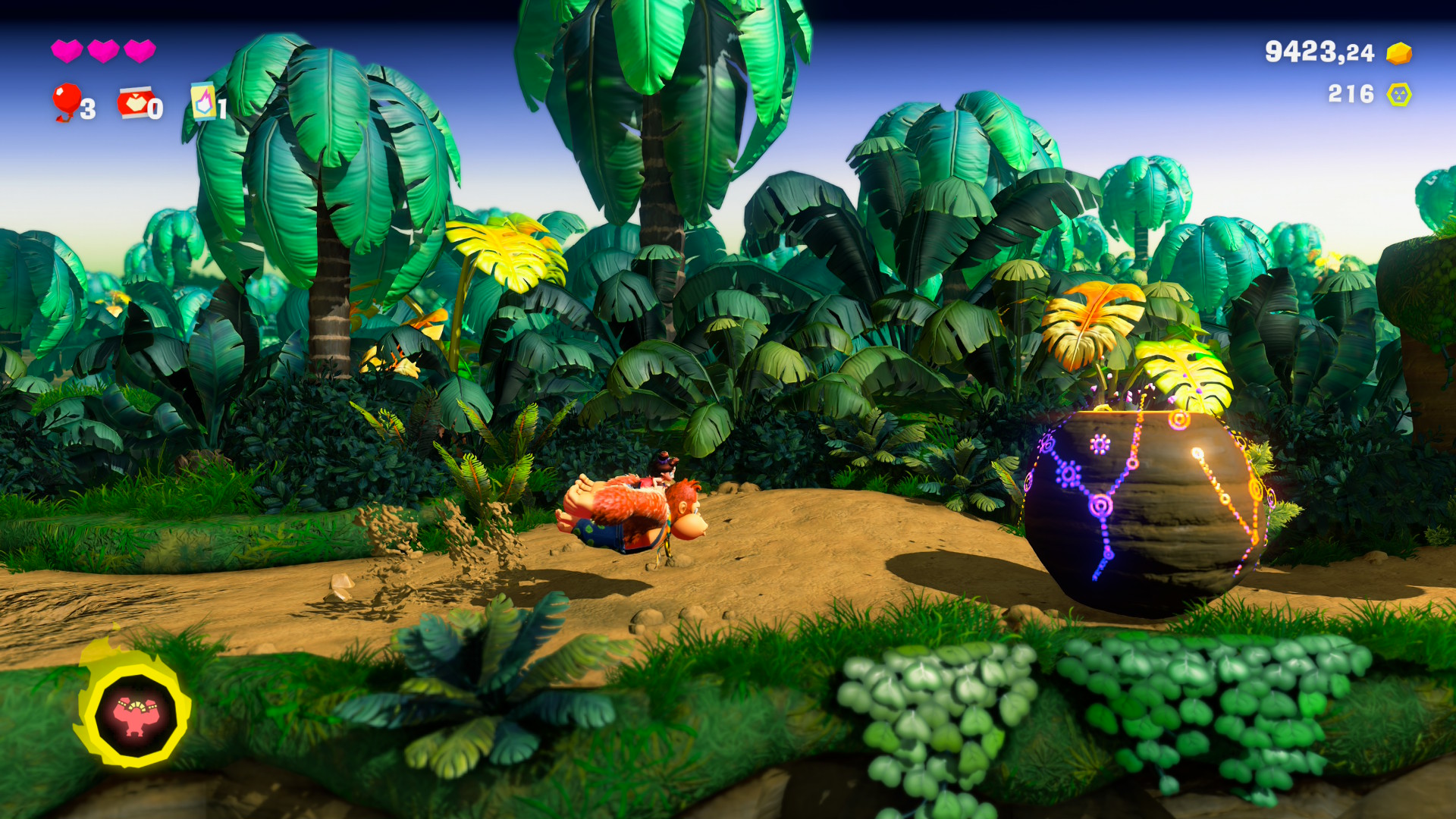 Très vite, le jeu révèle sa véritable nature : celle d’un « collect-a-thon » massif, dans la droite lignée de Super Mario Odyssey. La quête principale peut se boucler rapidement, mais le cœur du jeu réside dans la chasse aux centaines de collectibles. Si la formule vous avait rebuté chez le plombier, passez votre chemin. Bananza reprend les mêmes codes, mais les améliore.