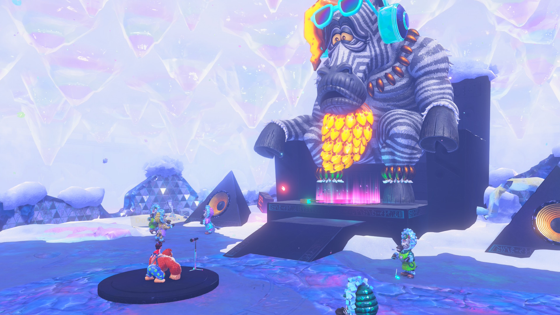 Pour venir à bout des obstacles les plus coriaces, DK pourra compter sur ses transformations « Bananza ». Pour les débloquer, il faudra retrouver d’anciens sages reconvertis en DJ et leur rapporter des CD perdus. S’ensuivent des cinématiques de concerts déjantés au terme desquelles vous obtiendrez un nouveau pouvoir. Bananza Kong casse tout sur son passage, Bananza Autruche vous permettant de planer, et Bananza Zèbre vous permettant de courir sur des matériaux légers, comme par exemple des ponts de glace, qui autrement s’effondrent sous votre poids.