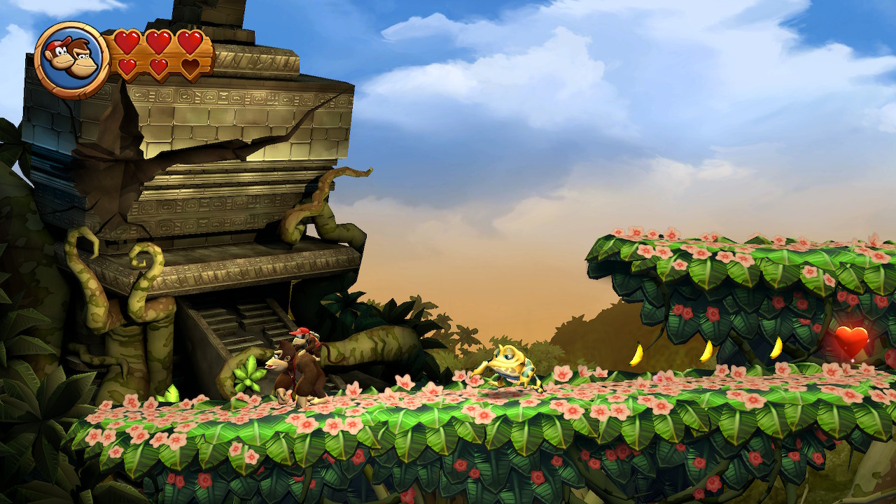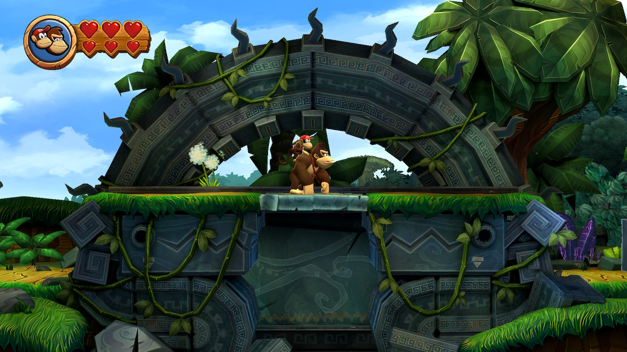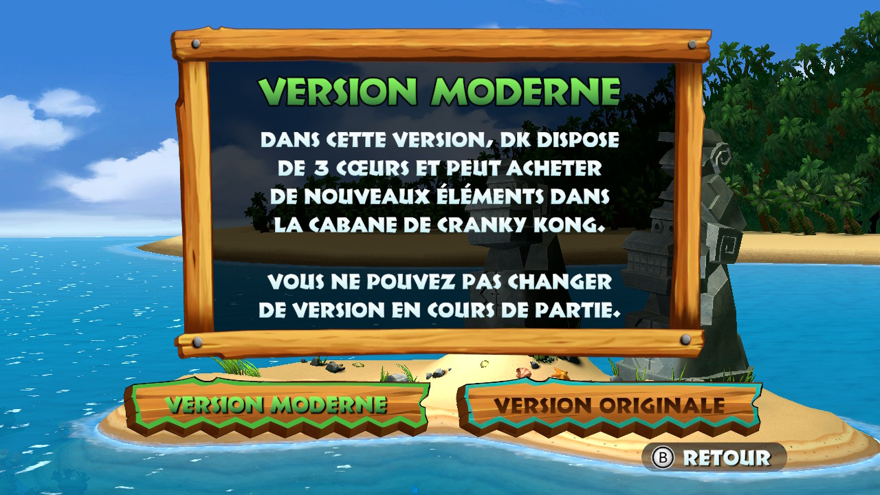 Autre ajout à noter, les développeurs étant conscients que le jeu pourrait s’avérer retors pour certains joueurs, le mode revisité vous propose de parcourir l’aventure avec 3 cœurs au lieu de 2, et un mode Super Kong peut être activé lorsque vous perdez successivement 8 vies sur un même niveau. Celui-ci vous permet de terminer le niveau de manière automatique vous épargnant alors de perdre toutes vos vies (et votre patience par la même occasion) sur une section du jeu.