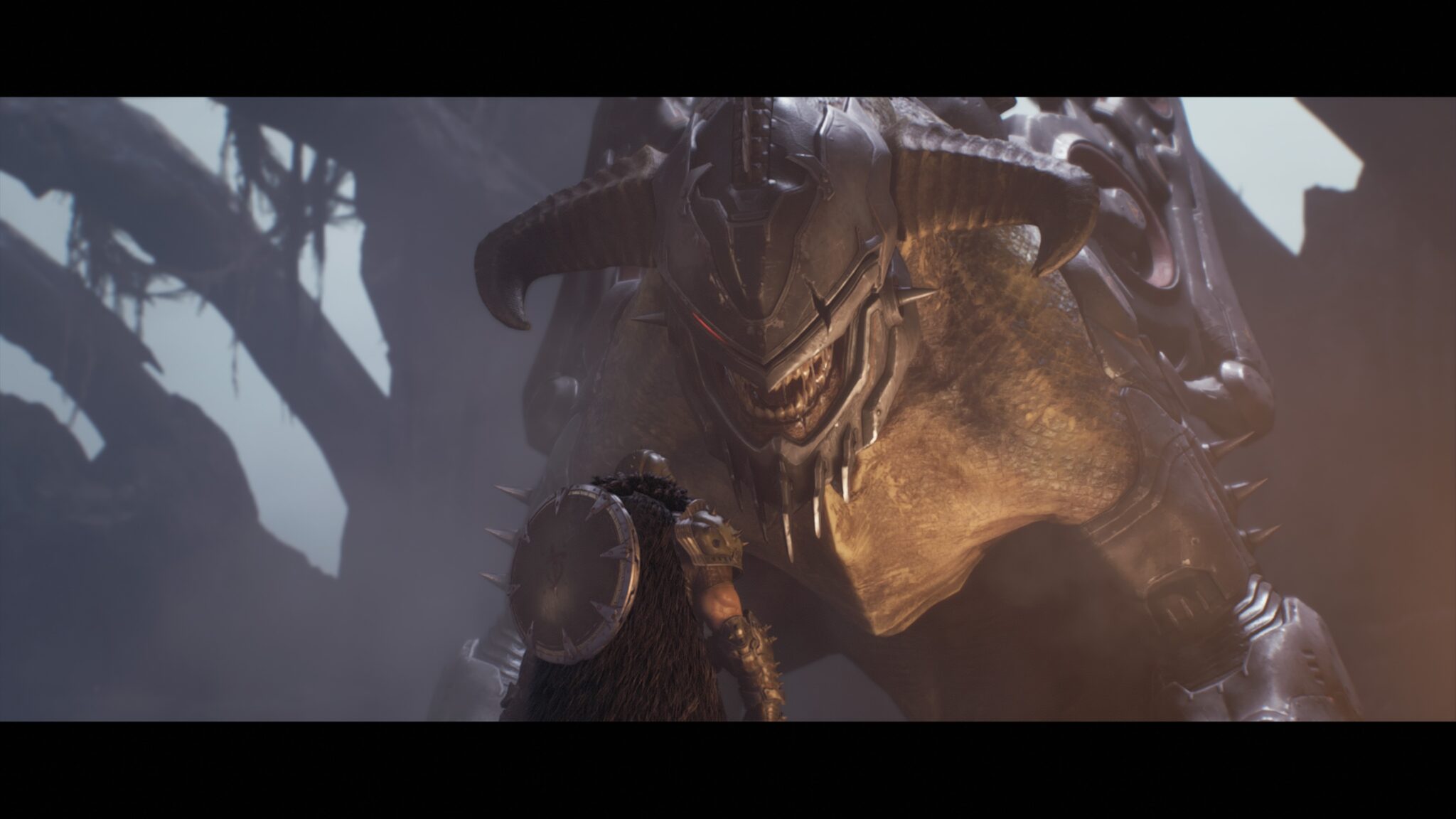DOOM: The Dark Ages opère un virage dans la série. Fini le lointain futur des années 2150, ici, vous évoluez sur Argent D’Nur, une planète aux allures d’Asgard, où les guerriers sentinelles tout en armure et en peaux de bêtes vêtus évoluent dans de gigantesques bâtiments gothiques fonctionnant à l’électricité. Le mélange opéré par les équipes de ID Software entre technologie futuriste un brin capricieuse et architecture moyenâgeuse avec ses grands châteaux, ses forêts obscures et ses lots de batailles à grande échelle dans lesquelles vikings de l’espace équipés d’épées énergétiques et de mechas affrontent moult démons. Le mélange fonctionne et les inspirations savamment dosées permet d’éviter un trop plein de kitch.