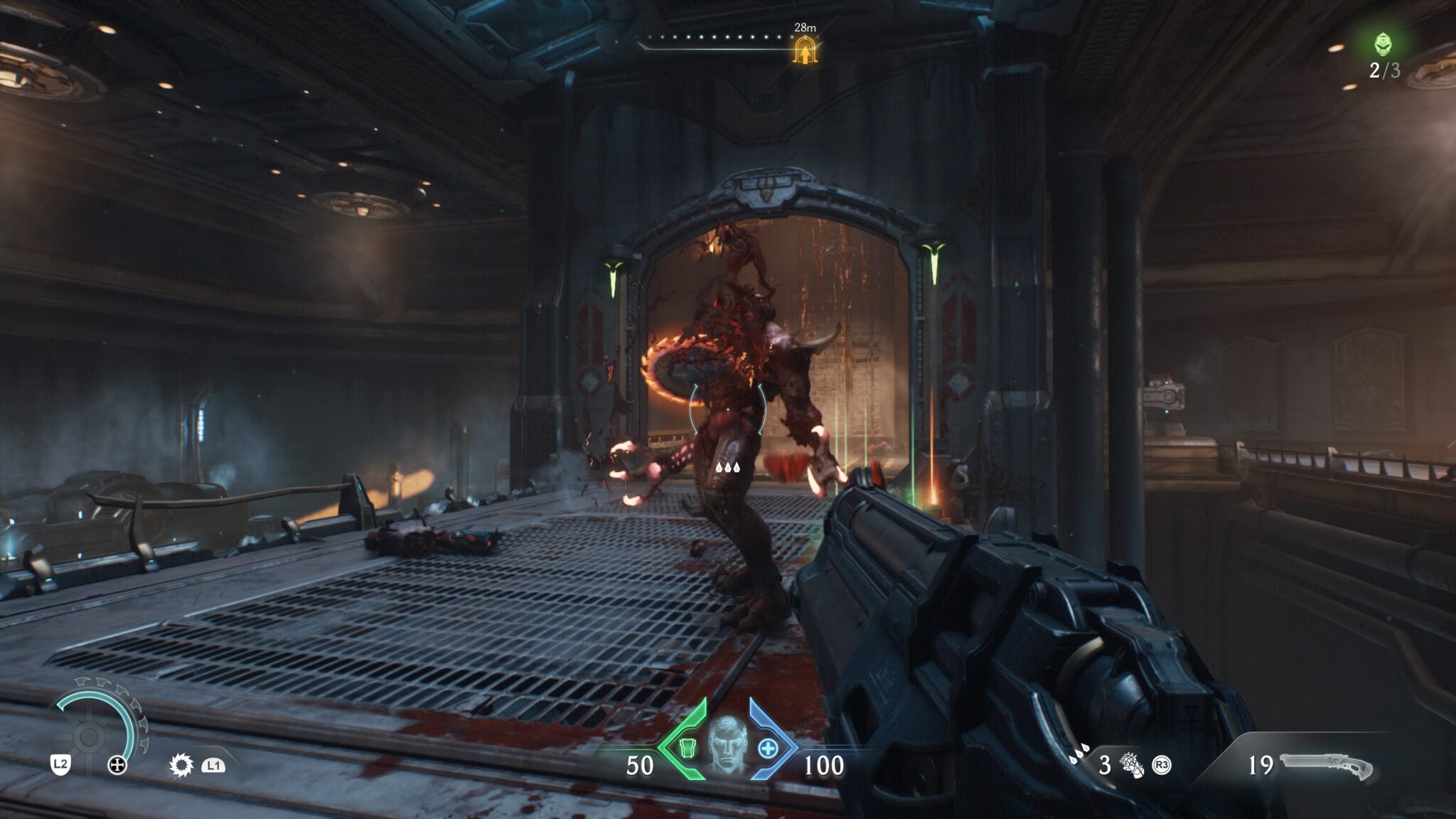 Dans les faits, il s’agit là d’un scénario tout ce qu’il y a de plus basique. ID Software a également fait un travail plus conséquent au niveau du story-telling avec un nombre conséquent de cinématiques nous exposant les enjeux de cette guerre du futur. Mais qu’importe les belles cinématiques et les promesses d’un affrontement titanesque, le scénario lorgne proche de la série Z de science-fiction et n’est qu’un prétexte pour faire rentrer le Slayer dans le panthéon de la dark fantasy.