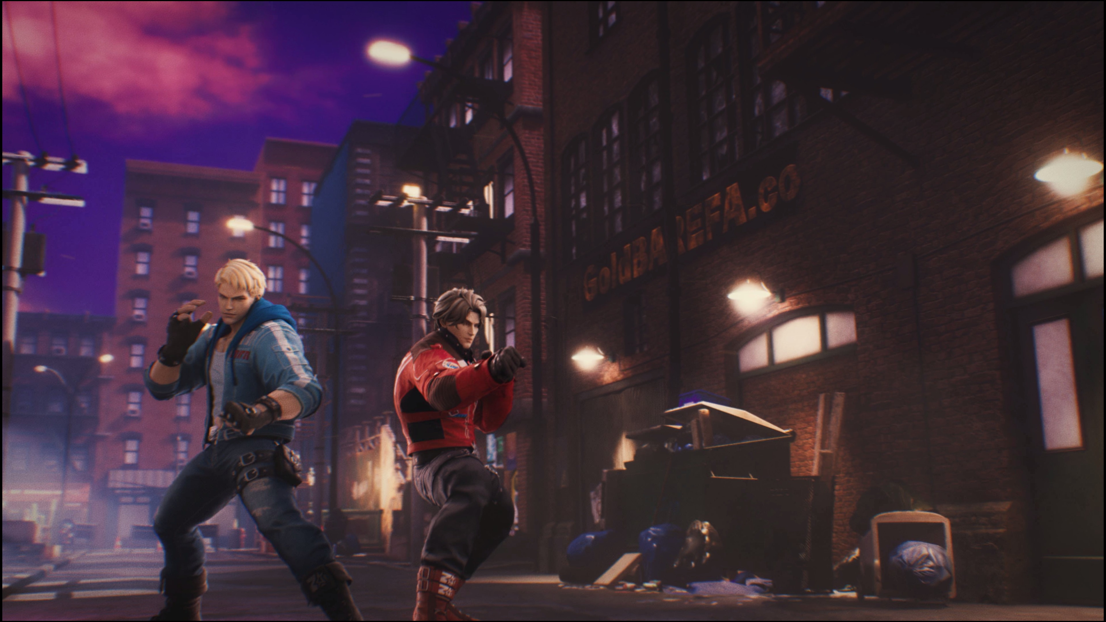 Double Dragon Revive est un « vrai » Double Dragon. On retrouve donc les deux héros habituels de la saga, Billy (le bleu) et Jimmy Lee (le rouge), qui doivent, dès le début du jeu, porter secours à leur amie d’enfance Marian, enlevée par un gang. Sauf que, 2025 oblige, Marian n’assume plus le rôle de demoiselle en détresse des premiers épisodes. On apprend rapidement (tellement rapidement qu’on ne prendra pas la peine de mettre une balise « spoiler » ici) que cette dernière s’était volontairement laissé enlever pour mener son enquête sur le gang en question.