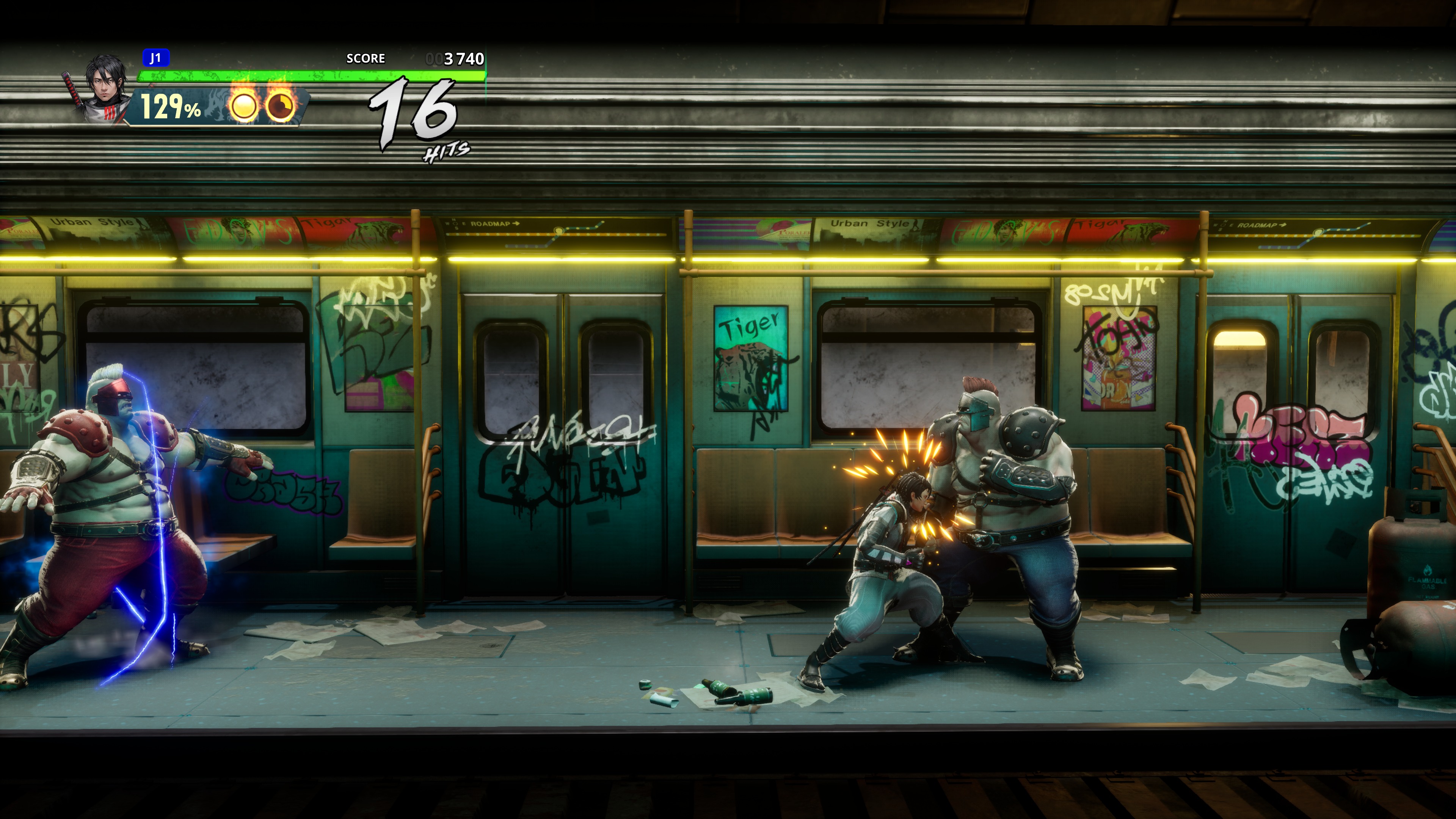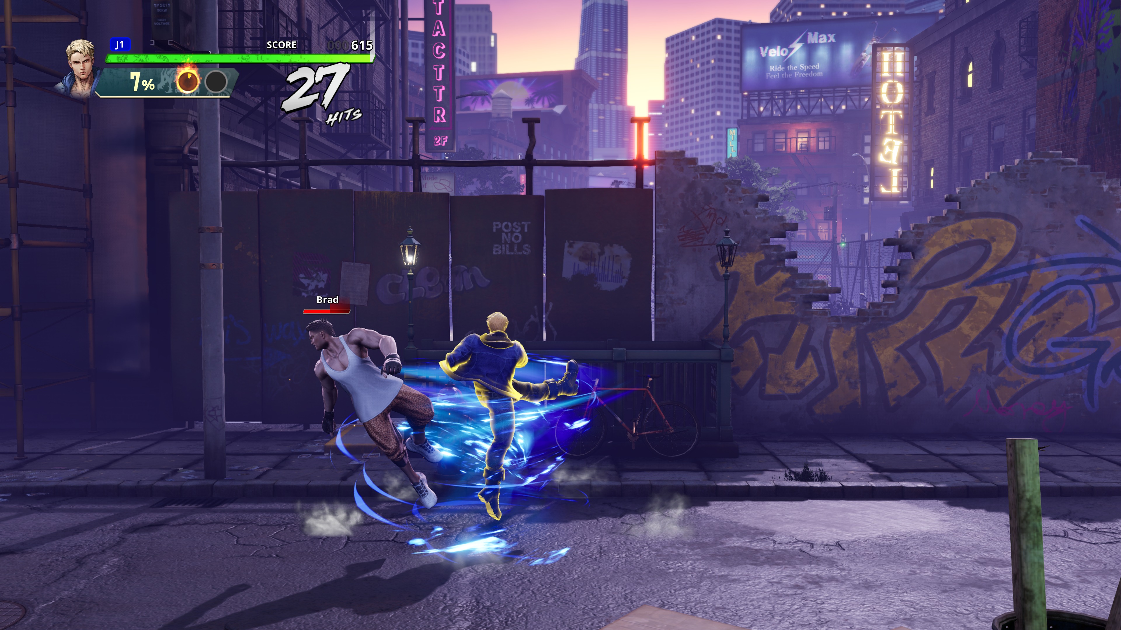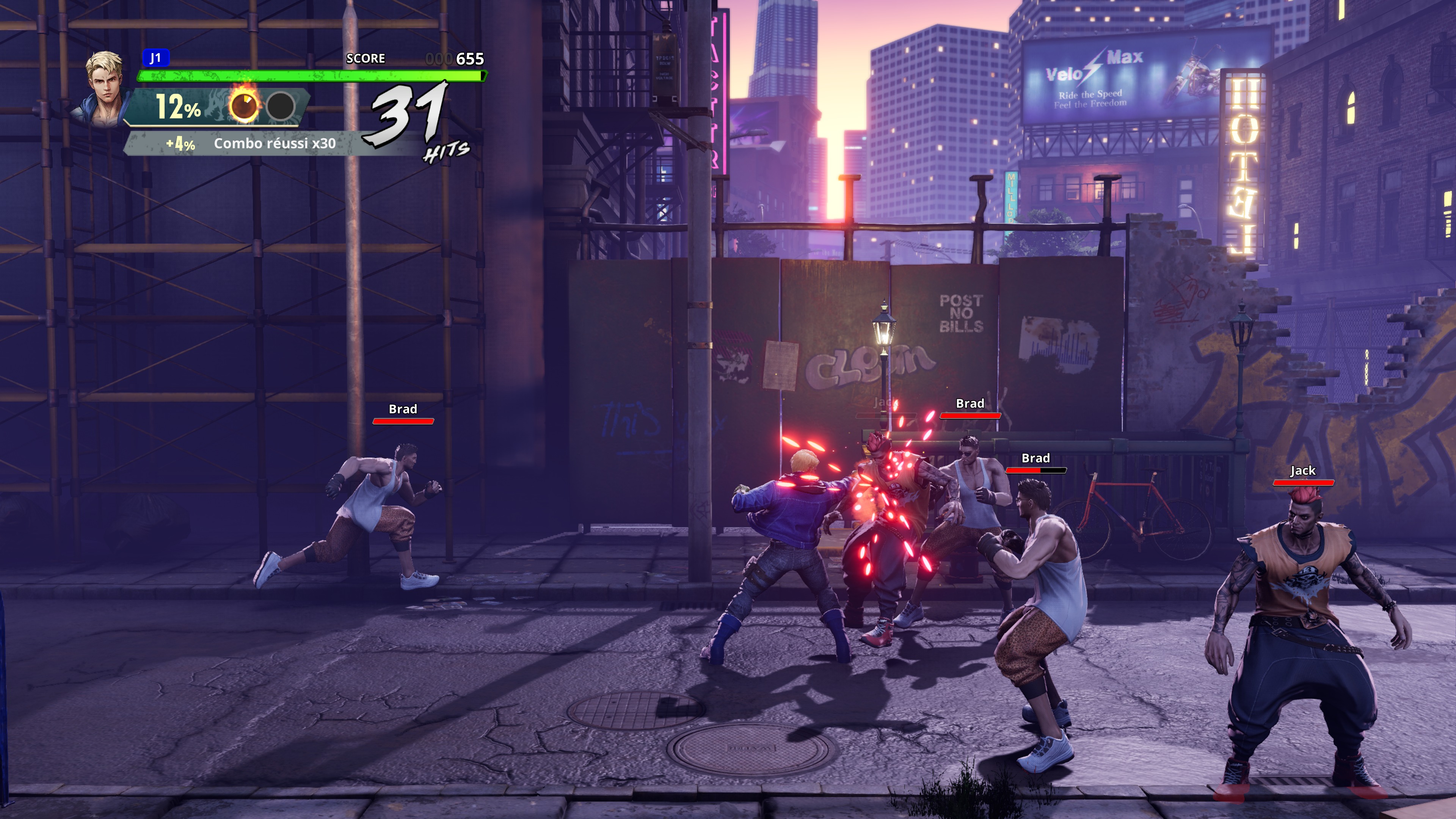 En termes de modernité, ce sera hélas plus ou moins la seule chose à noter. Pour le reste, on est face à un beat ‘em all tout ce qu’il y a de plus traditionnel, qui, certes, respecte les codes qu’il a participé à instaurer, mais qu’il échoue à renouveler quand d’autres titres tels que ceux cités plus haut s’en donnent à cœur joie. Ici, et malgré la participation d’Arc System Works (à l’édition), le gameplay se résume plus ou moins à du « button mashing », et ce n’est pas les rares possibilités de wall jump ou d’utiliser des réverbères ou autres conduits pour se projeter dans les airs afin de réaliser une attaque au sol dévastatrice qui rendront le titre plus stratégique. Techniques qu’il faudra néanmoins impérativement maîtriser, car certains niveaux, impitoyables, seront basés sur l’exploitation de ces mouvements.