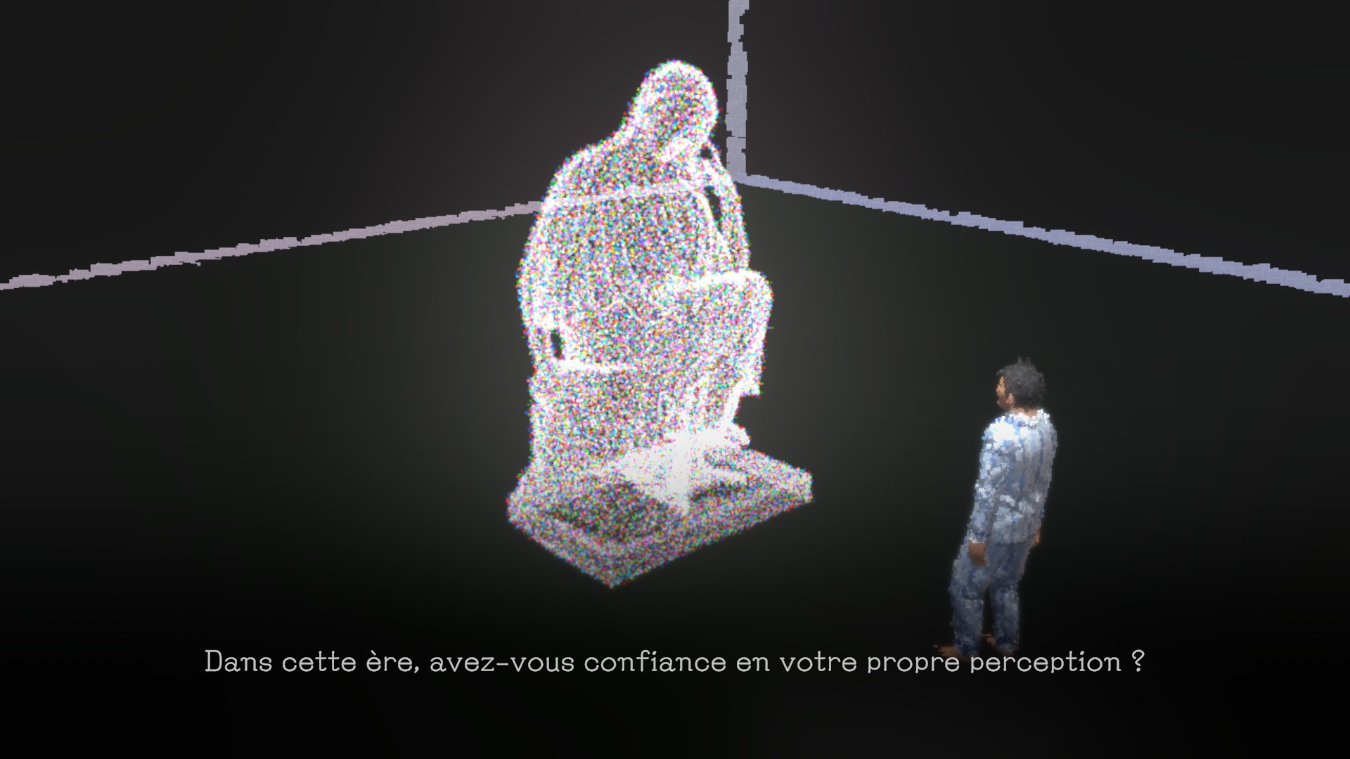 On le répète : oui, nous comprenons que ces choix, aussi frustrants soient ils, semblent mûrement réfléchis pour servir le propos du titre. Mais pour nous, cela a été fait au détriment de l’expérience de jeu. Le propos reste justement abstrait lui aussi, et on a du mal à comprendre où on veut nous emmener tant les sujets traités sont multiples. On nous parle de la mémoire des objets, des souvenirs, de l’art, de la création, de l’intelligence artificielle, de l’humanité, de la guerre… Des thématiques qui auraient toutes leur pertinences, mais qui ne sont finalement abordées qu’en surface à coup de symbolisme et de réflexions « philosophiques » offertes par une chaise ou un distributeur de boissons en panne.