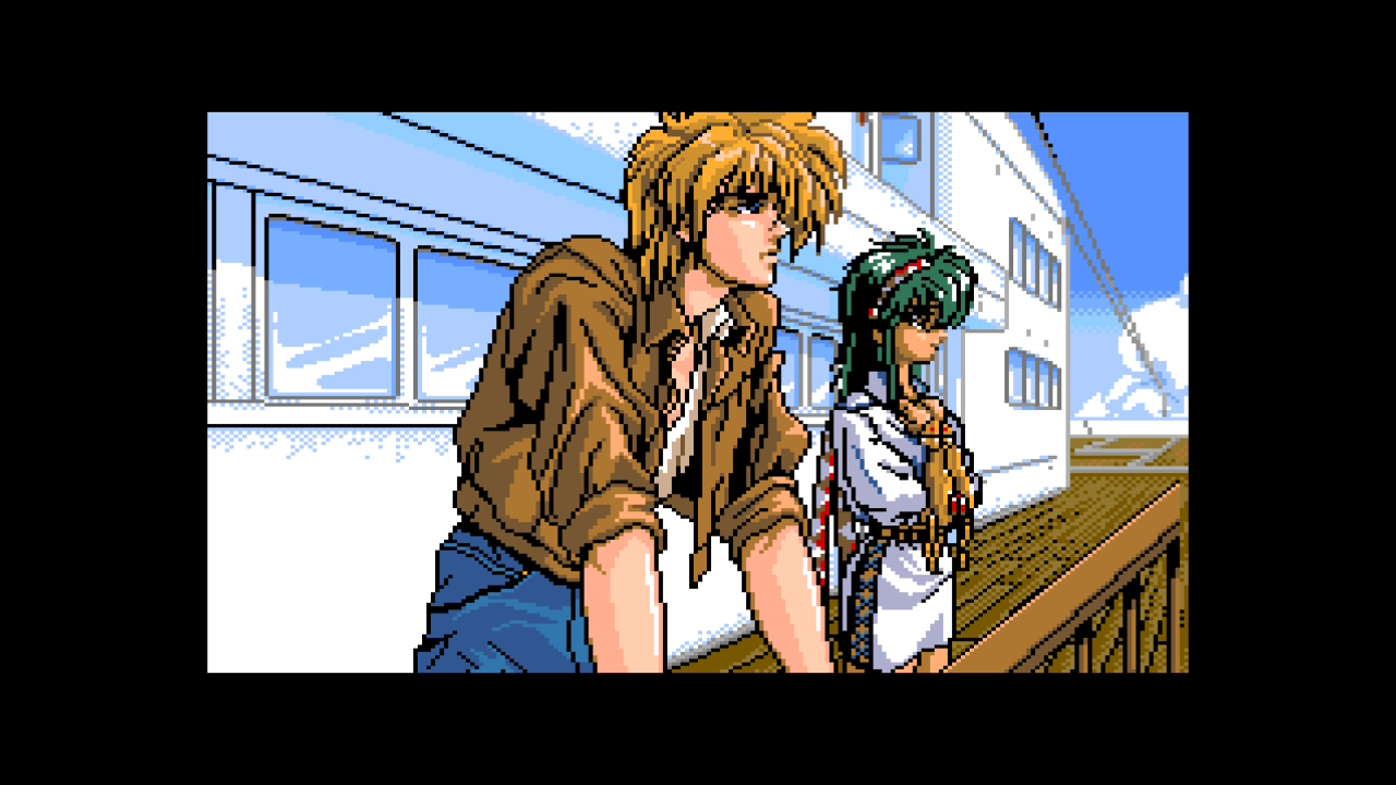 L’autre intérêt historique des jeux, c’est leur ancrage dans la culture anime du début des années 90, avec cette esthétique si particulière. El Viento, premier titre de la trilogie, n’est pas sans rappeler la série des Valis, une série de platformers également développés par Wolf Team et mettant en scène une jeune fille en tenue d’écolière – autre véritable trope de la culture manga.
