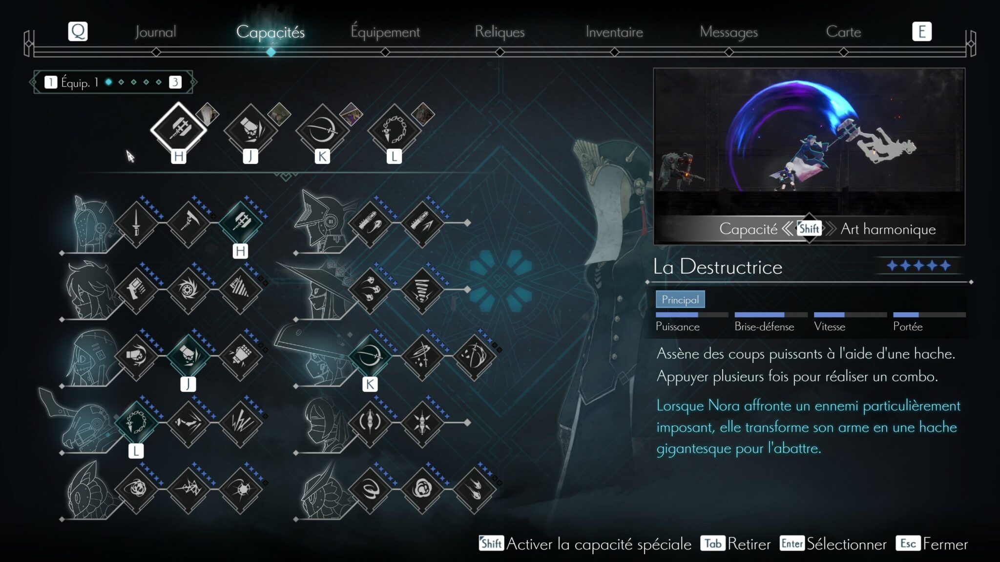 La petite surprise vient au niveau du combat, qui s’écarte un peu du premier opus. À la place des 26 esprits à trouver et donnant chacun une compétence spécifique, ici ce sont 10 esprits avec 3 variantes chacun à débloquer et améliorer à l’aide de différentes ressources, dont vous pourrez équiper vos 4 emplacements de capacité. Certains y verront une simplification bienvenue, d’autres une régression qui limite l’apparition de gameplay émergent.