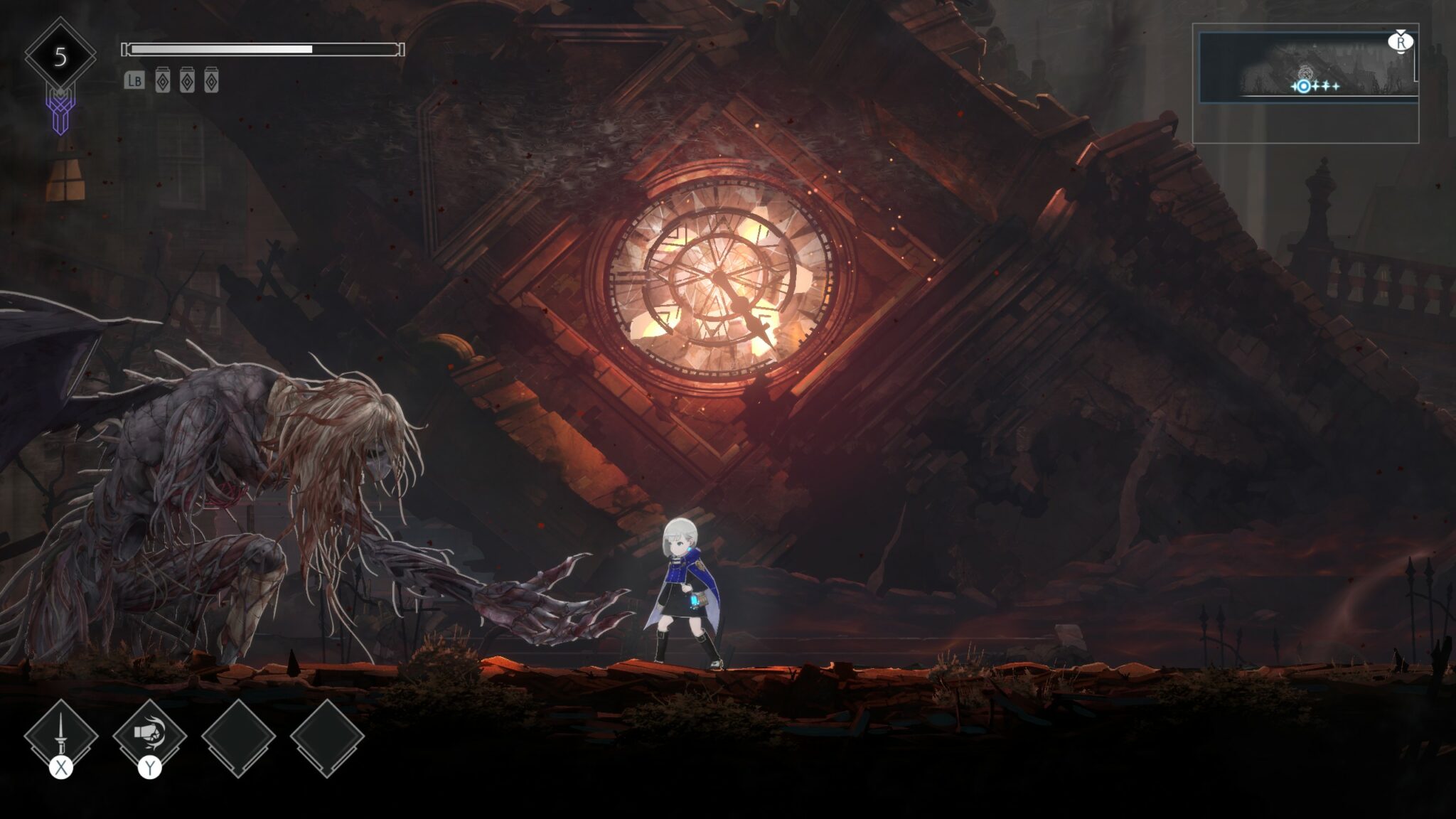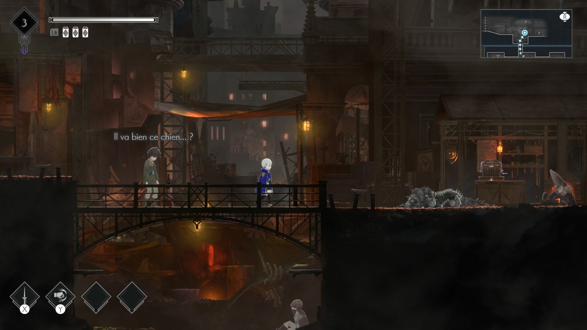 Même les deux villes, qui servent de hub, jouent ce rôle d’ancrage : on y revient, on y voit le monde évoluer, reprendre un peu de couleur, et l’on retrouve des visages familiers. Un cœur narratif, qui manquait un peu dans Ender Lilies, même s’il reste ici un poil cryptique.