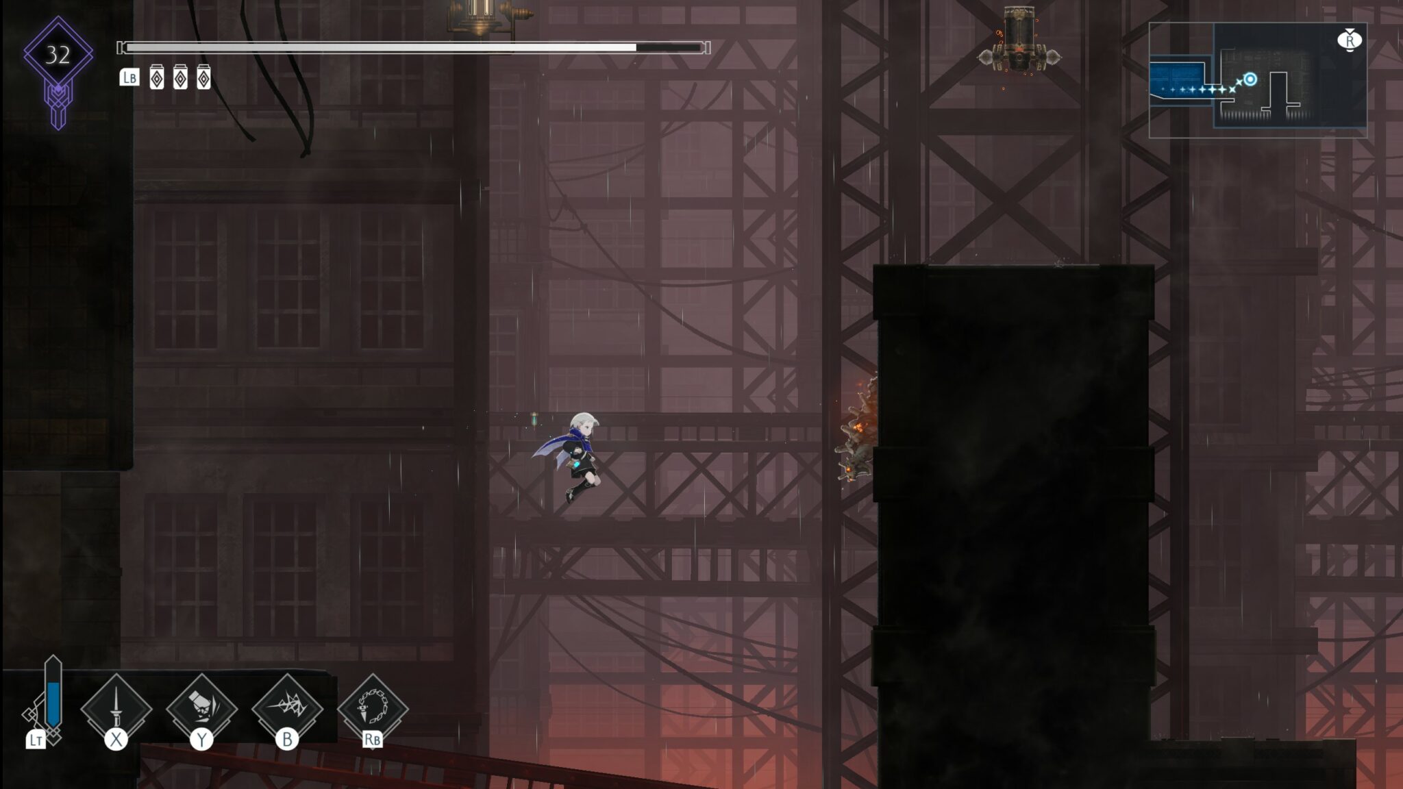 Qui dit metroidvania dit recette à respecter scrupuleusement depuis des temps immémoriaux. Comme d’habitude, vous aurez des facultés et des clés à débloquer tout au long de l’aventure, qui vous permettront d’accéder à de nouvelles zones et passages secrets : dash aérien, murs spécifiques à briser, double saut, etc.