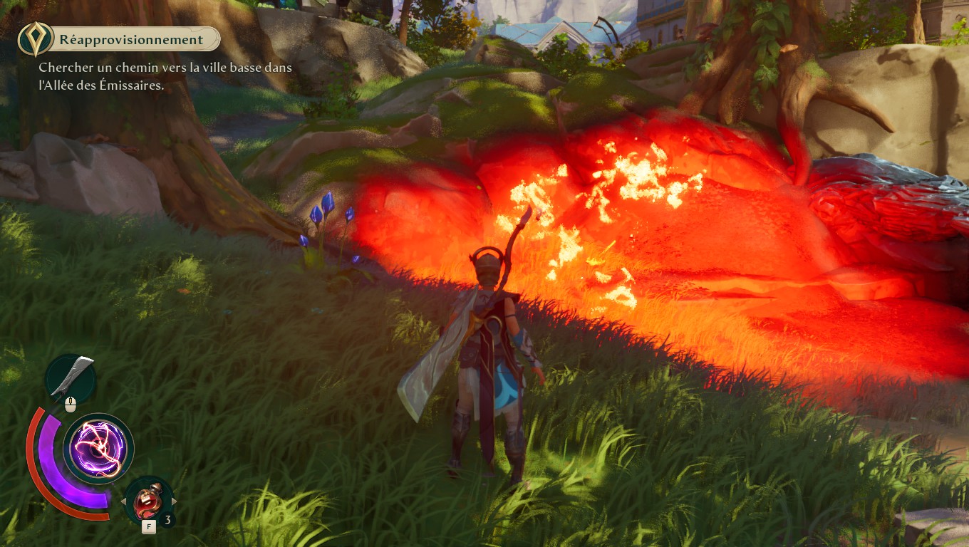 Par cet aspect, Eternal Strands fait tout de même inévitablement penser à un Breath of the Wild : une jauge d’énergie qui s’épuise en courant ou en escaladant, des énigmes à base de feu et de glace, une exploration au cœur du gameplay… Ce n’est évidemment pas un mal en soi et cela fonctionne globalement bien, mais l’inspiration est tellement présente que dans les premières heures de jeu, on s’attendait à débloquer rapidement une voile et à pouvoir faire la cuisine avec tout le loot qu’on ramasse.
