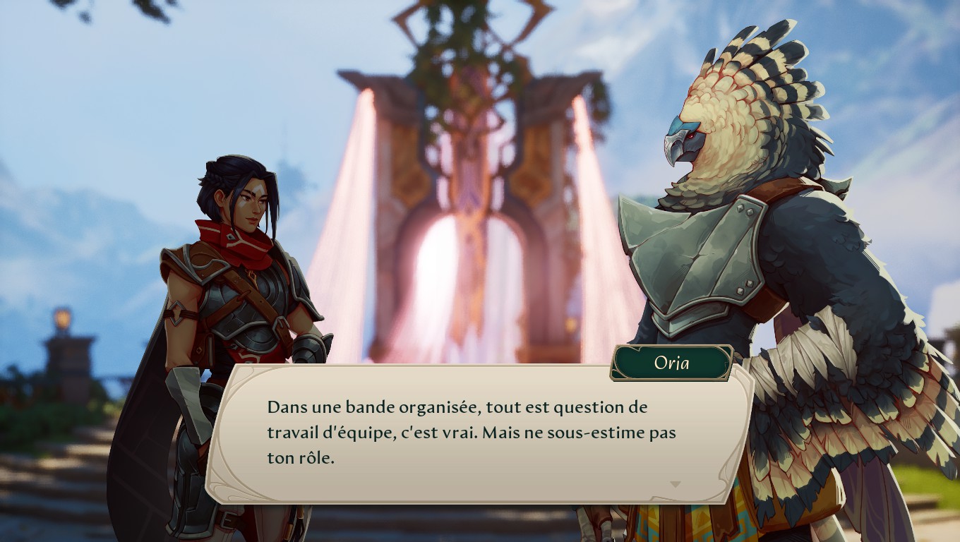 Cette approche est assez originale et plaisante à découvrir. Dans l’ensemble, le lore de Eternal Strands est riche, et l’univers est agréable à explorer pour en dénicher tous les secrets. Il nous a toutefois fallu quelque temps pour nous acclimater à tout ce vocabulaire : on nous parle de Tisserands, d’Arkons, de Voile… C’est parfois difficile de savoir de quoi Brynn et ses amis parlent, surtout dans les premières heures du jeu.