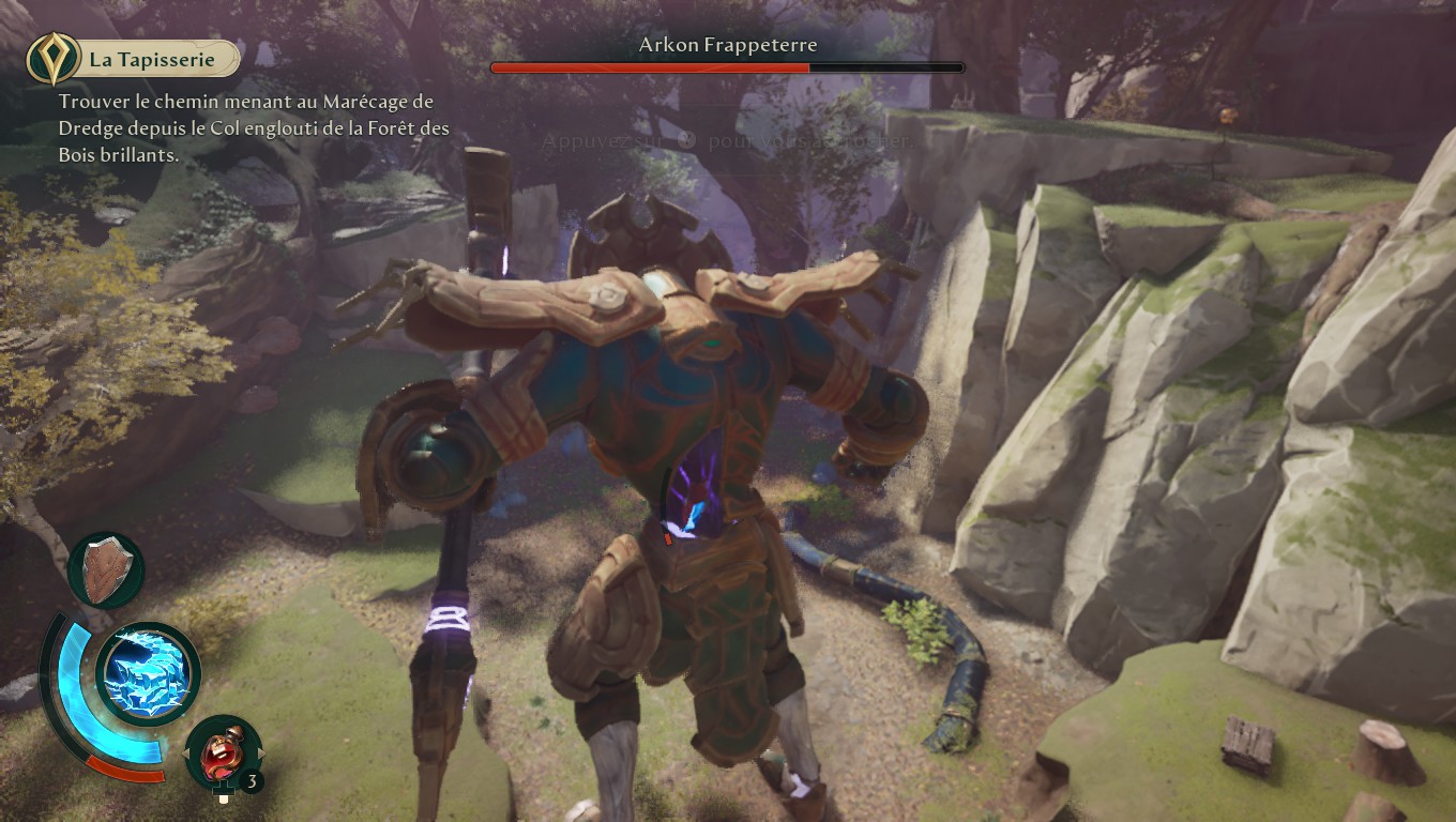 Malgré toutes les qualités de Eternal Strands, il y a tout de même quelques accrocs dans cette jolie toile. Le principal est que la boucle de gameplay semble assez vite répétitive. Les affrontements contre les boss, bien que visuellement spectaculaires, finissent par se ressembler et s’éterniser : on escalade le colosse, on frappe aux endroits stratégiques pour lui retirer ses protections, on inflige un maximum de dégâts, puis on recommence sur une autre partie du corps jusqu’au trépas. Les sorts aident à varier les stratégies, mais cet aspect répétitif, combiné au bestiaire assez limité, atténue l’impact de ces confrontations qui avaient pourtant l’air épiques au premier abord.