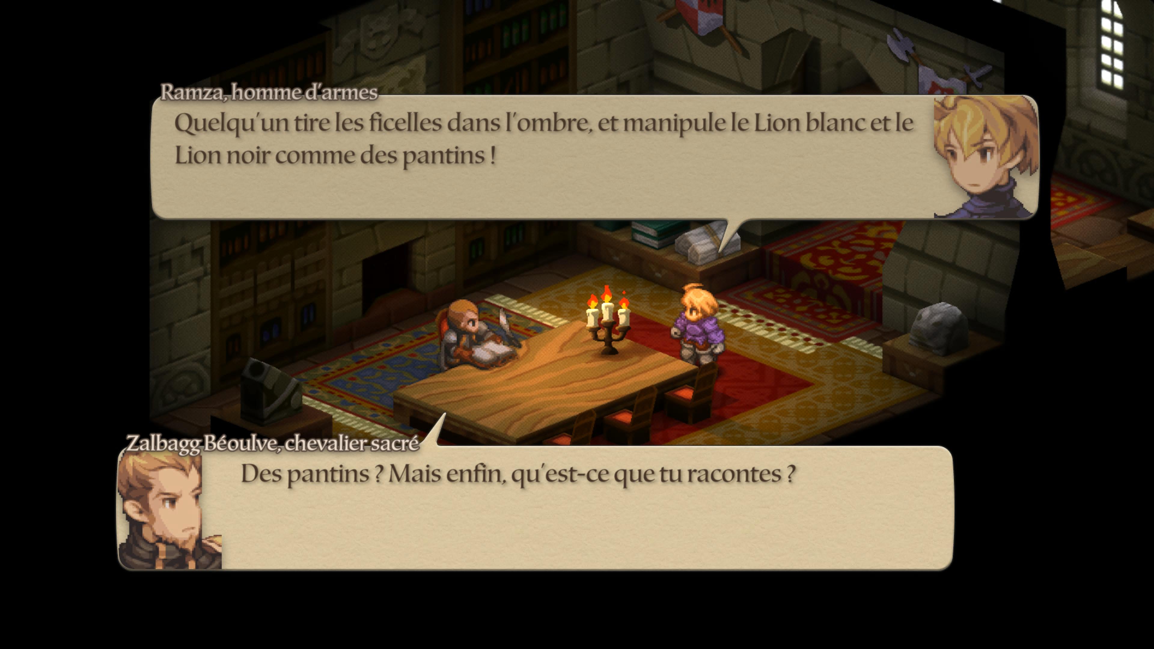 Pire encore, au-delà de la traduction dans la langue de Molière et de quelques améliorations de confort (pouvoir recommencer un combat à la volée notamment), Final Fantasy Tactics: The Ivalice Chronicles justifie assez peu son existence. Il n’y a aucune réorchestration des musiques et les ajouts de The War of the Lion, remaster du jeu sur PlayStation Portable, n’ont même pas été intégrés à cette édition. Et alors que la version originale du jeu est proposée avec, il n’est même pas possible de commencer une partie sur la version classique pour la poursuivre sur le remake. C’est à n’y rien comprendre.