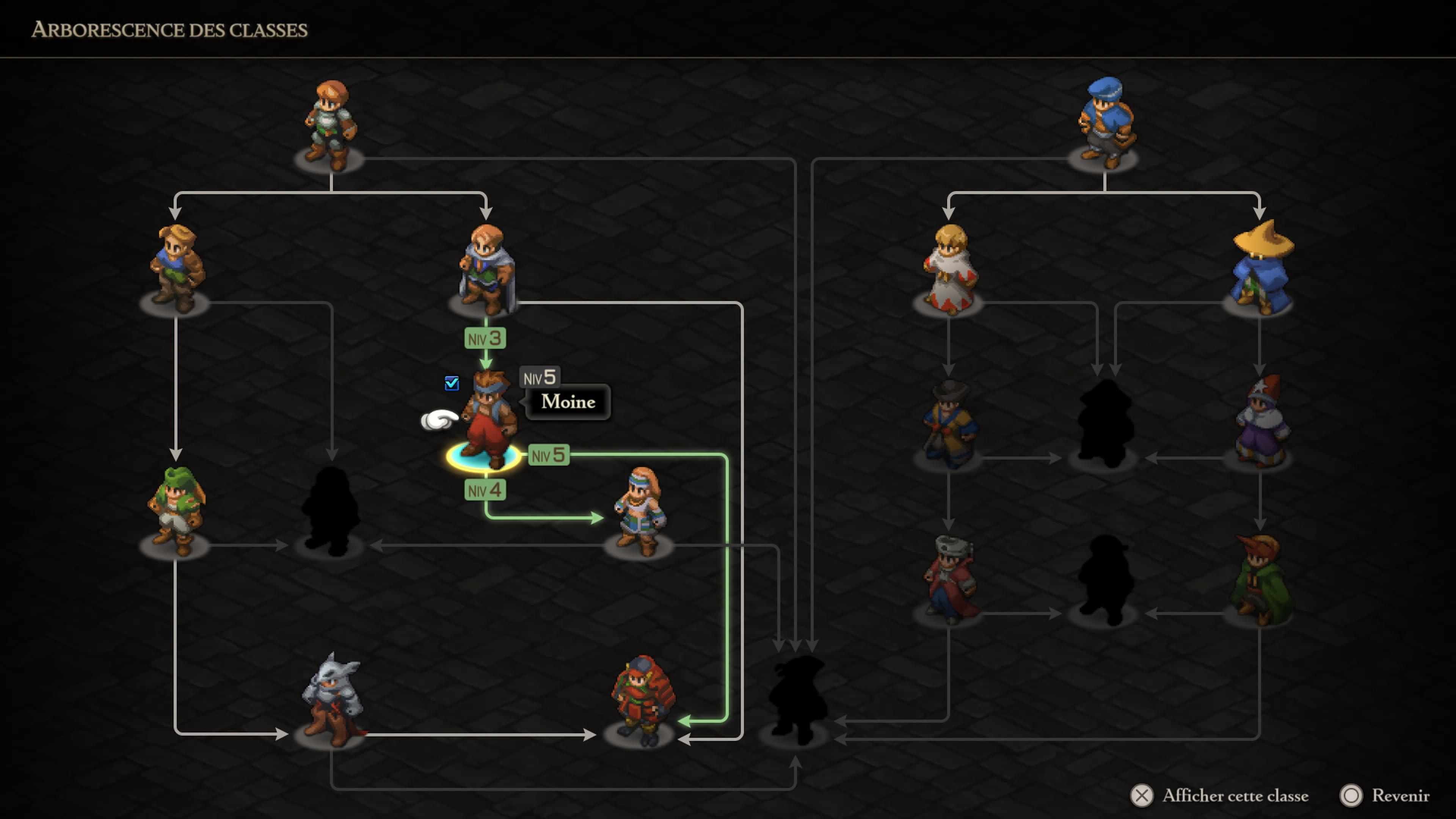 Un principe simple, en apparence, mais qui cache une réelle profondeur et offre une personnalisation poussée de nos alliés. Car si les attaques de base de la classe choisie seront toujours disponibles en combat (pour peu qu’elles aient été débloquées), il est possible d’ajouter celles d’une autre classe de notre choix (qu’elles soient actives ou passives). Vous voulez créer un chevalier avec des sort de soin capable de capturer les monstres ? C’est possible. Un ninja hyper mobile et usant de magie ? C’est également possible. De quoi donner libre court aux stratégies les plus originales, tout en se créant notre équilibre d’équipe idéal. Ne dit-on pas qu’une bataille est gagnée avant même d’être lancée ?