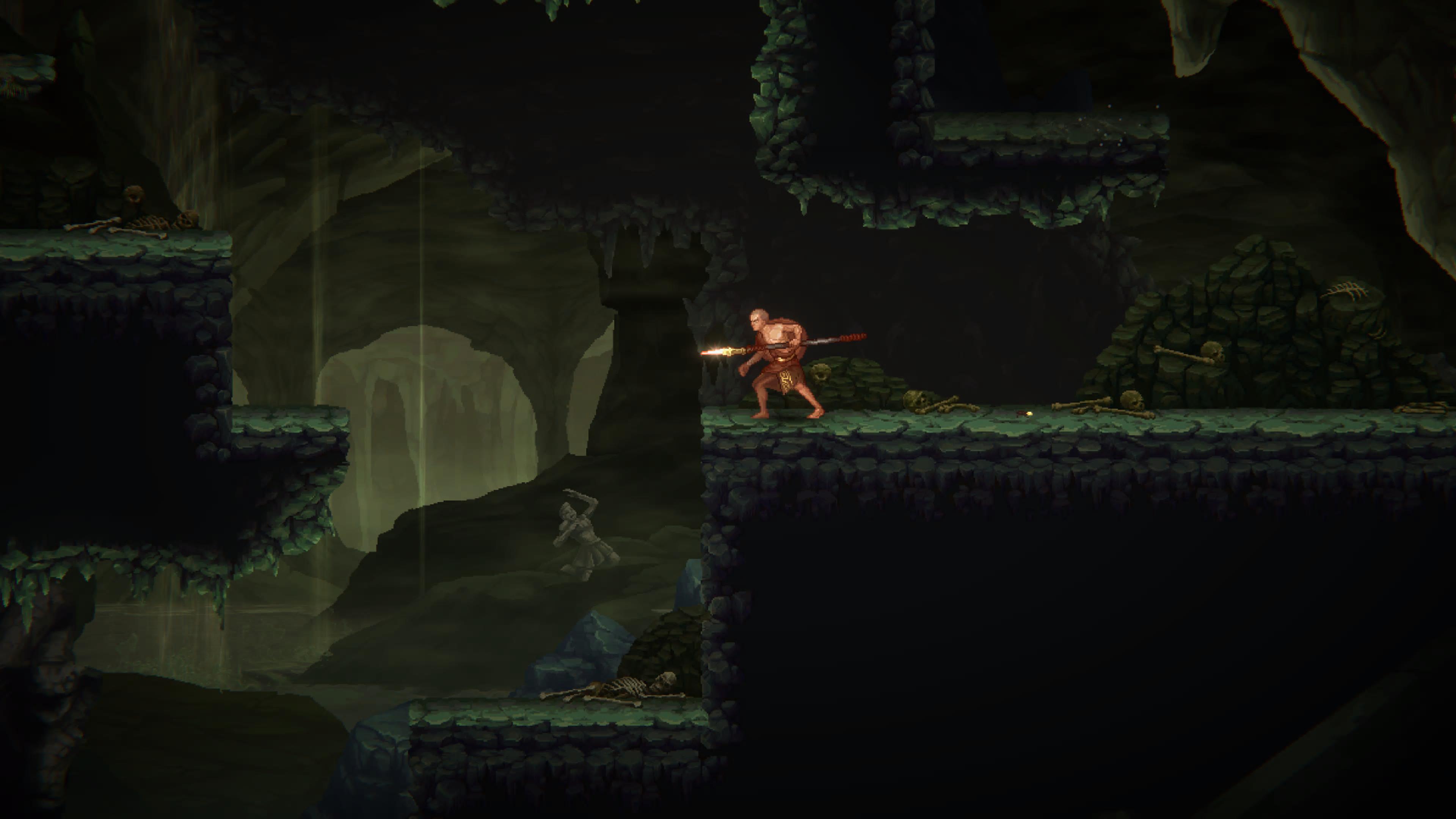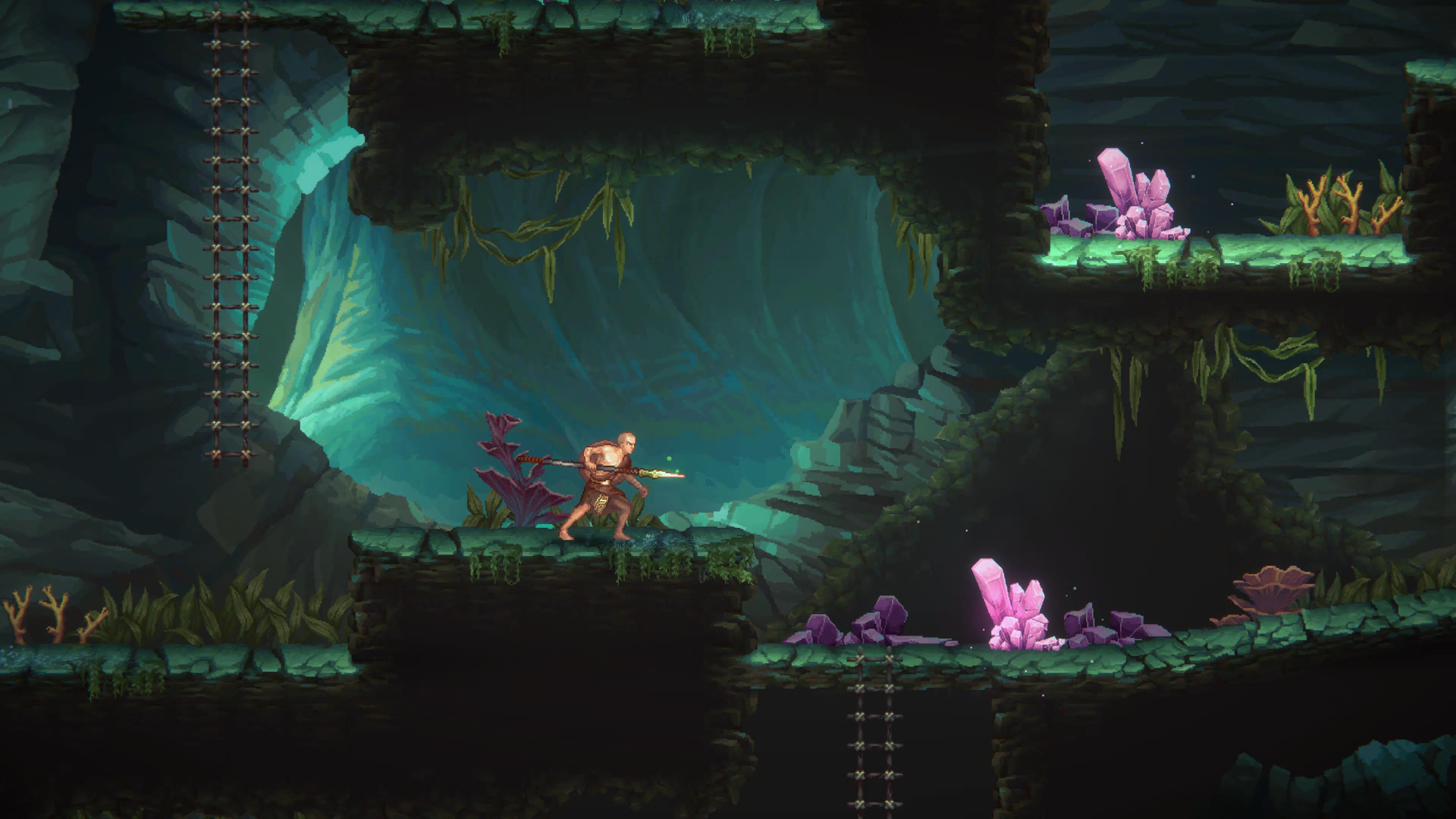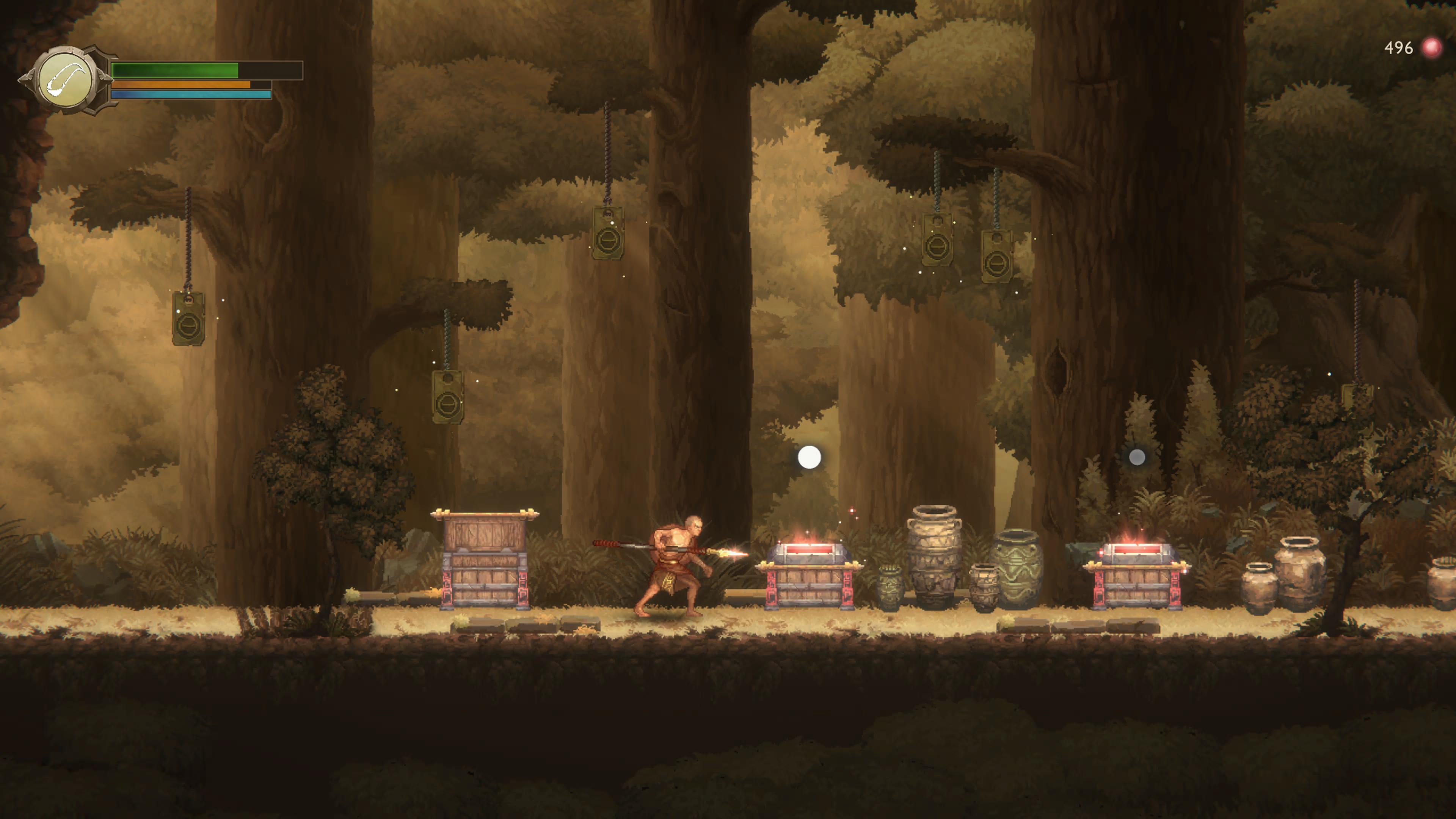 L’aventure, tout en restant propre à la formule Metroidvania, reste suffisamment dirigiste pour ne pas se perdre dans les différentes cartes. Pas trop grand, ni trop étouffant, l’agencement du monde de Sons of Sparta nous permet de retenir facilement l’emplacement des différents endroits qui seront accessibles plus tard sans abuser du voyage rapide grâce aux temples des différentes divinités.