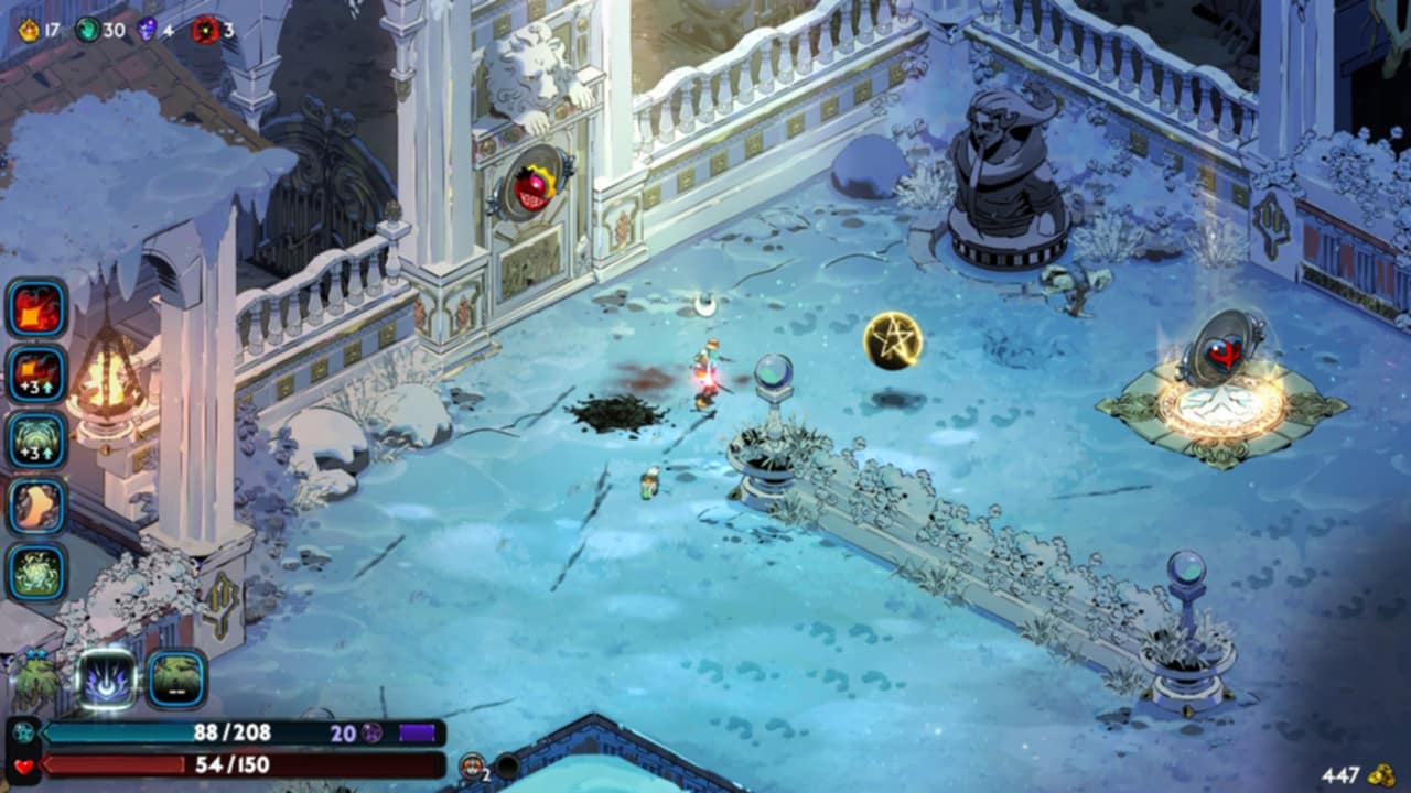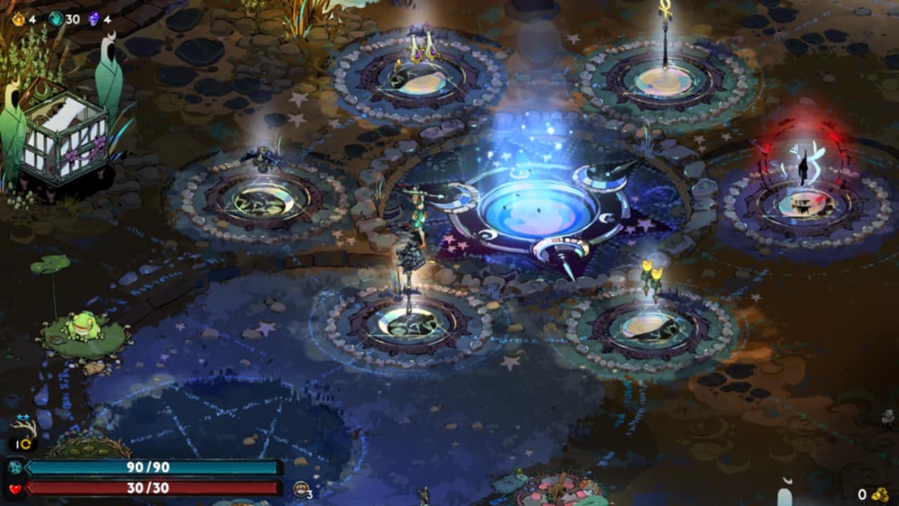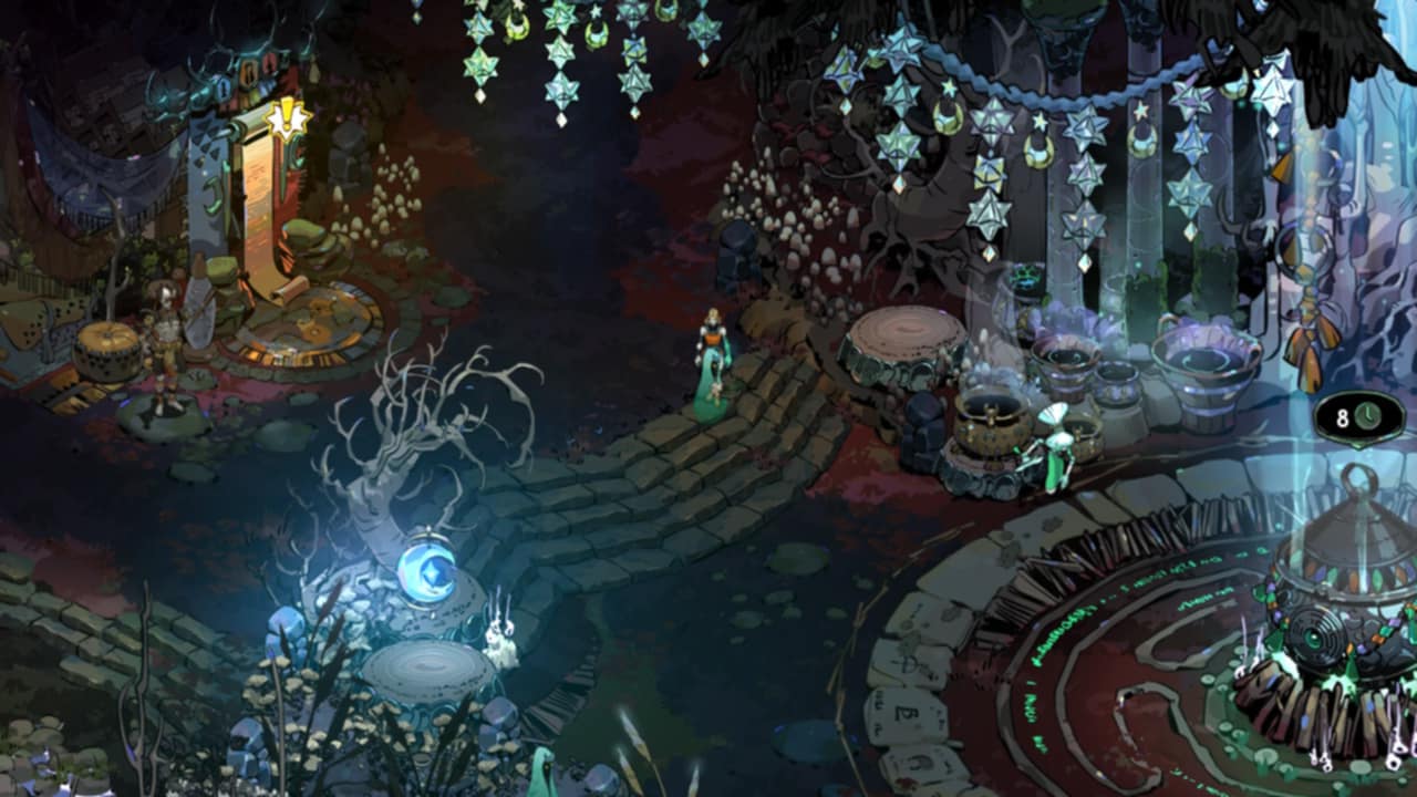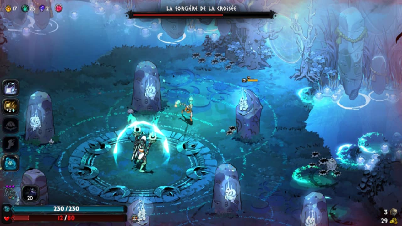 Élevée en secret par Hécate à la Croisée des Chemins, limite entre la surface et les Enfers, Melinoë a développé des talents martiaux et magiques en plus d’une haine viscérale pour son grand-père. Ainsi, le scénario qui se développe à chaque échange, rencontre et confrontation avec les personnages mythologiques nous en apprend un peu plus à chaque partie sur Melinoë, ses alliés et ses ennemis. Par son écriture, son gameplay, sa musique, le jeu nous rend vite accro à son sentiment de progression magistralement bien dosé.