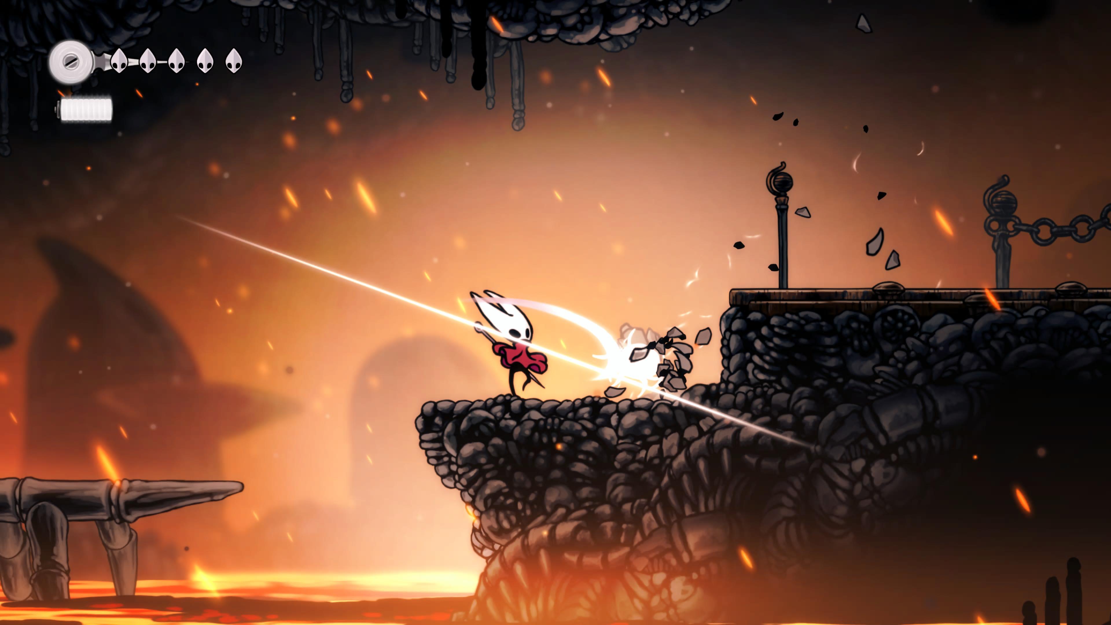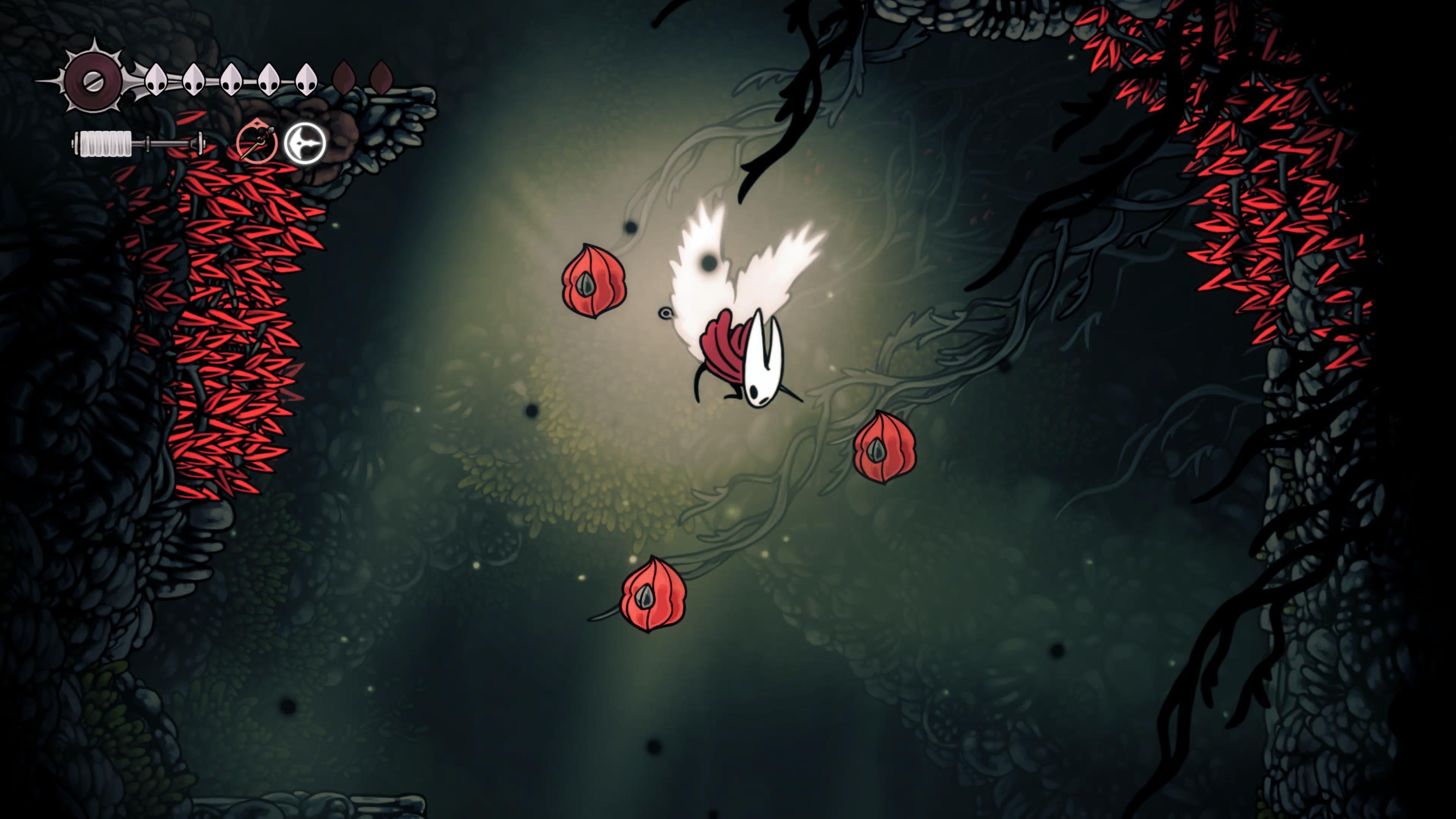 Alors, il y a bien le fameux « pogo », la technique consistant à attaquer vers le bas pendant un saut pour rebondir sur ses ennemis, qui demandera un certain temps d’adaptation, la trajectoire employée par Hornet pour cette technique étant inhabituelle, mais il s’agit surtout là d’un apprentissage qu’une réelle difficulté du jeu. Les mouvements de notre héroïne répondent même admirablement bien. La palette de mouvement, bien que suffisamment complète et complexe pour être intéressante, n’est pas particulièrement originale. C’est toutefois grâce à l’intelligence du level design qu’elle est mise en valeur et transforme une aventure en apparence classique en une expérience bien plus puissante, mais nous y reviendrons.