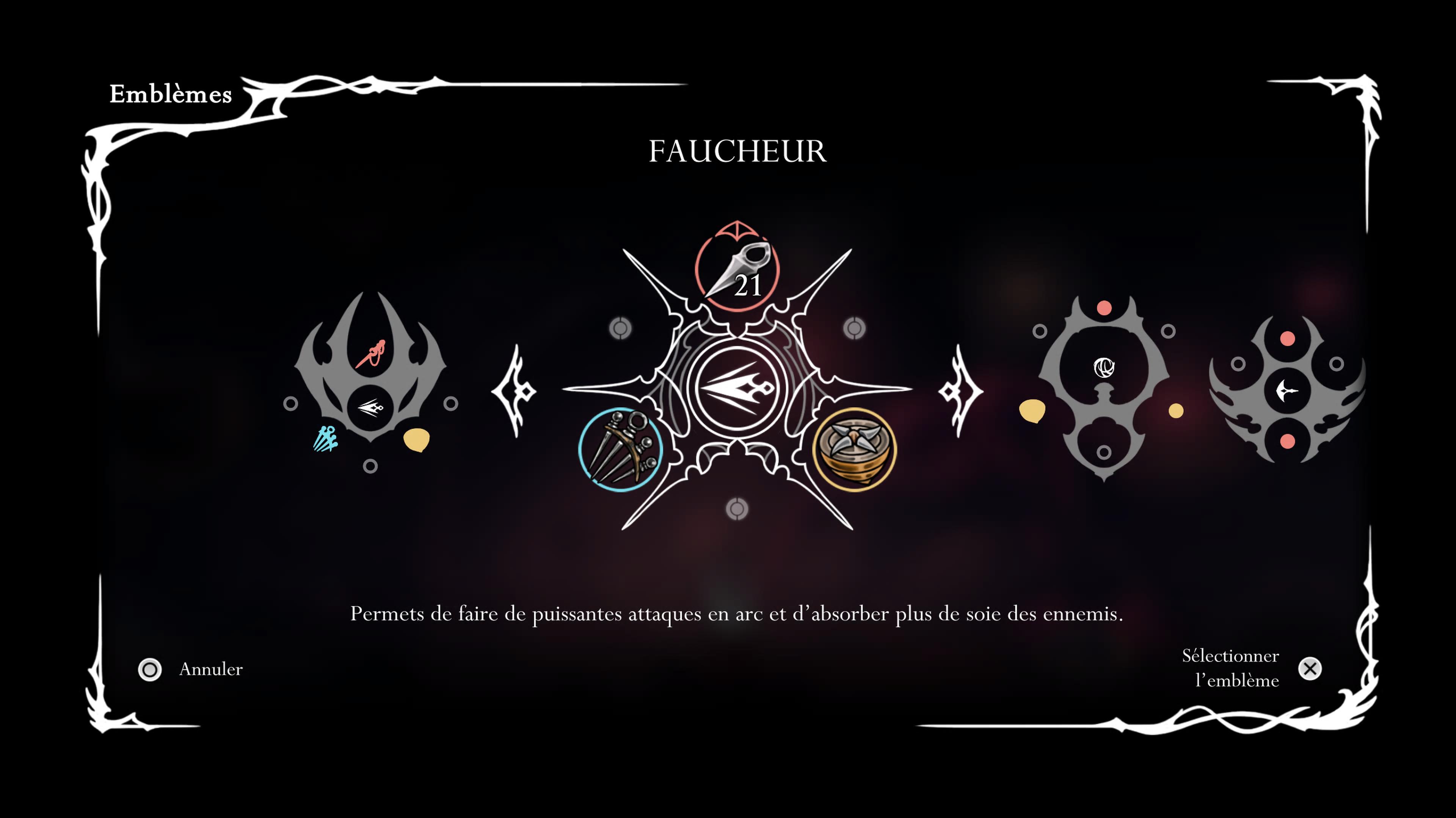 Toujours est-il que, sur le premier tiers du jeu du moins, il faut prendre le temps de (ré)apprendre le jeu et de se plier à ses règles sous peine de se prendre de sévères déculottées. Pour autant, au fil de notre avancée et de l’acquisition d’améliorations, d’emblèmes (l’équivalent des charmes) et de notre propre apprentissage, la difficulté s’est sensiblement réduite. On a continué de mourir, évidemment, le concept d’essai – erreur étant central à l’expérience et la cruauté de certains passages étant évidente, mais le jeu ne nous laisse jamais complètement démuni face à ces situations.
