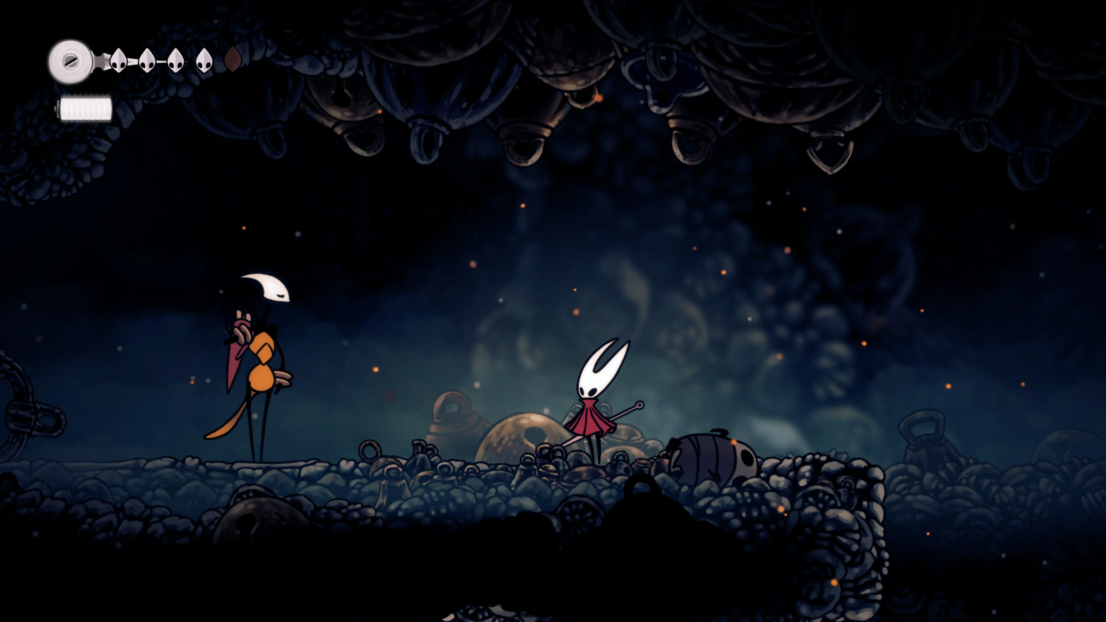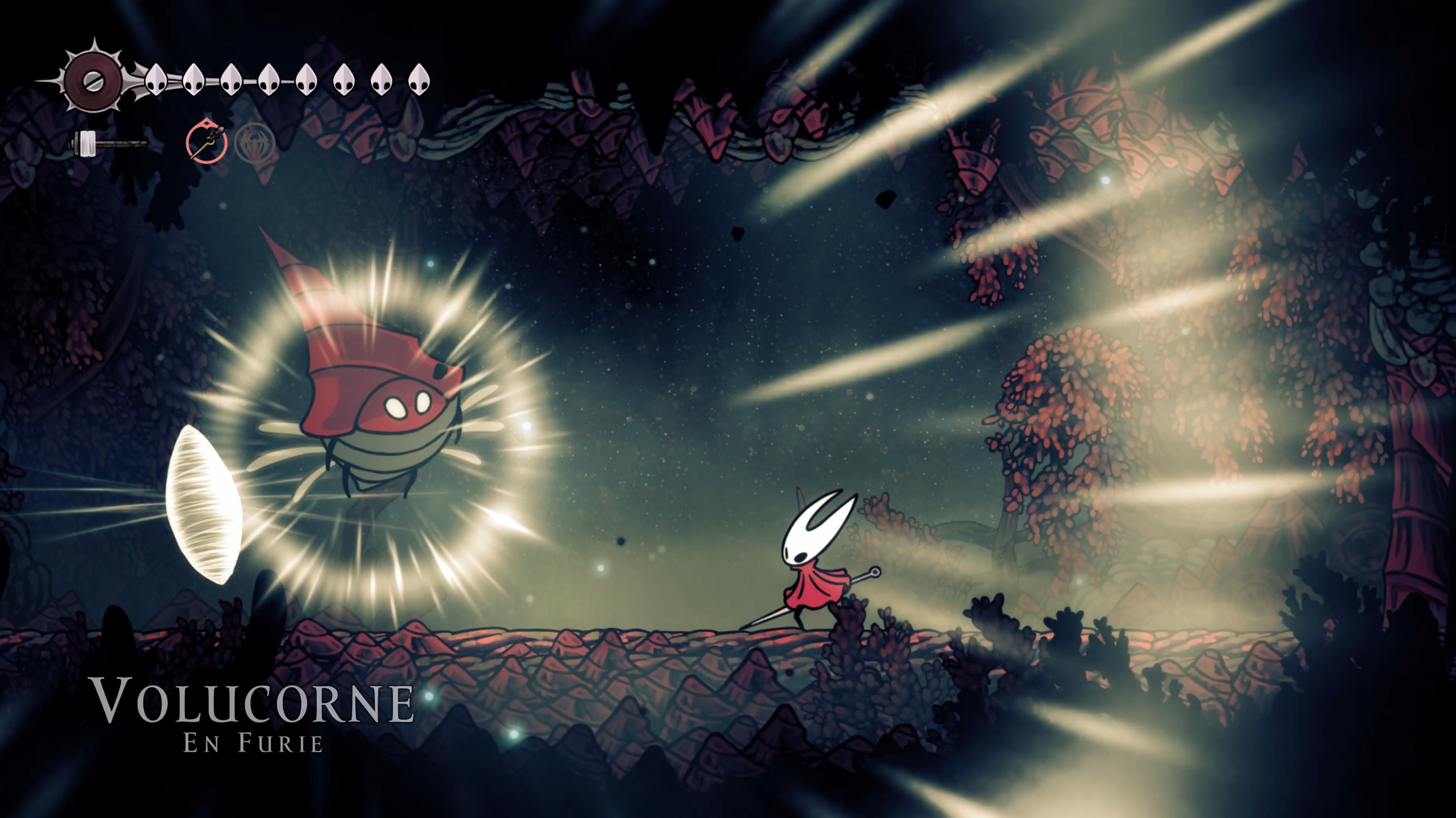 Le véritable challenge viendrait-il alors des boss ? Étonnamment, même pas. Alors évidemment, on s’est pris quelques roustes (quoi de plus normal ?), mais même les plus forts en apparence s’apprennent curieusement très rapidement. La force de la lisibilité, probablement, et de leur côté mécanique particulièrement bien huilée qui rend leurs musiques aisément audibles à qui veut bien les écouter. Et quelles musiques ! C’est un ballet que nous avons adoré danser, et chaque nouvel adversaire dispose de sa propre mélodie. Huit ans après, certains boss d’Hollow Knight nous reviennent encore à l’esprit (dont Hornet d’ailleurs) et certains de Silksong parviennent à se hisser à leur hauteur (Lace par exemple, quel affrontement !)