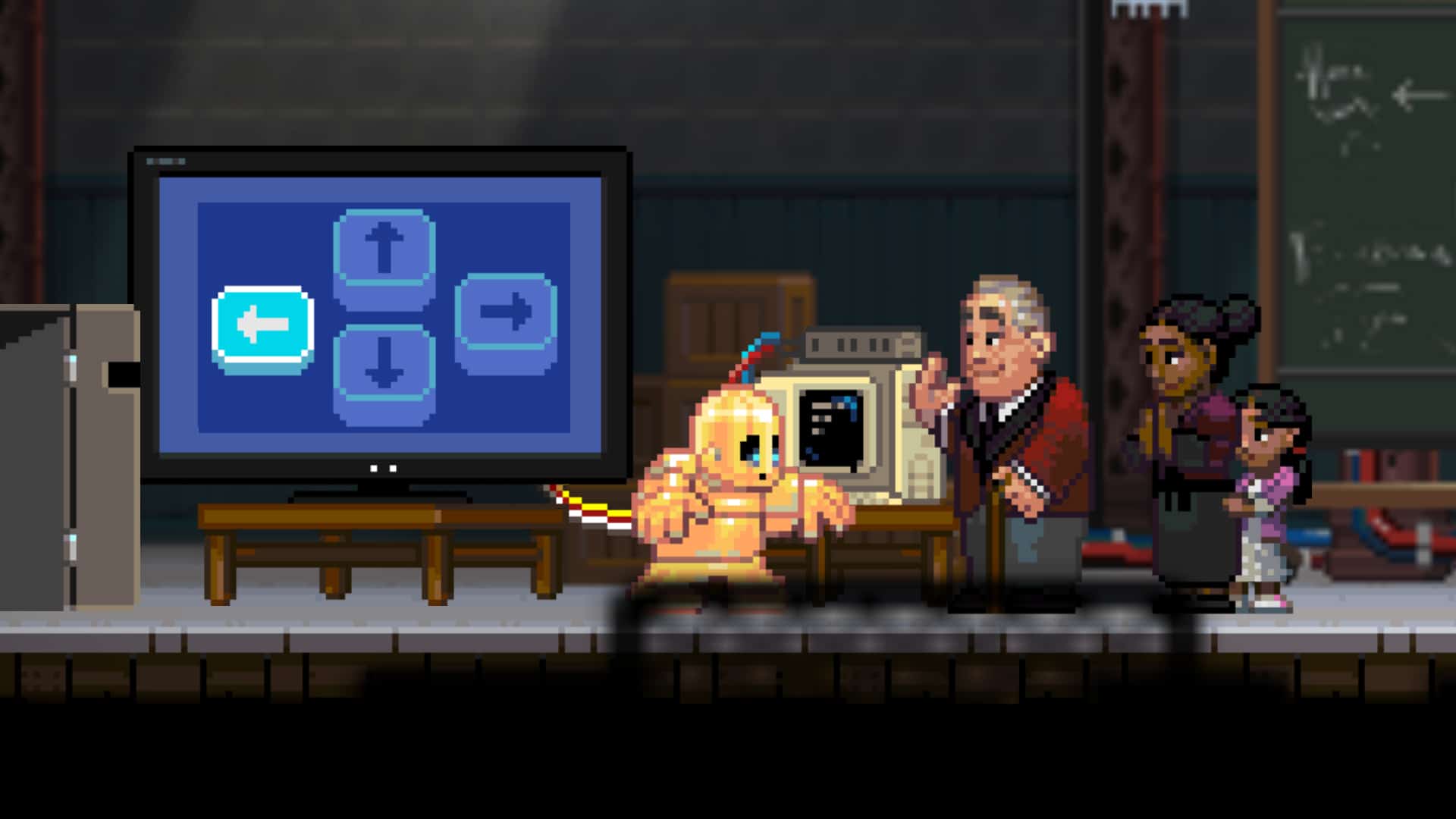 Mieux vaut qu’on garde le détail des événements pour nous, et vous laisser le plaisir de la découverte. La composante narrative est en effet essentielle dans Horace. Le jeu s’arrête régulièrement pour laisser la place à des cinématiques nécessaires au déroulement du scénario. Les twists seront nombreux, et permettront d’aborder de multiples sujets autour de la vie de ce petit bonhomme artificiel : la famille, le racisme, la confiance (et la trahison), et même le sens de la vie !