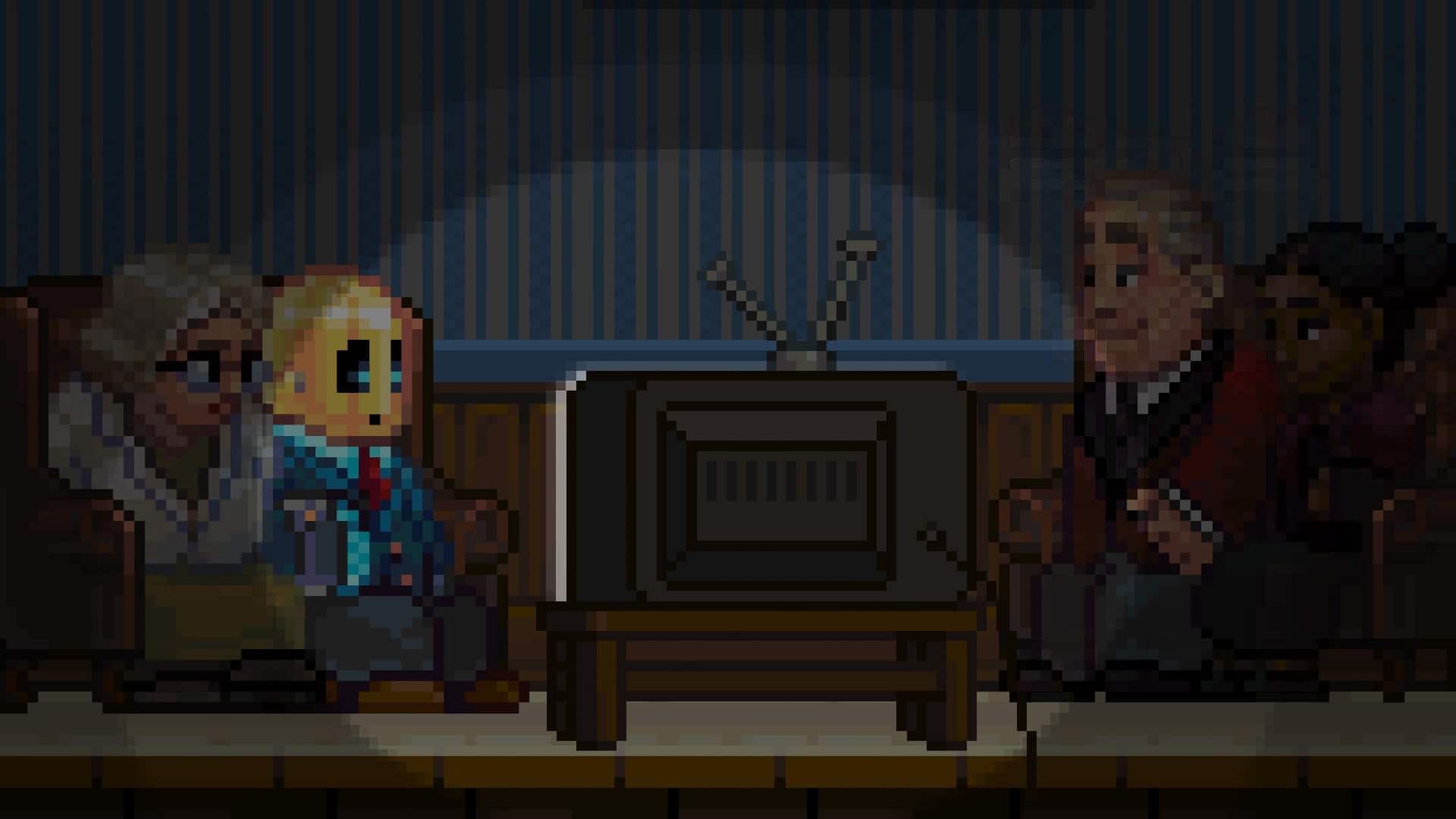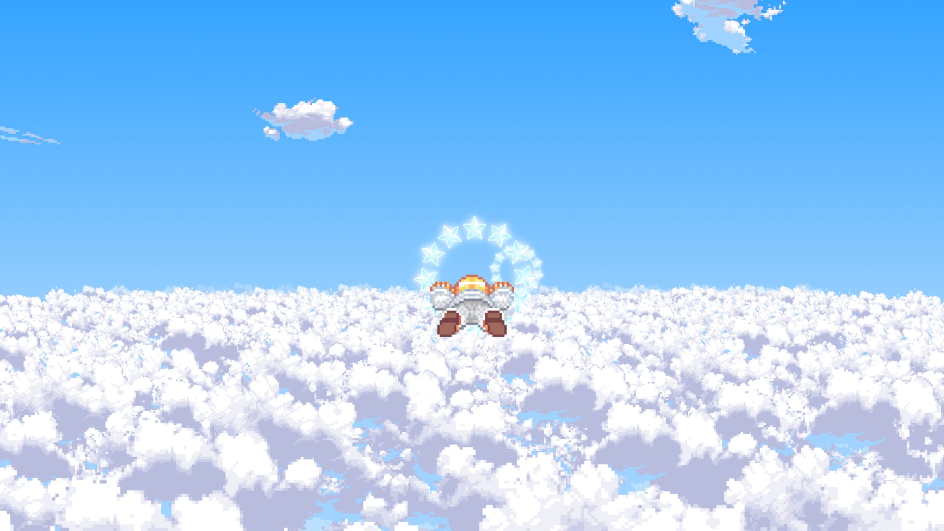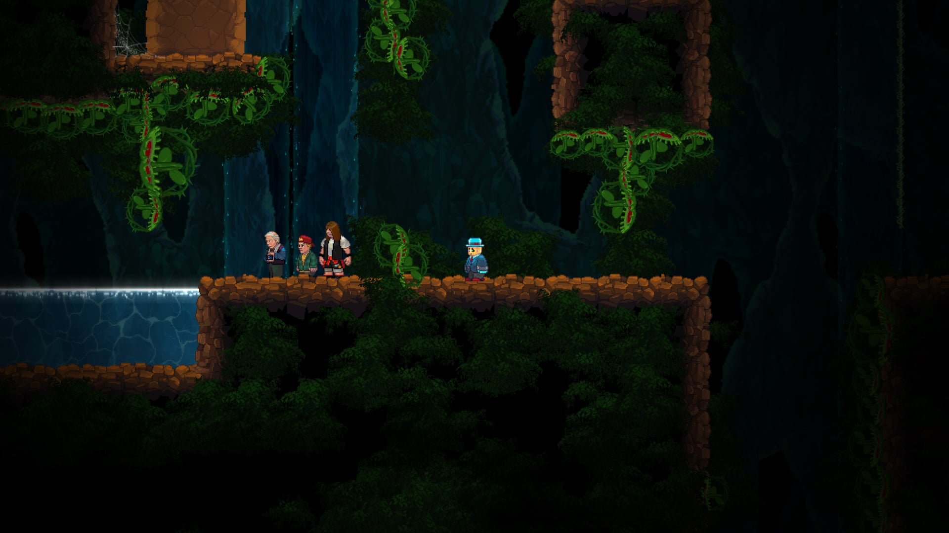 Parce que tout cela, c’est très bien, mais le jeu, à quoi ressemble-t-il ? Il s’agit d’un retro-platformer d’abord assez classique, dans la tradition 8 et 16 bits du genre. Le titre va en premier lieu se montrer original dans sa réalisation et son utilisation particulière du pixel, et dans sa narration. De longues cinématiques, faisant le même usage des pixels, viennent en effet rythmer l’aventure, ce dont on n’a pas l’habitude dans ce genre de titre. Il faut noter que le jeu est entièrement doublé. C’est Horace qui nous raconte son voyage, ce qui est plutôt agréable.