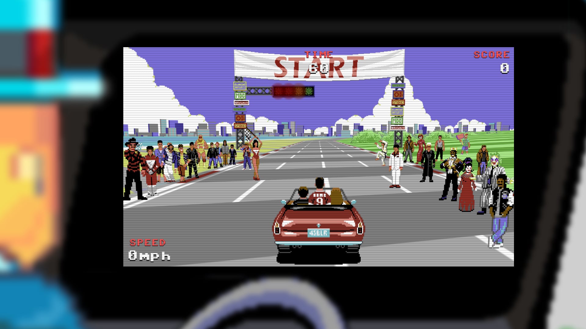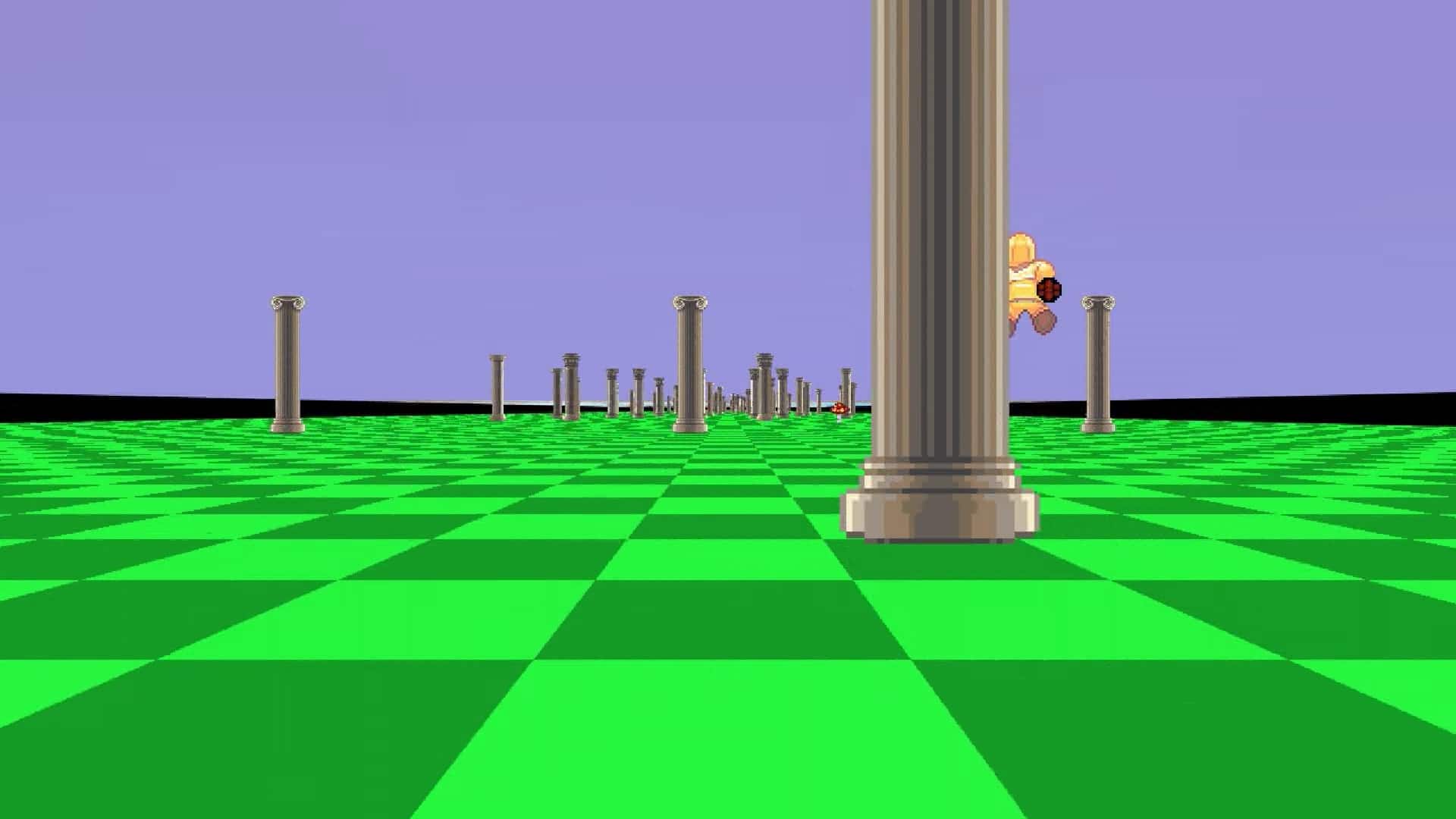 Enfin, et surtout, le jeu comportera d’innombrables clins d’œil à l’histoire des jeux vidéo. On a vu les références au préhistorique Horace, mais le titre reviendra sur les premières heures du jeu vidéo, d’abord avec la console qui se trouve à la maison, au début de l’aventure, puis dans un niveau complètement dingue inspiré (encore !) d’Alice au Pays des Merveilles qui aspirera le héro dans un jeu démoniaque. SEGA est très souvent cité. Si un écran de démarrage pastiche celui de Sonic, on apercevra aussi Space Harrier, on jouera à un clone d’Out Run puis à un autre de d’After Burner, et quand Horace rêve, ses rêves ressemblent beaucoup à Nights into Dreams, le jeu culte sorti à l’origine sur Saturn… Et tout cela n’est qu’une petite partie des choses qu’il y a à découvrir dans Horace. Un véritable jeu d’objets cachés au sein du jeu principal !