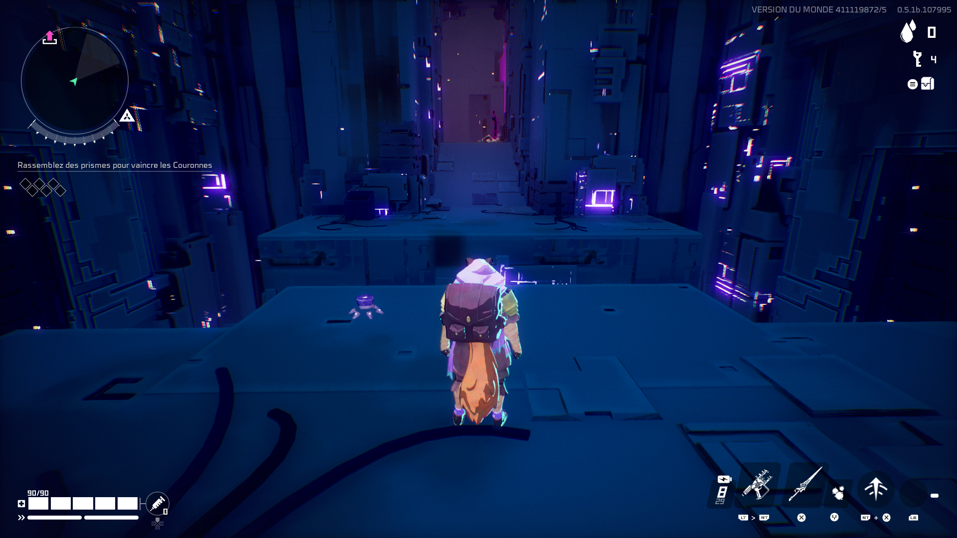 Hyper Light Breaker est maladroitement cryptique sur son univers, le jeu est très avare de tutoriel et d’explication. Les quelques éléments de lore disséminés ici et là ne rendent pas le tout cohérent voire même intéressant. Le titre ne vous prendra jamais par la main pour vous expliquer certaines mécaniques que vous devrez apprendre par vous-mêmes. Parfois justifiable par son statut d’early access, le jeu, par exemple, ne vous expliquera jamais comment obtenir un kit de soin ou bien comment obtenir certaines ressources, de quoi s’arracher les cheveux.