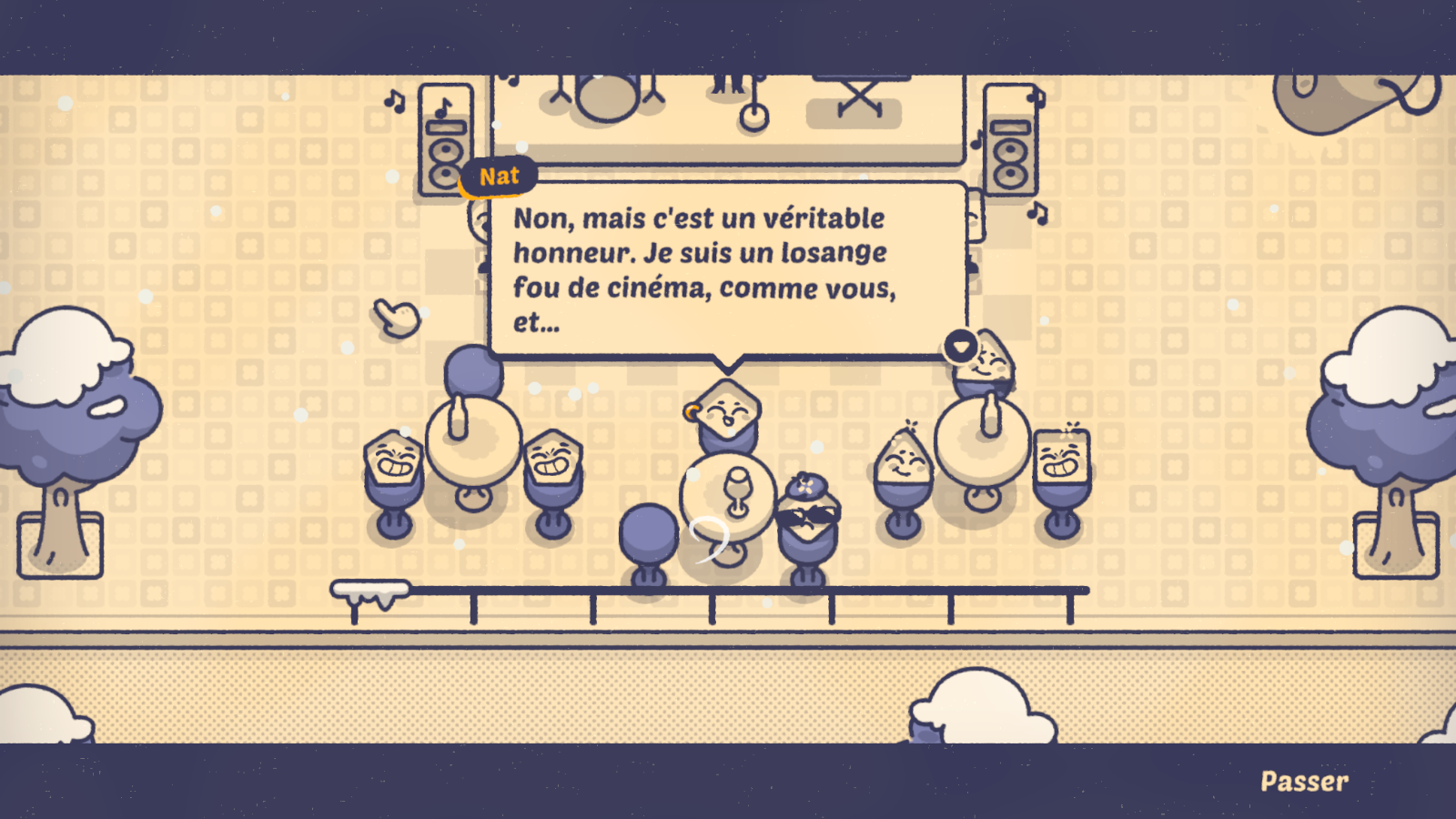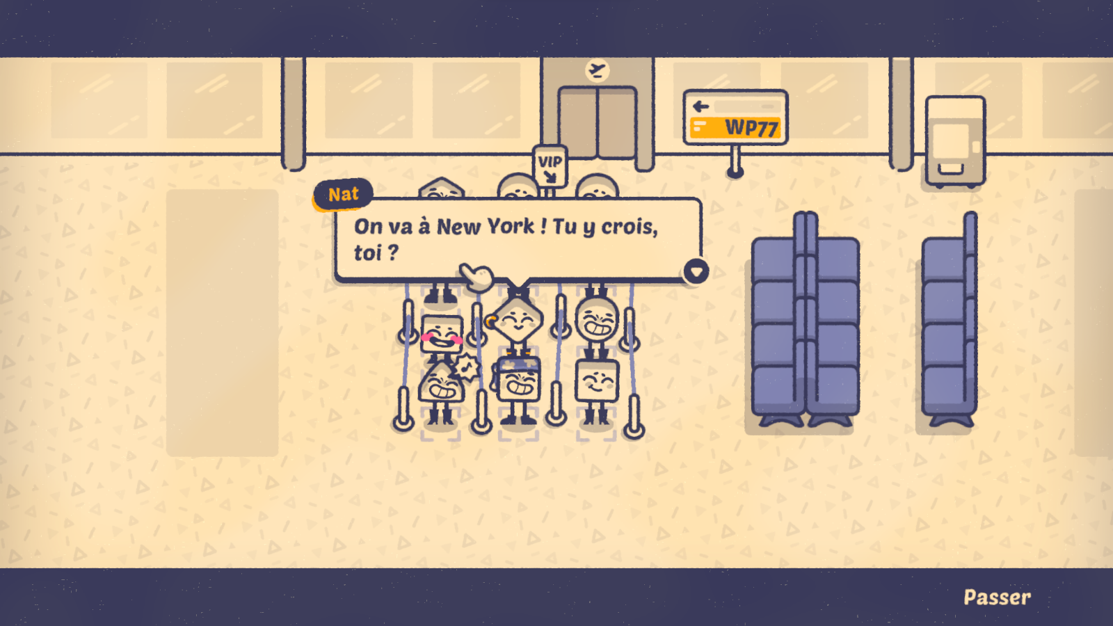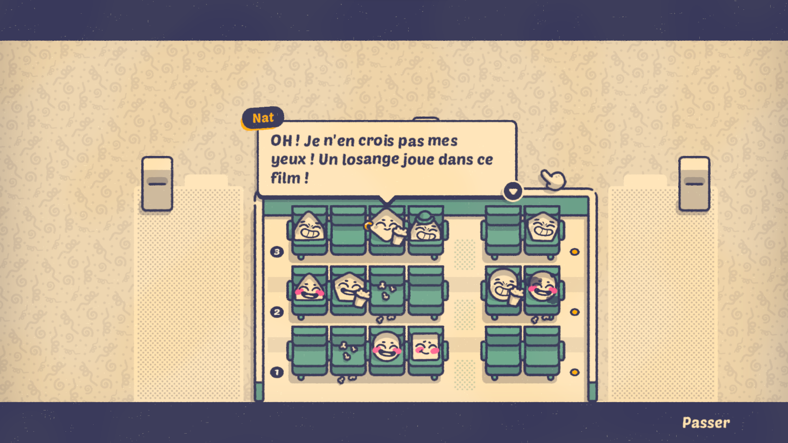 Barcelone, c’est aussi l’occasion de découvrir Nat. Ce petit bout de losange sera le personnage récurrent d’une aventure qui l’amènera notamment à Paris, Londres ou encore New York. Avec un objectif en tête : devenir une star du cinéma. Mais pour y parvenir, il va falloir être capable de combler chacun des personnages. Une seule personne malheureuse au fond du train, et tout est à recommencer. Lorsqu’il n’y a que quatre ou cinq personnes à placer, ça va encore. Mais lorsqu’on arrive sur des niveaux avec une quinzaine de personnes à ravir, dont certaines sont particulièrement difficiles (jusqu’à trois volontés plus ou moins raisonnables en simultané), le challenge s’avérera plus corsé.