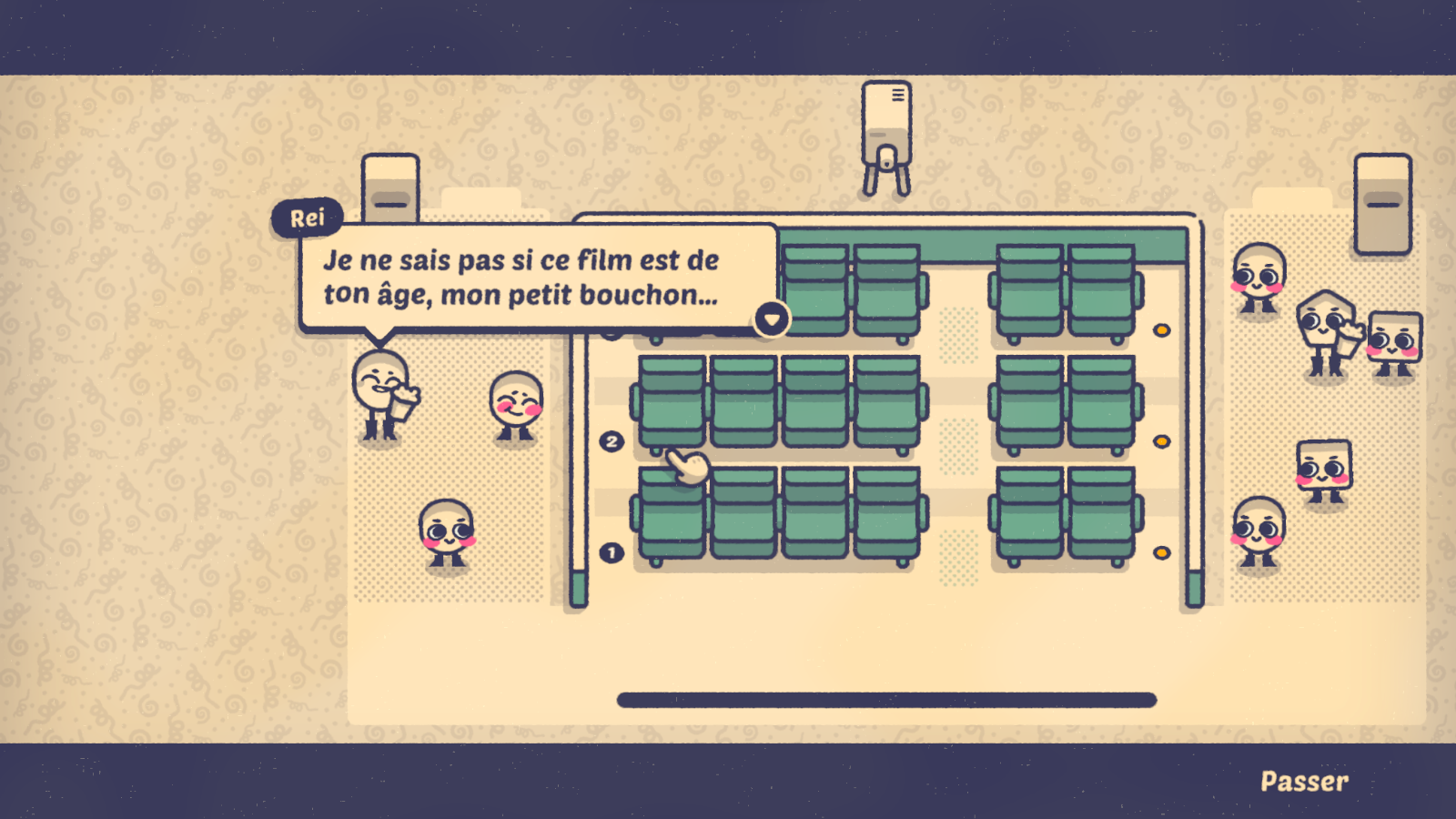 Passés les premiers niveaux, on découvre rapidement de nouveaux lieux, et avec eux, de nouvelles lubies. Au cinéma, il faudra composer avec les mangeurs de pop-corn ou ceux qui regardent leur téléphone pendant le film et au stade, avec les supporters des équipes adverses qui ne souhaitent pas s’asseoir trop proches sous peine de se taper dessus. En classe, pour la bonne tenue du cours, il faudra séparer les élèves trop portés sur les bavardages ou isoler ceux qui auraient la triche un peu trop facile. Et ce ne sont là que quelques exemples parmi les nombreux portraits dépeints par le titre.