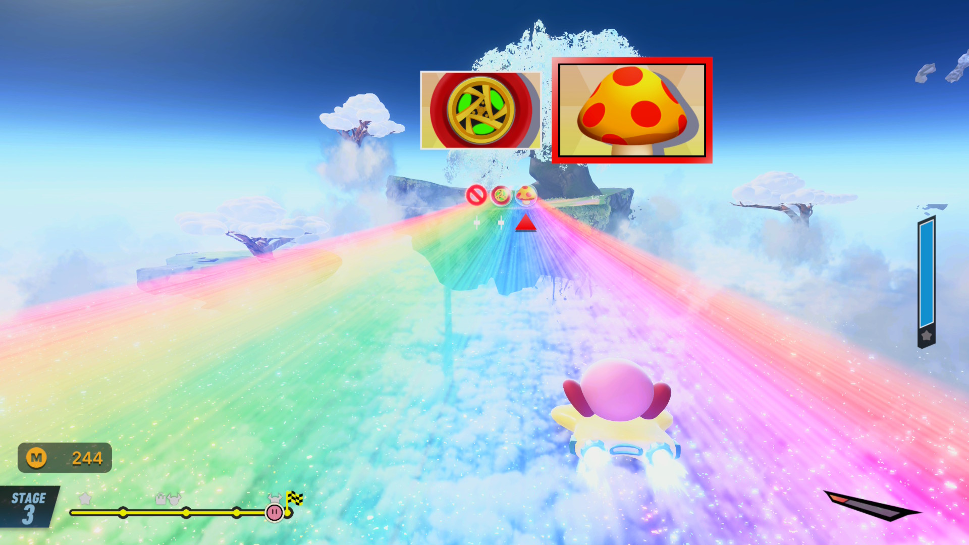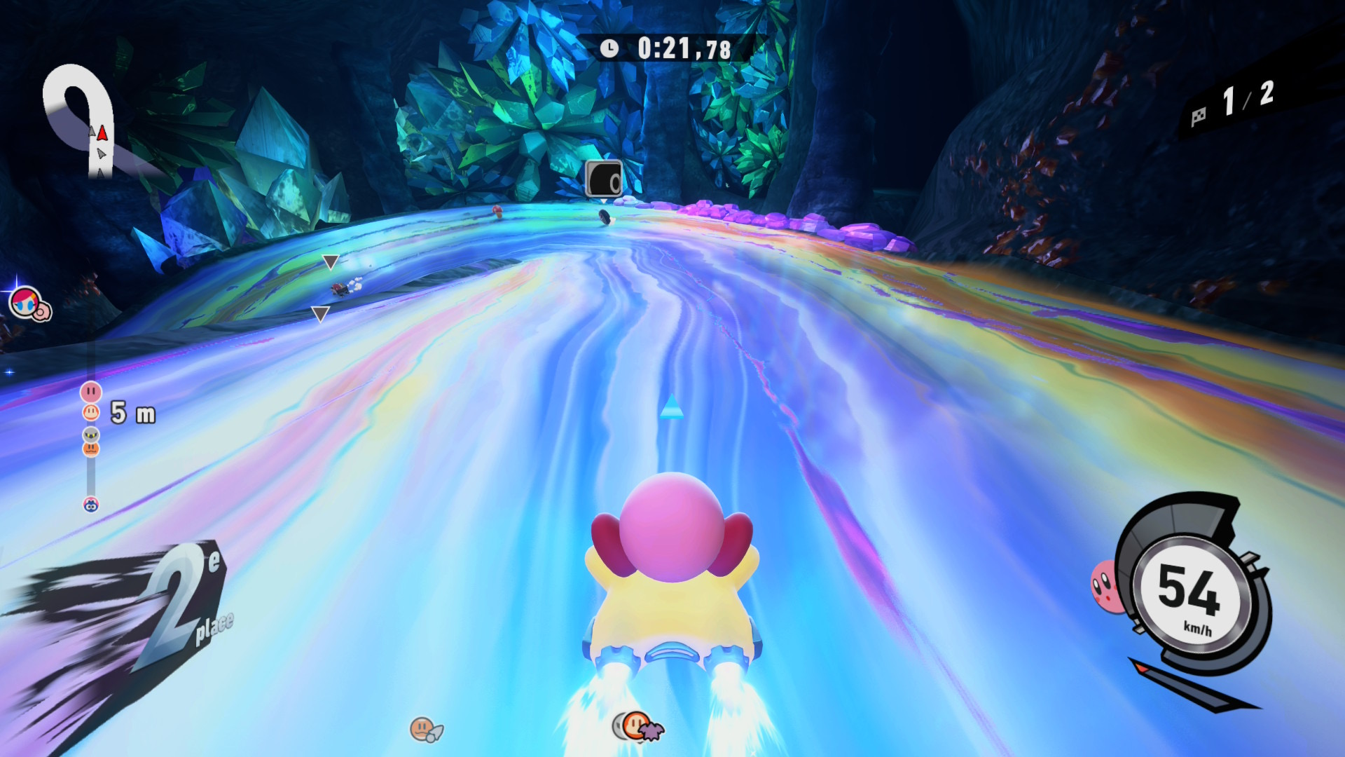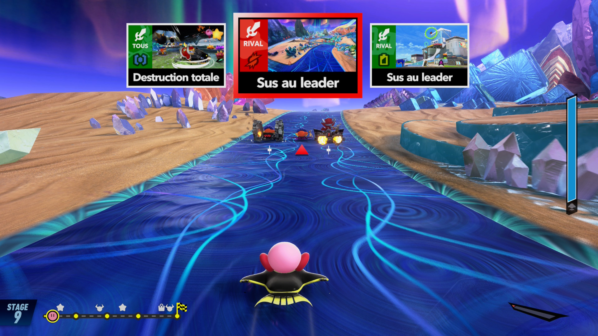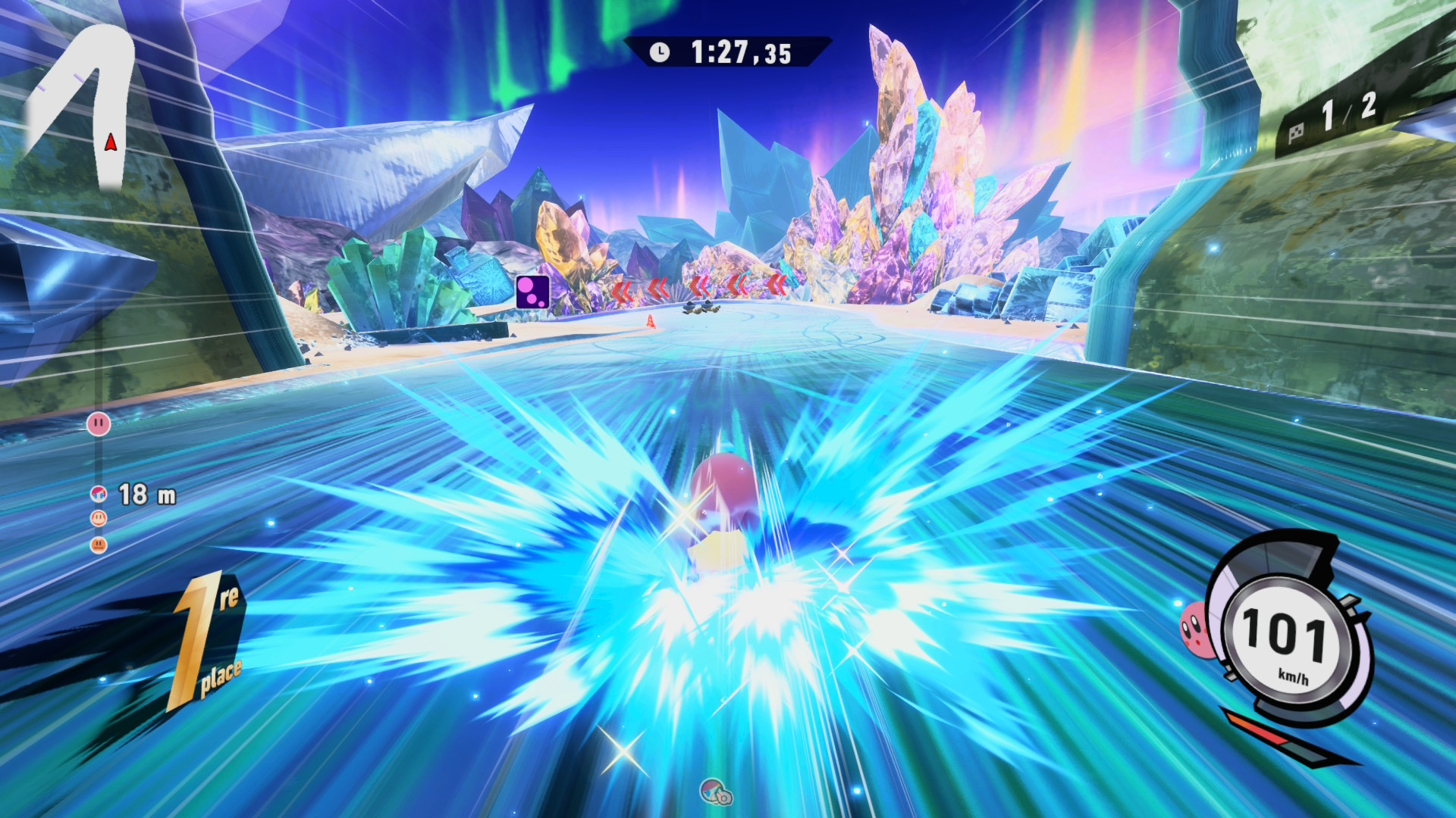 Dès le tutoriel, les mécaniques deviennent limpides. Mais encore faut-il réussir à appliquer ces connaissances en course, ce qui est une autre paire de manches. Kirby Air Riders sera forcément comparé à Mario Kart World. Pourtant le jeu se démarque vite par son aspect « action frénétique », qui demande bien plus que de simplement parcourir un terrain pour arriver premier.