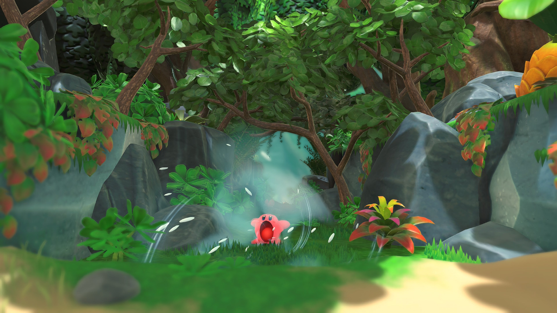 Une absence de difficulté qui n’est pas à considérer comme un défaut : Kirby et le Monde Oublié, c’est ce jeu de plateforme réconfortant, dans lequel on se promène sans stresser. D’ailleurs, la majorité des niveaux n’est pas chronométrée, et Kirby ne possède même pas de touche pour courir !