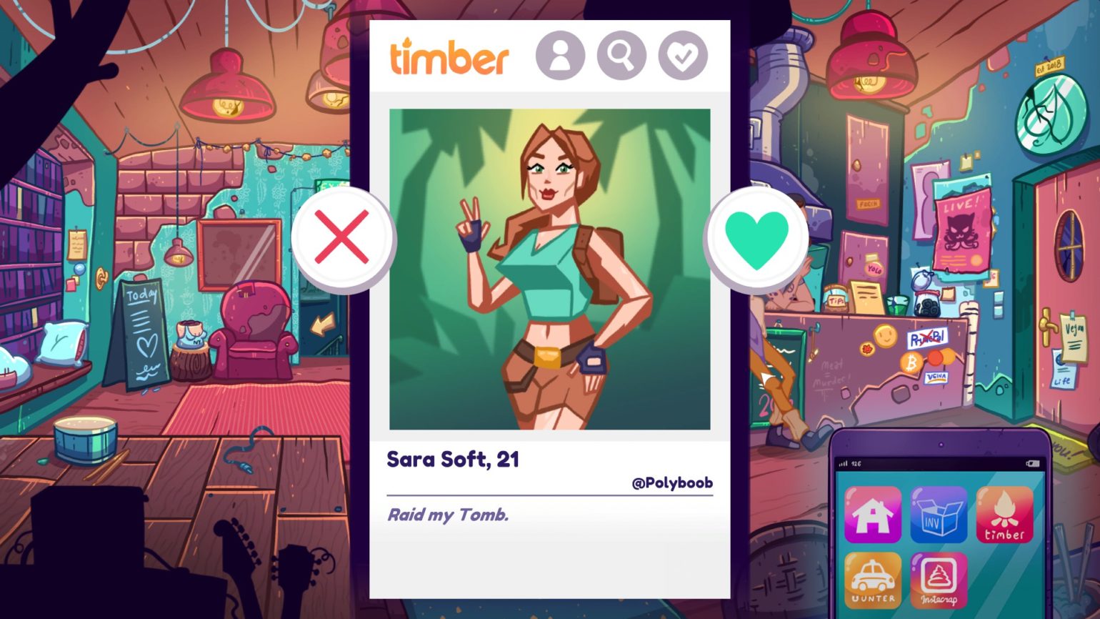 Pour arriver à ses fins, Larry va devoir user de technologies qu’il ne comprend pas et se doter d’un smartphone pour obtenir un score de 90 points sur Timber, l’équivalent de Tinder en jeu. Il va alors devoir résoudre les problèmes des diverses personnes avec qui il va matcher pour que ces dernières lui donnent le score maximal.