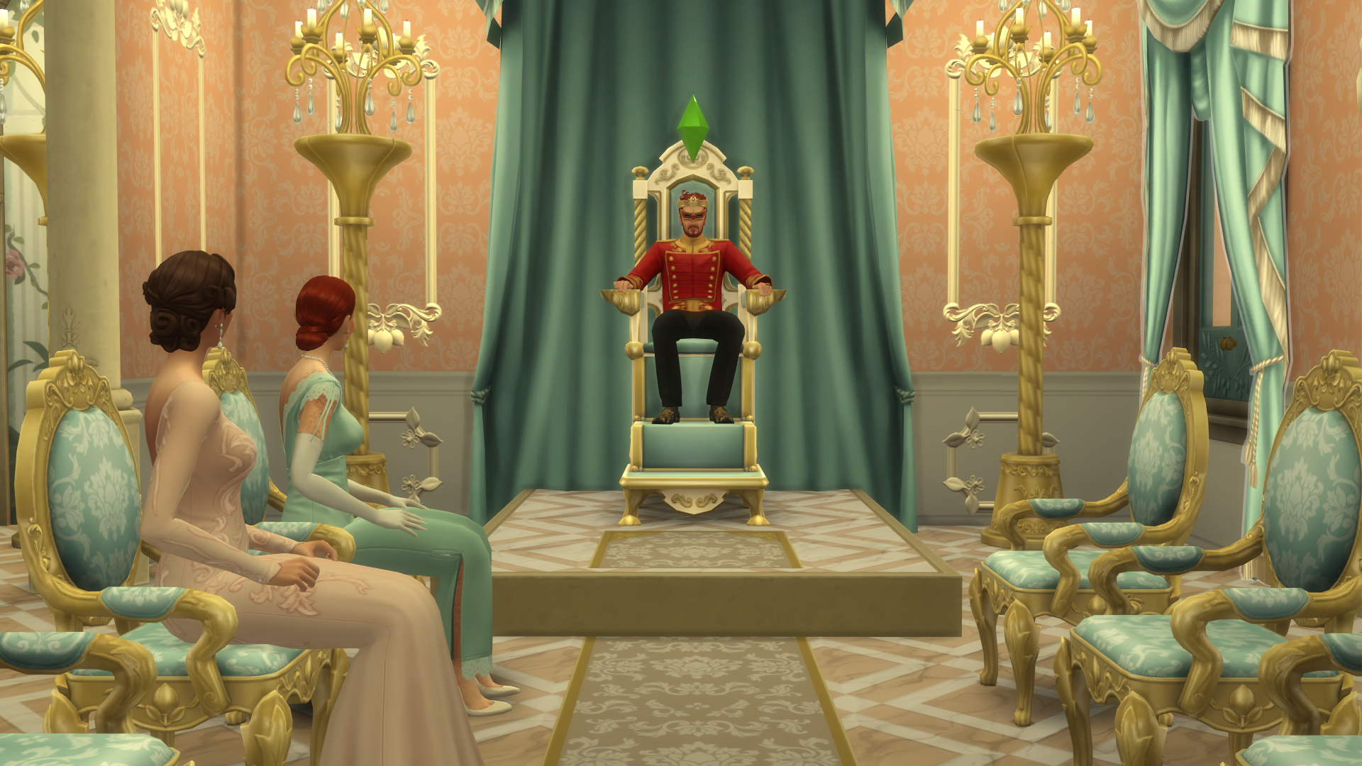 Pour les fans des modes Créer un Sim et Construction, Héritage et Royauté propose des catalogues parfaitement cohérents avec le thème du pack. Robes de princesses, couronnes (malheureusement mal ajustées aux coiffures des personnages…), masques de bal (qui flottent devant le visage des Sims…) et meubles ultra luxueux sont au programme. On retrouve également des items d’inspiration africaine, qui viennent combler un vrai manque dans les Sims 4.