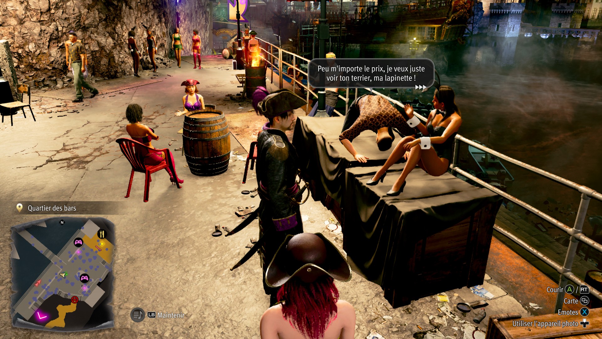 Car le jeu demande d’alterner entre les phases à Honolulu, sur la carte du Like a Dragon précédent, et l’exploration des océans à la recherche de trésors de pirates. Sur les mers, dans des environnements restreints et un peu dépouillés graphiquement, on affronte des navires ennemis à coupe de canons. Ces derniers sont bien entendu sur les côtés du bateau, et nous obligent à composer avec l’inertie de la navigation en mer pour se positionner correctement afin de tirer, et pour échapper aux assauts des adversaires. Une mécanique de jeu pas très profonde, mais pas désagréable à jouer, et qui apporte un peu de nouveautés à un titre tout de même placé sous le signe du recyclage.