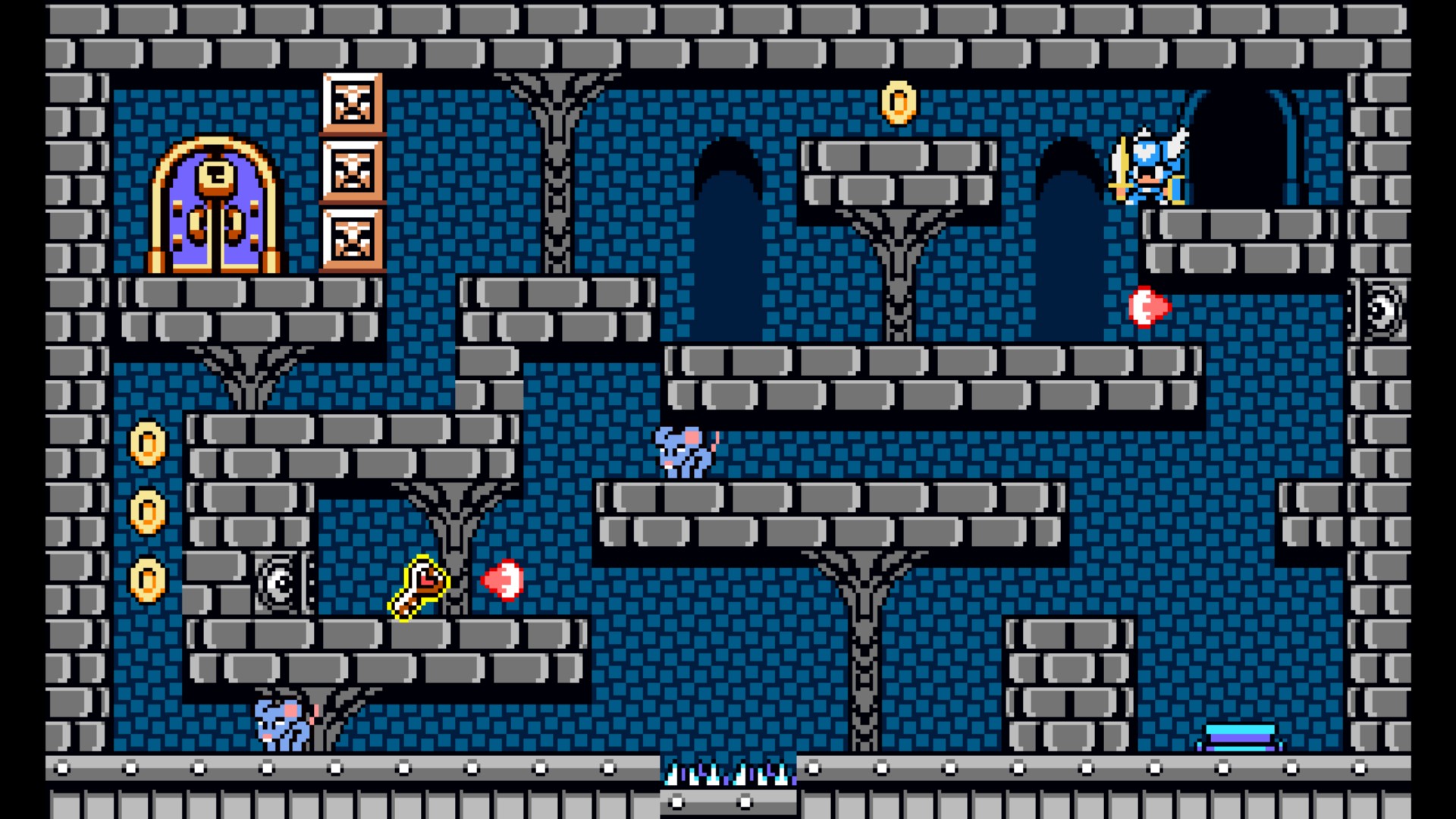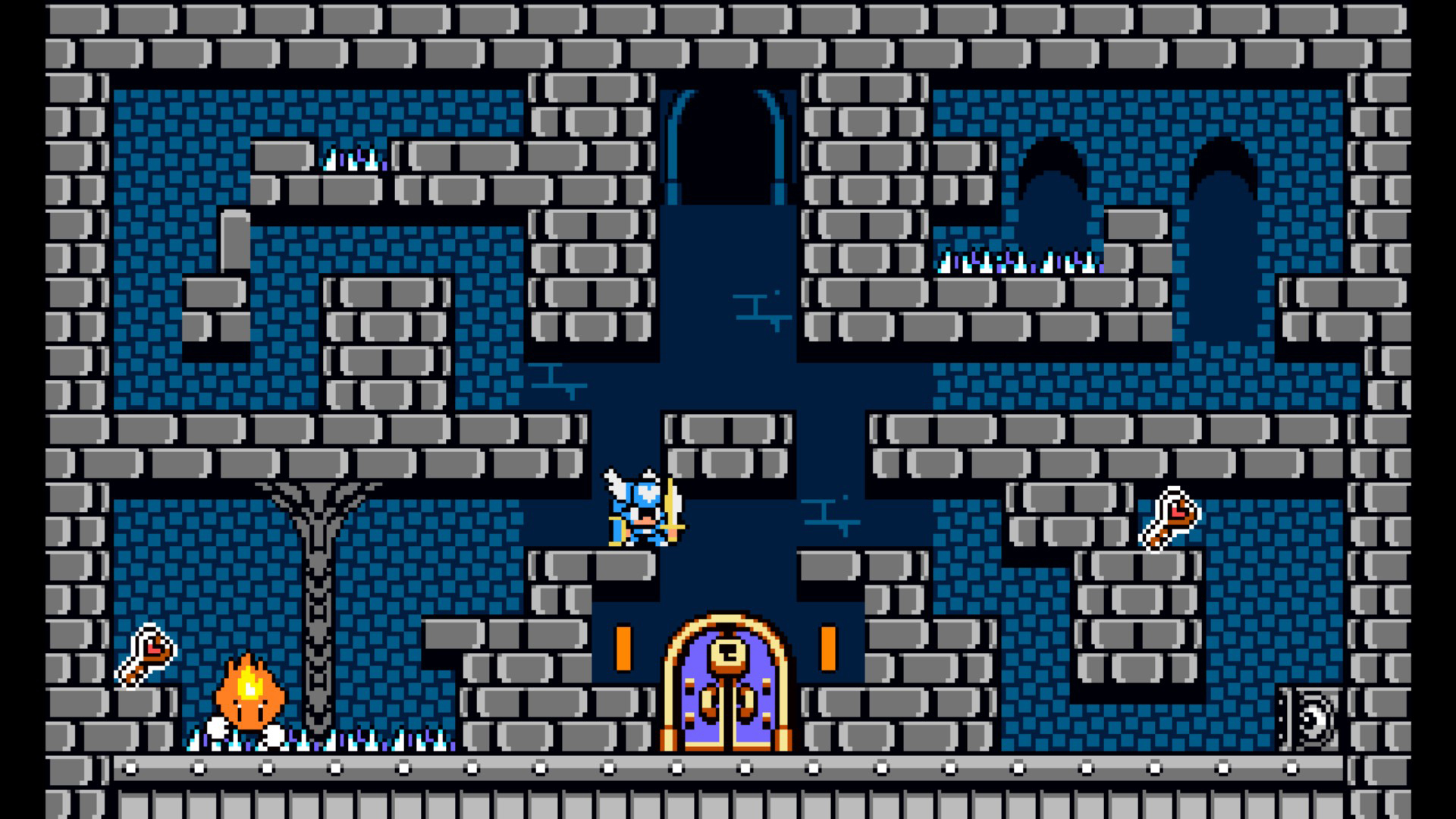 Le principe est simple : une porte d’entrée, une porte de sortie, et il faut aller de l’une, à l’autre, sans tomber dans les pièges de pics hérissés ou entrer en contact avec les ennemis. Au fur et à mesure des progrès dans l’aventure, le gameplay se corsera et se diversifiera en ajoutant des éléments : des boutons à actionner, des clés à récupérer pour ouvrir la sortie…
