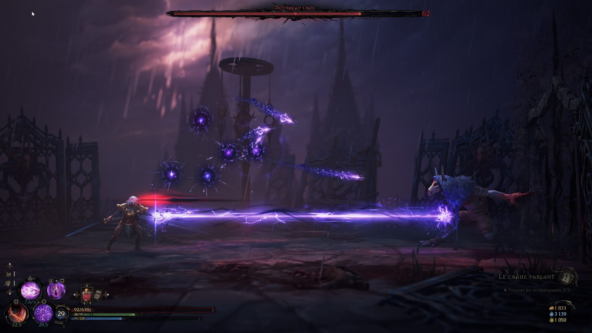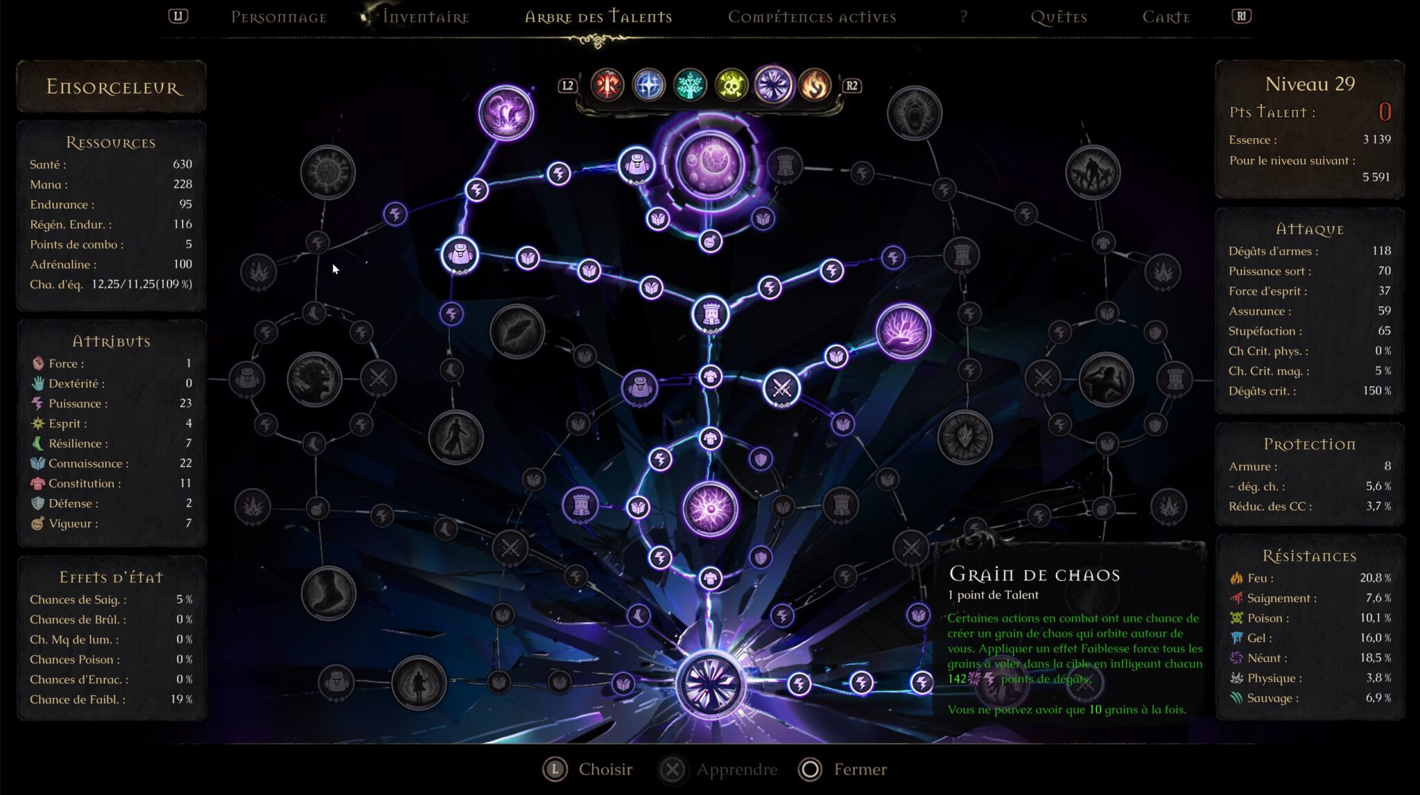 Ce sentiment est accentué par le système de talents, qui vous enferme dans un rôle spécifique pendant les 25 premiers niveaux. Cette approche, certainement pensée pour éviter que le joueur ne se perde dans trop de possibilités, peut créer une frustration : vous êtes limité à la magie de votre catalyseur, ce qui signifie que vous ne pourrez utiliser qu’un seul type de magie pendant un moment, malgré le fait que vous ramassiez d’autres catalyseurs au fur et à mesure de votre progression. Un choix qui, tout en offrant une certaine cohérence, peut aussi nuire à la diversité des options dès le départ.
