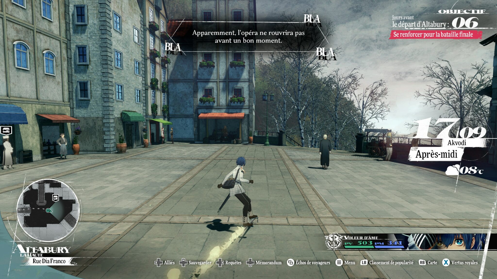 Le petit nouveau d’Atlus profite tout de même de beaucoup d’options d’ergonomie notables par rapport à la concurrence et qui rendent l’expérience de jeu tout de même agréable : la possibilité de se téléporter facilement entre plusieurs quartiers et villes, ou encore de pourfendre les ennemis d’un seul coup sans rentrer en combat s’ils sont trop bas niveau. Vous pourrez aussi, à n’importe quel moment, savoir si un allié désire vous parler ou encore quelles sont les quêtes disponibles dans le monde. Bon, au moins, Metaphor: ReFantazio profite d’un cadre nouveau et rafraîchissant par rapport à ses aînés, hein ? Pas vrai ?