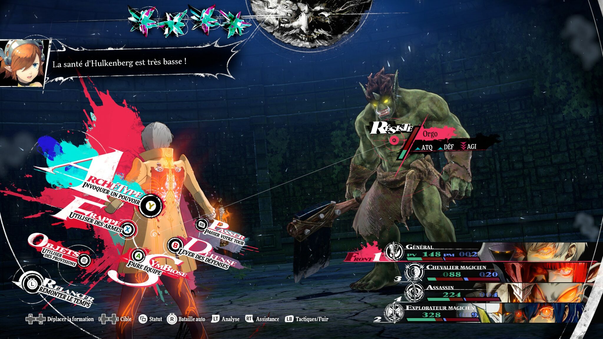 S’il y a bien une chose que l’on ne peut reprocher à Metaphor: ReFantazio, c’est son système de combat au tour par tour. On reprend la base déjà existante de la licence Megaten, c’est-à-dire son système de faiblesses élémentaires qui donne une action supplémentaire au joueur s’il attaque dans le bon élément, rendant les combats fluides et satisfaisants.