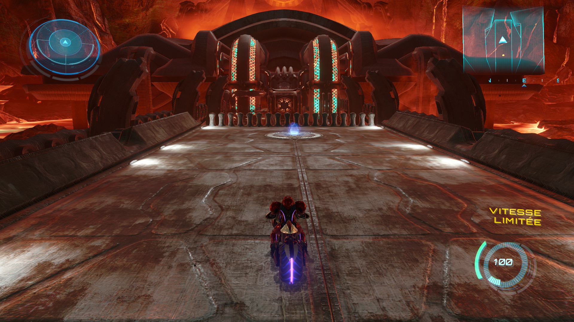 Avec ses donjons de qualité et son aventure dynamique, Metroid Prime 4 est un modèle de rythme… jusqu’à ce qu’il décide de mettre un coup d’arrêt brutal. Une fois les clés réunies, alors que le scénario s’emballe, le jeu tire le frein à main pour nous imposer une séquence de remplissage lunaire. Il faut alors parcourir le désert (encore lui !) pour trouver des pièces de mécha et briser des cristaux verts. Une séquence obligatoire, longue (30 à 60 minutes) et molle, rendue pénible par une moto dont la hitbox sur les cristaux est inutilement exigeante. Heureusement, le boss de fin vient sauver les meubles avec un affrontement intense, à condition de faire abstraction d’une première phase parasitée par la nécessité de ressusciter des PNJ alliés à l’IA suicidaire.