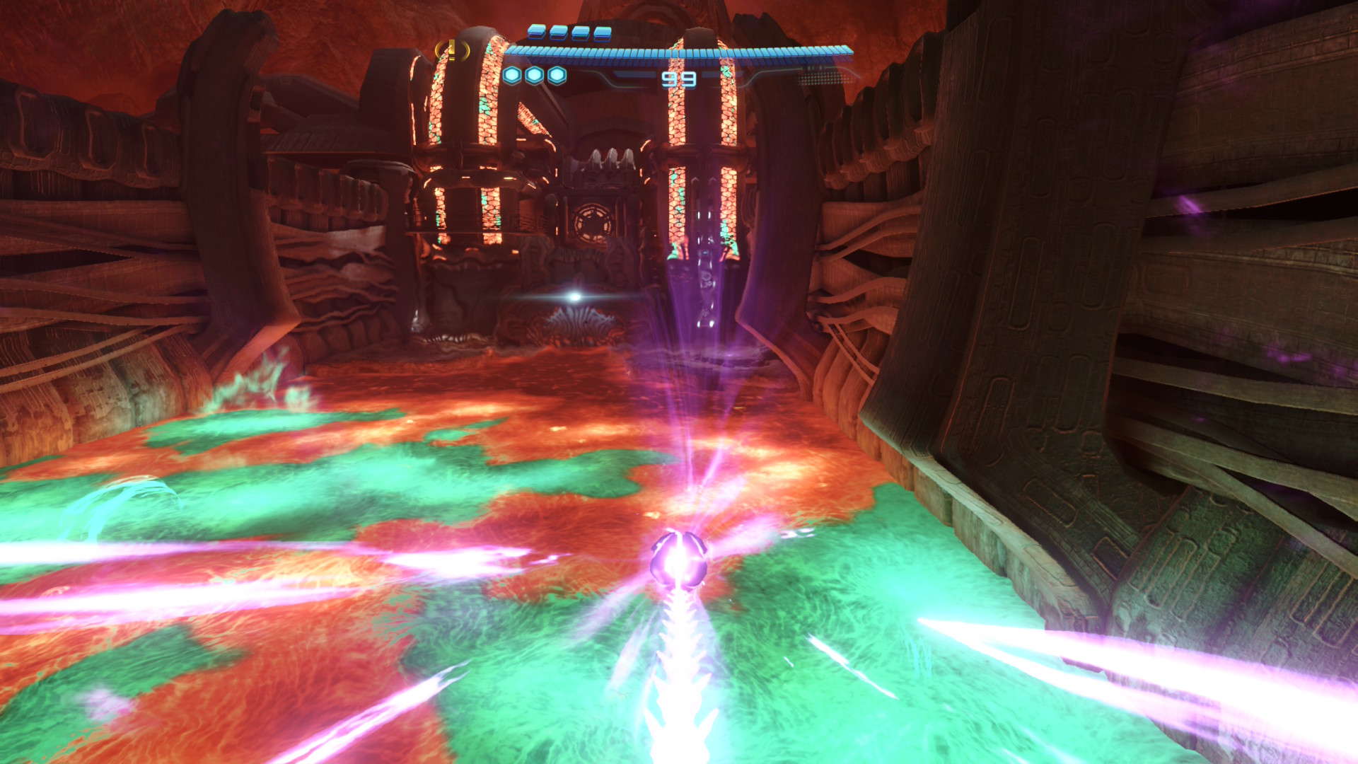 La structure du jeu repose sur cinq donjons distincts, contenant chacun une clé à récupérer, reliés par un hub central : Sol Valley. C’est ici que le bât blesse. Ce hub est un désert, au sens propre comme au figuré. Vide, artistiquement pauvre et dénué de musique (déblocable par amiibo…) et de cohérence avec le reste, il représente le pire du jeu. On s’y ennuie ferme, d’autant que, Metroid oblige, les allers-retours y sont nombreux au cours du périple.