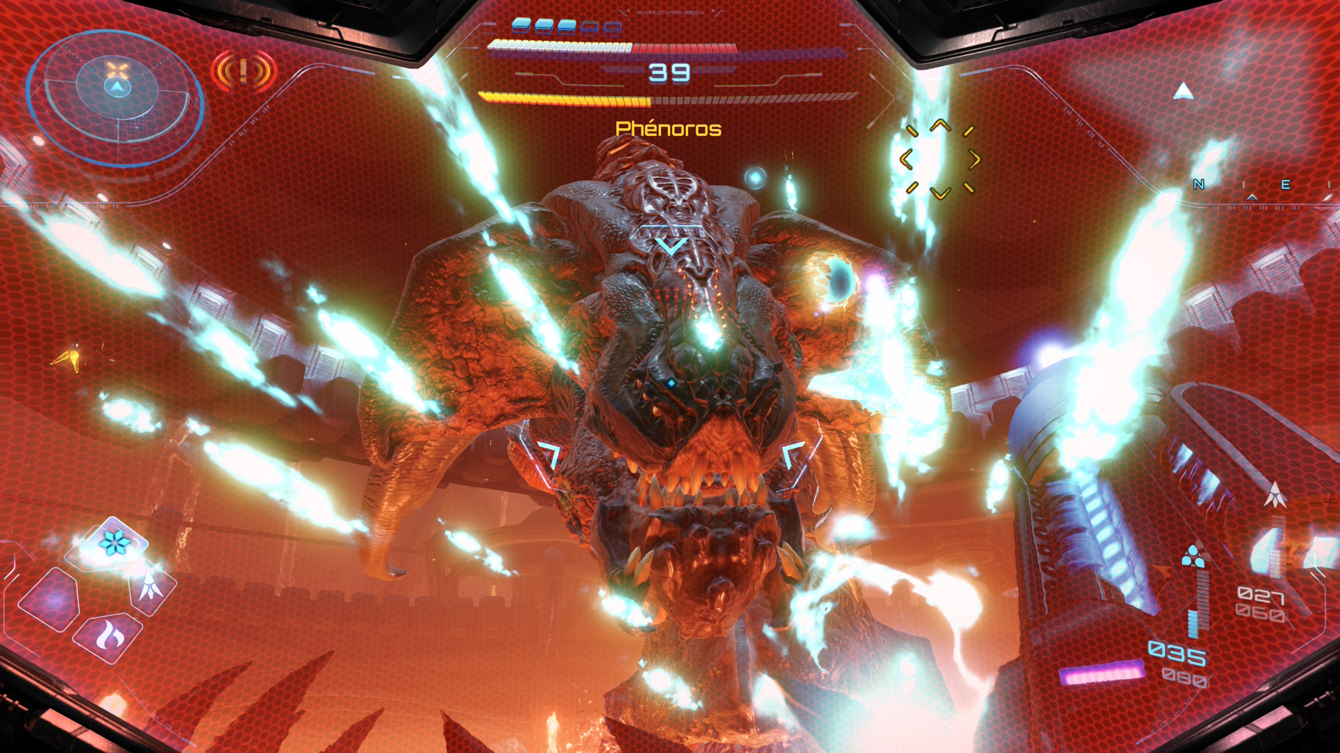 Côté action et réflexion, il n’y a pas grand-chose à reprocher à Metroid Prime 4. Les phases s’alternent bien, les puzzles utilisent la plupart des mécaniques de Samus et les munitions élémentaires ajoutent une touche stratégique bienvenue (quel plaisir de geler un ennemi trop véhément !). Mais la véritable réussite réside dans les combats de boss. Variés, intenses et toujours très qualitatifs, ils constituent systématiquement le point d’orgue des donjons. Contrairement au reste du bestiaire, chaque boss propose une mécanique unique qui vient brillamment valider la maîtrise du gameplay et l’apprentissage des patterns.