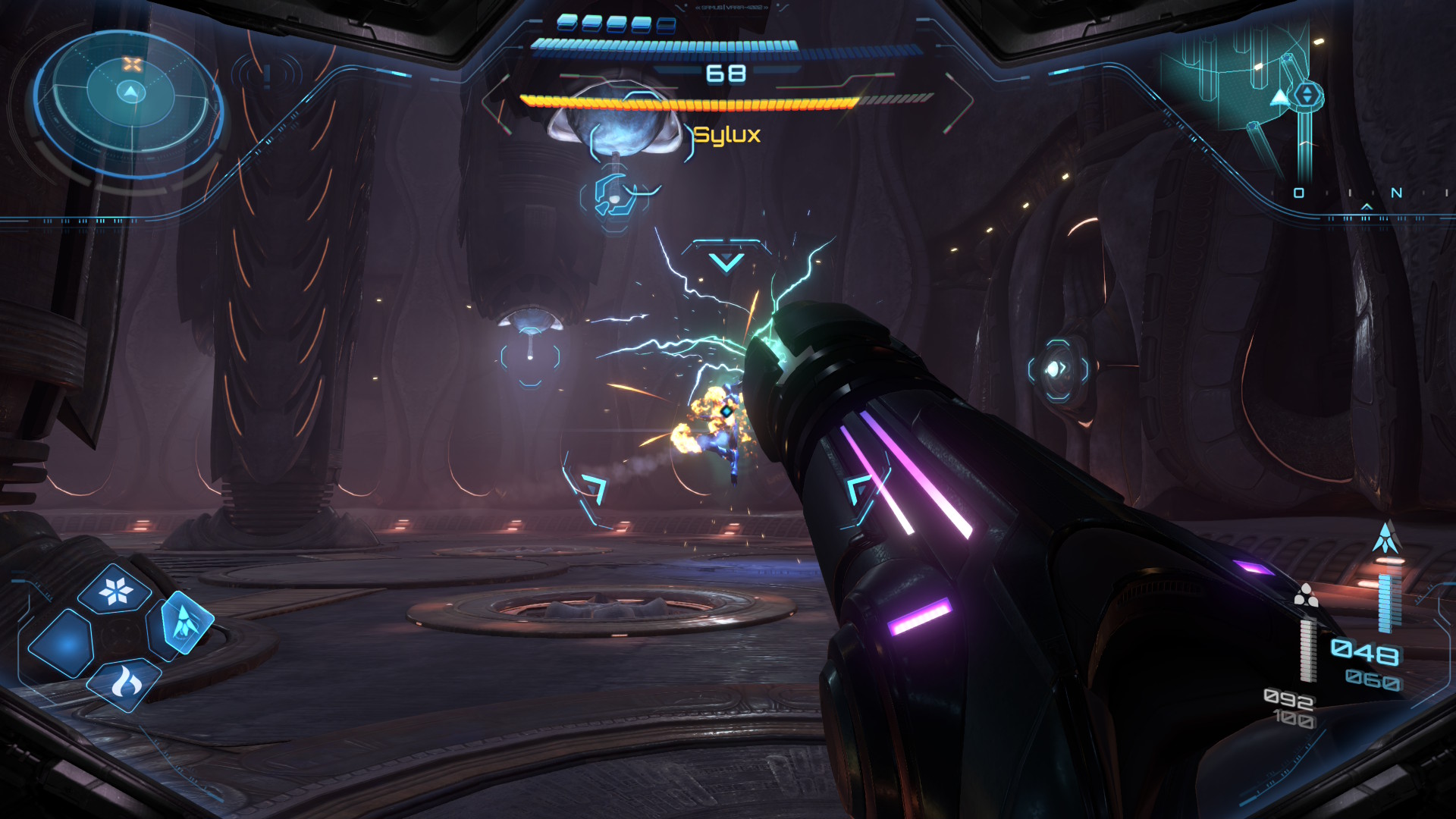 L’histoire de ce peuple, racontée via des journaux disséminés, constitue le cœur narratif du jeu et se révèle plaisante à suivre. En revanche, les fans de Sylux risquent de grincer des dents : l’antagoniste est quasi-absent. Pour connaître le fin mot de l’histoire le concernant, il faudra soit viser le 100% (scanner tous les objets, boss et personnages), soit passer à la caisse en achetant l’amiibo dédié pour 30€. Une pratique commerciale douteuse qu’on espérait ne plus revoir.