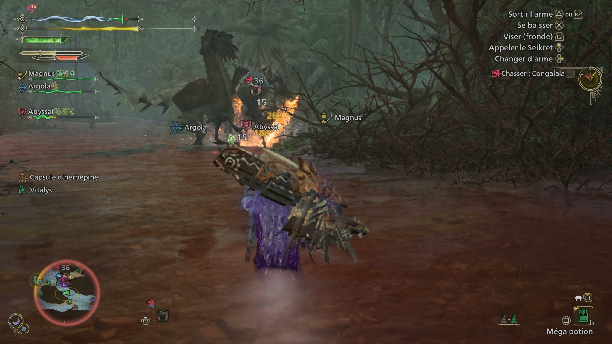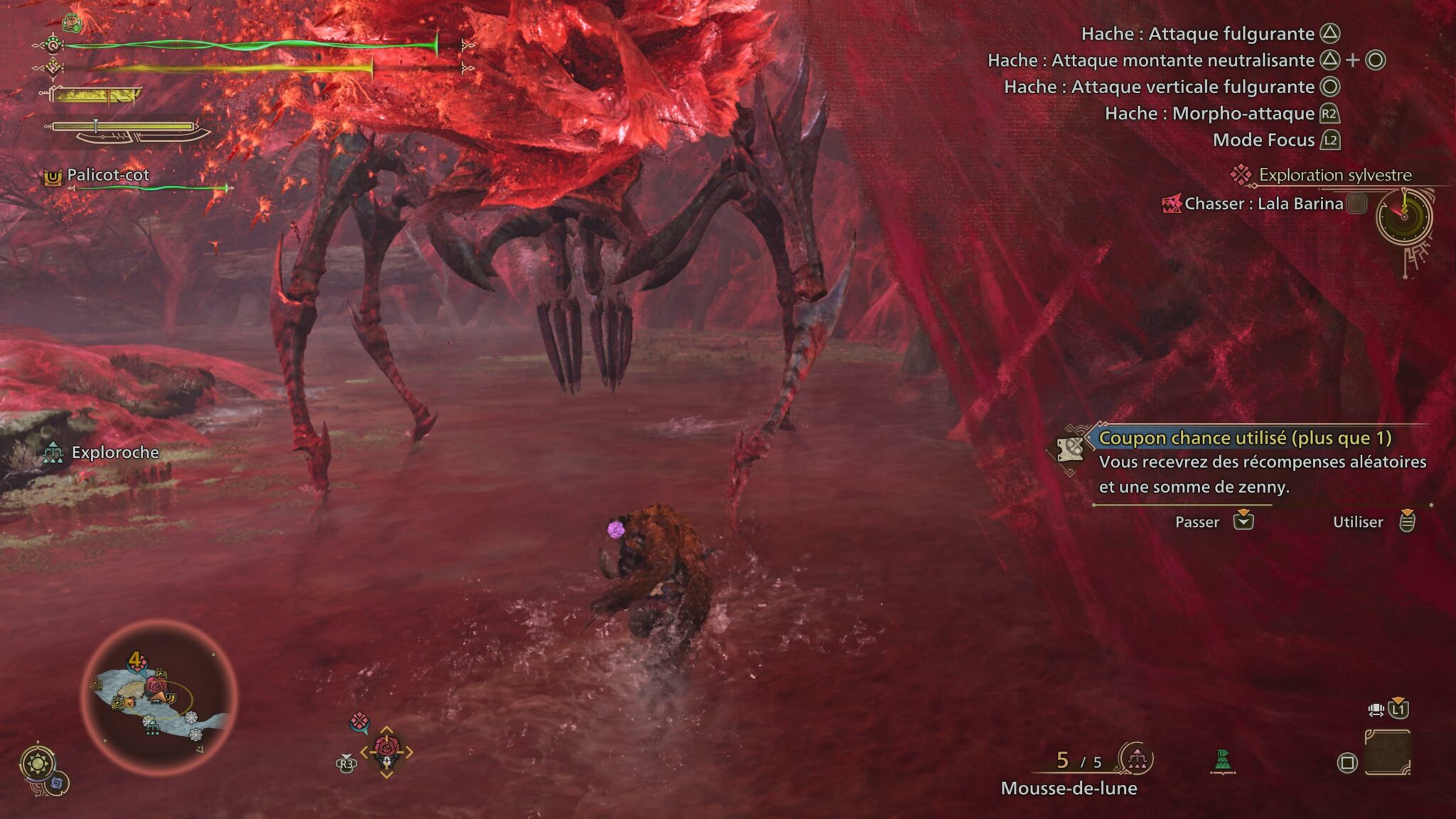 Ces acquisitions de matériaux se font d’ailleurs naturellement. Bien que nous partions pour une mission consistant à traquer une créature spécifique, combien de fois n’avons-nous pas, au passage, chassé une autre qui croisait notre chemin, voire qui s’attaquait à notre proie en plein affrontement ? Quelle outrecuidance ! Mais aussi, quel kif de voir ces monstres se combattre de manière aussi bestiale ! Mais si nos traques se révèlent aussi rentables, c’est surtout grâce à la mécanique de focus.