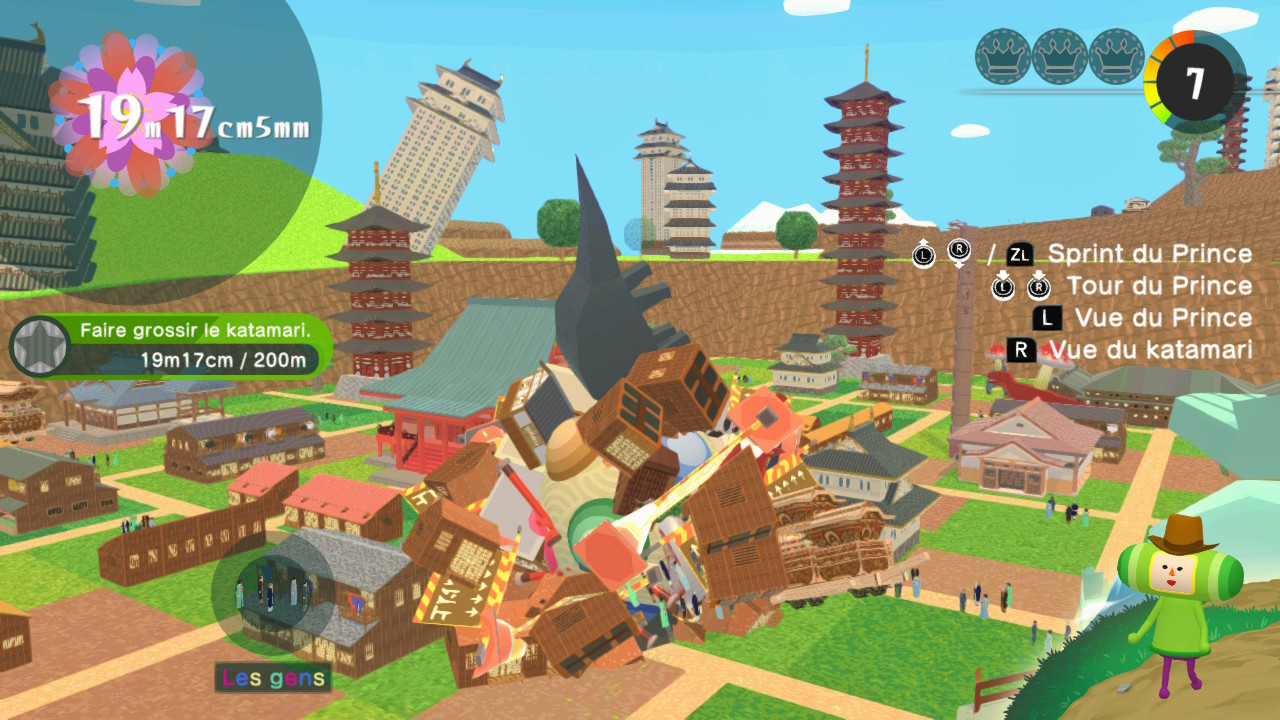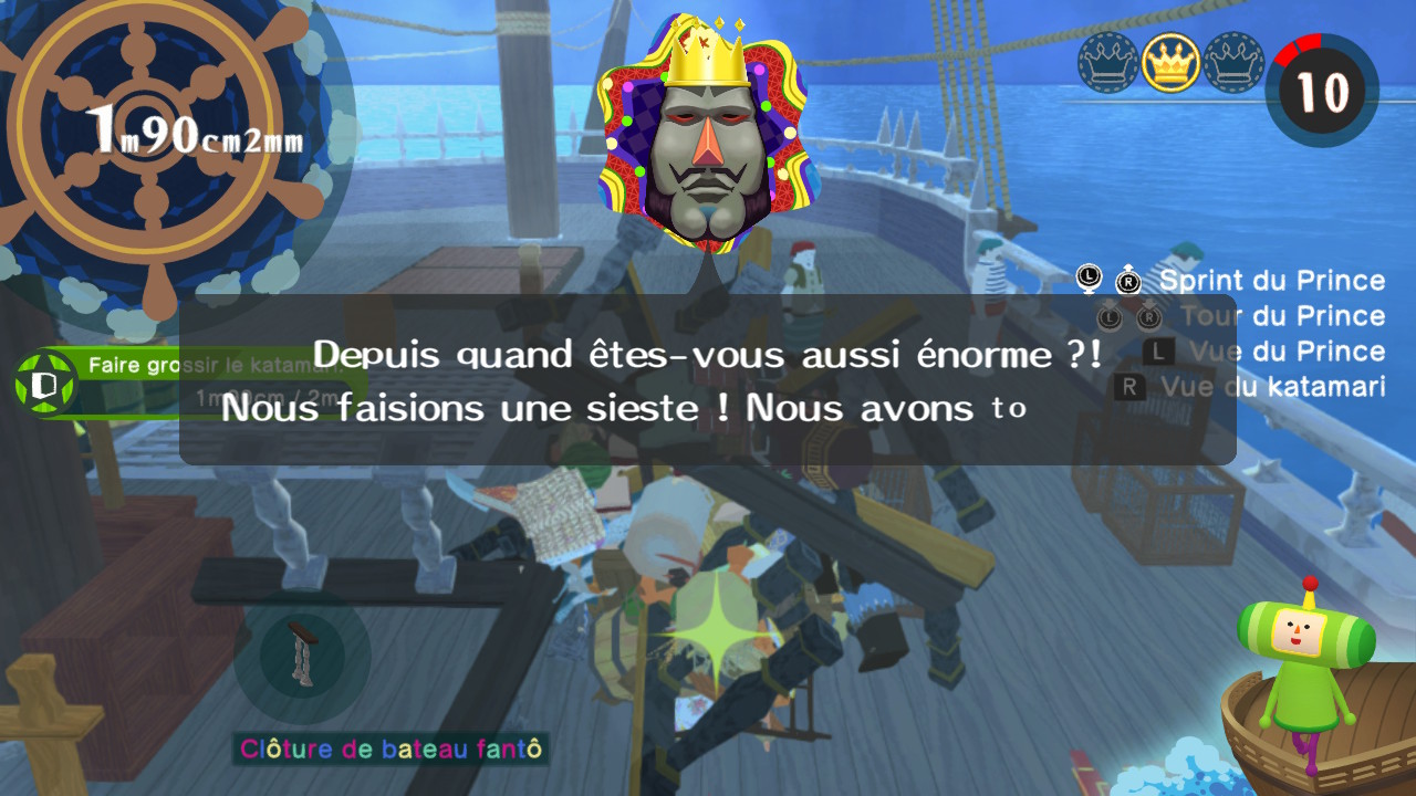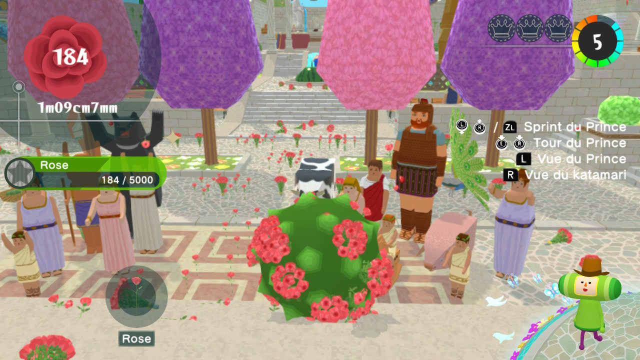 Les fans vétérans ne s’étonneront pas de voir le Roi nous bloquer la vue pendant notre enroulage : c’est certes agaçant, mais ça fait partie de l’expérience Katamari. En revanche, même en étant habitué aux précédents épisodes et aux contrôles un peu particuliers du jeu, on sent une maniabilité légèrement différente qui peut parfois déstabiliser. Le changement est subtil, mais on a comme l’impression que le katamari n’a pas la même physique que dans les autres épisodes, et qu’il se contrôle moins fluidement.