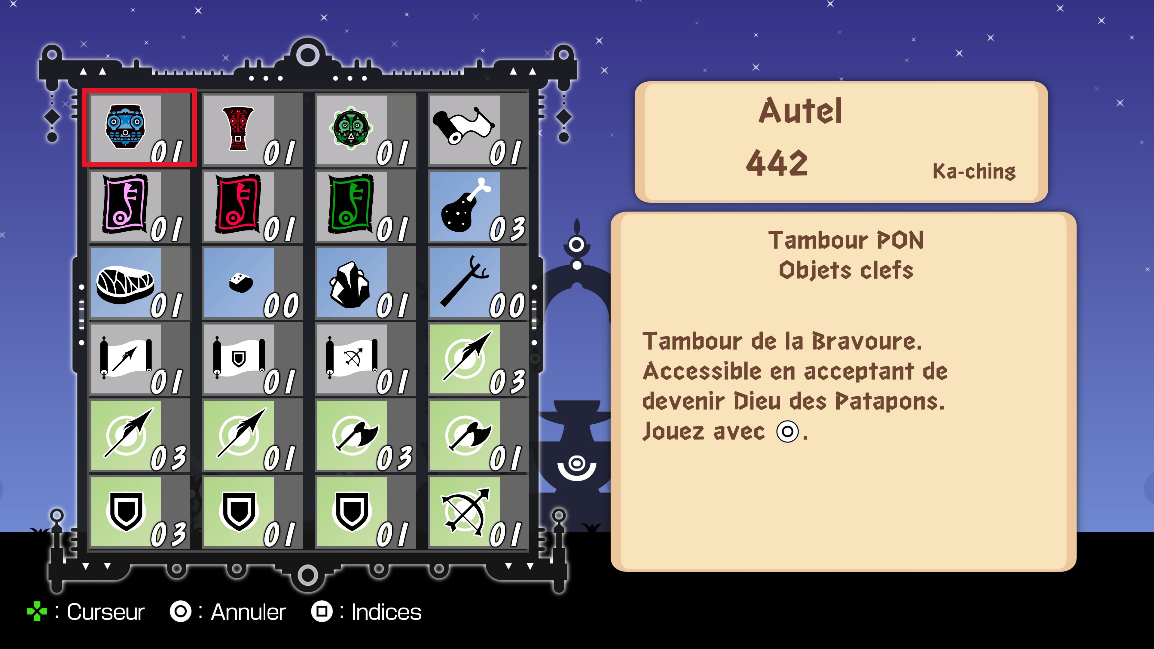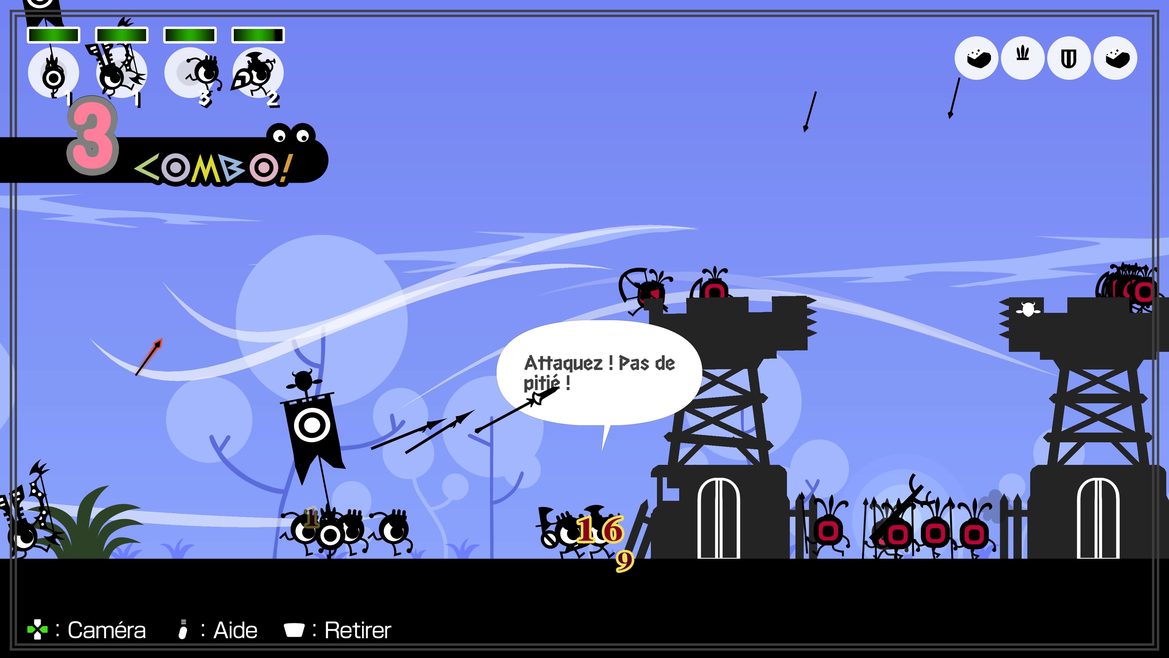Et c’est à peu près tout. Pas de réel changement graphique ou sonore, aucun changement dans le gameplay, Patapon 1+2 Replay n’est qu’un simple portage d’une version déjà « upscalée » en 2017. Nous avons même remarqué de légers ralentissements lors de l’affichage des séquences nous présentant nos nouveaux combos de touches, un comble pour des jeux PSP portés sur la génération actuelle.