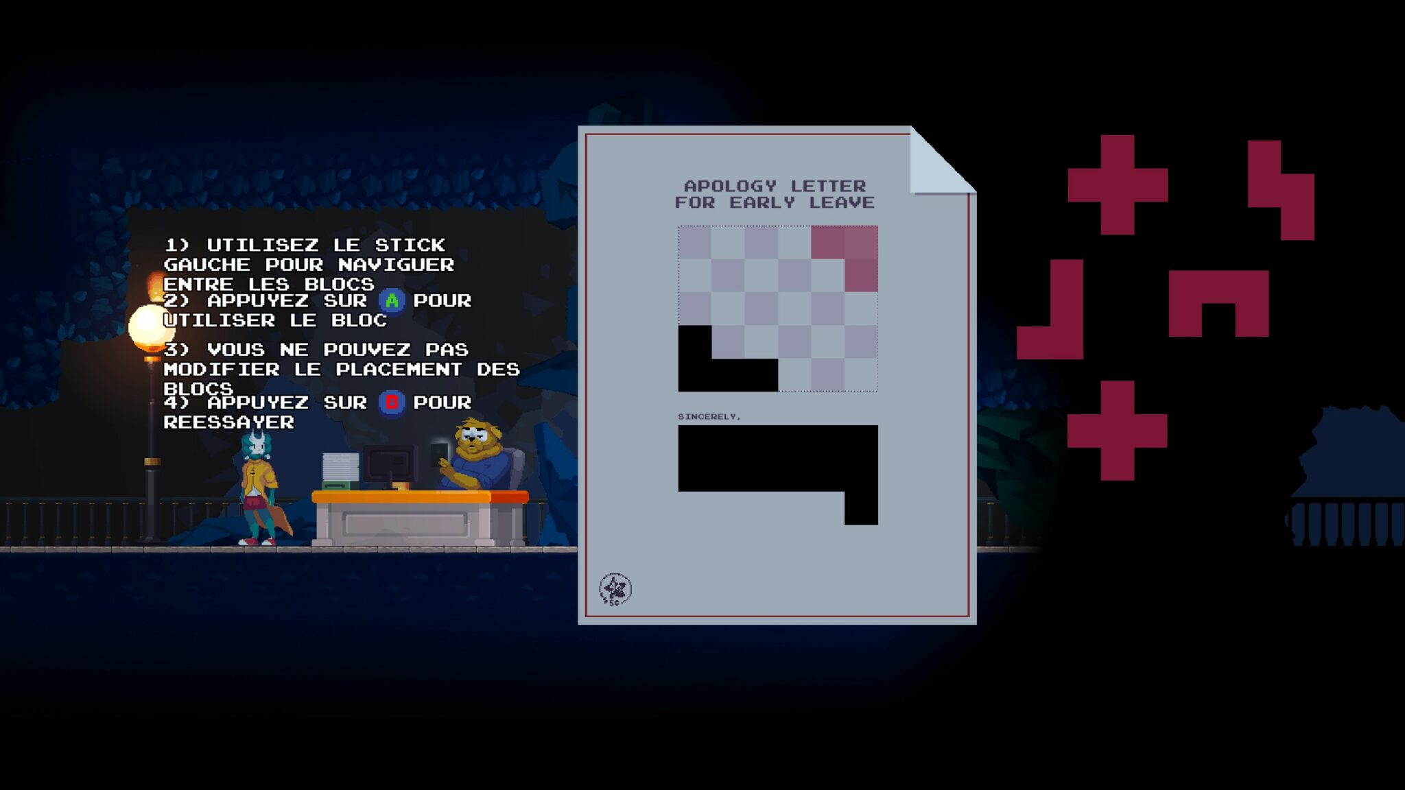 Décrit comme un « platformer existentiel », on nous vend une aventure dans laquelle chaque erreur est définitive, chaque choix a un impact, et où le game over n’est pas une fin, mais juste un autre chemin. Avec un concept pareil, comment ne pas vouloir plonger à corps perdu ?